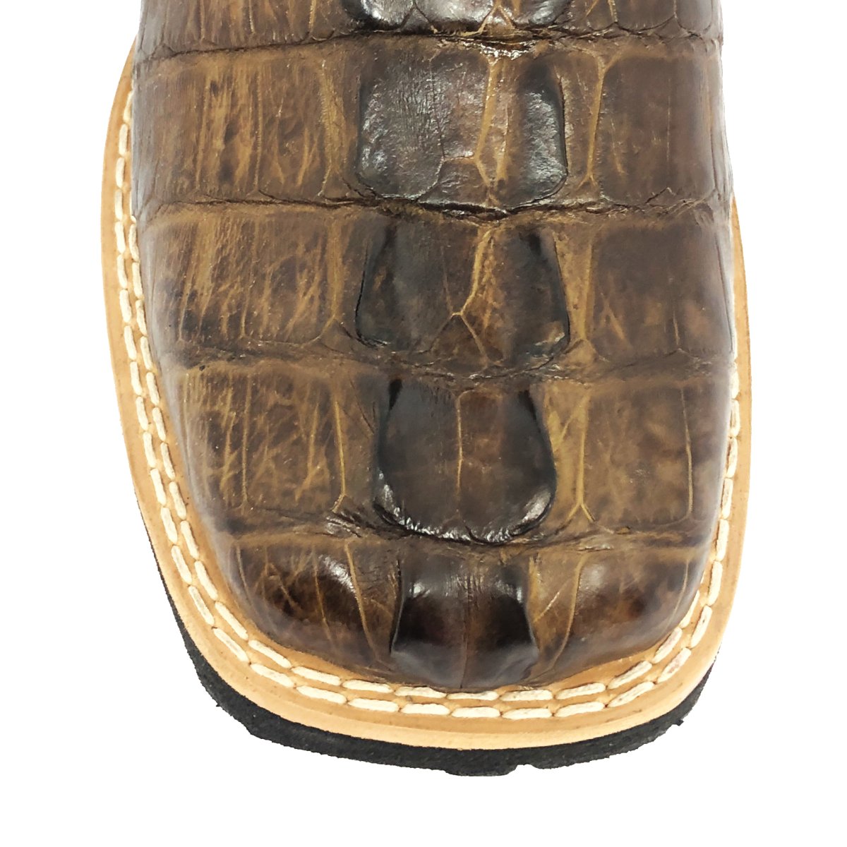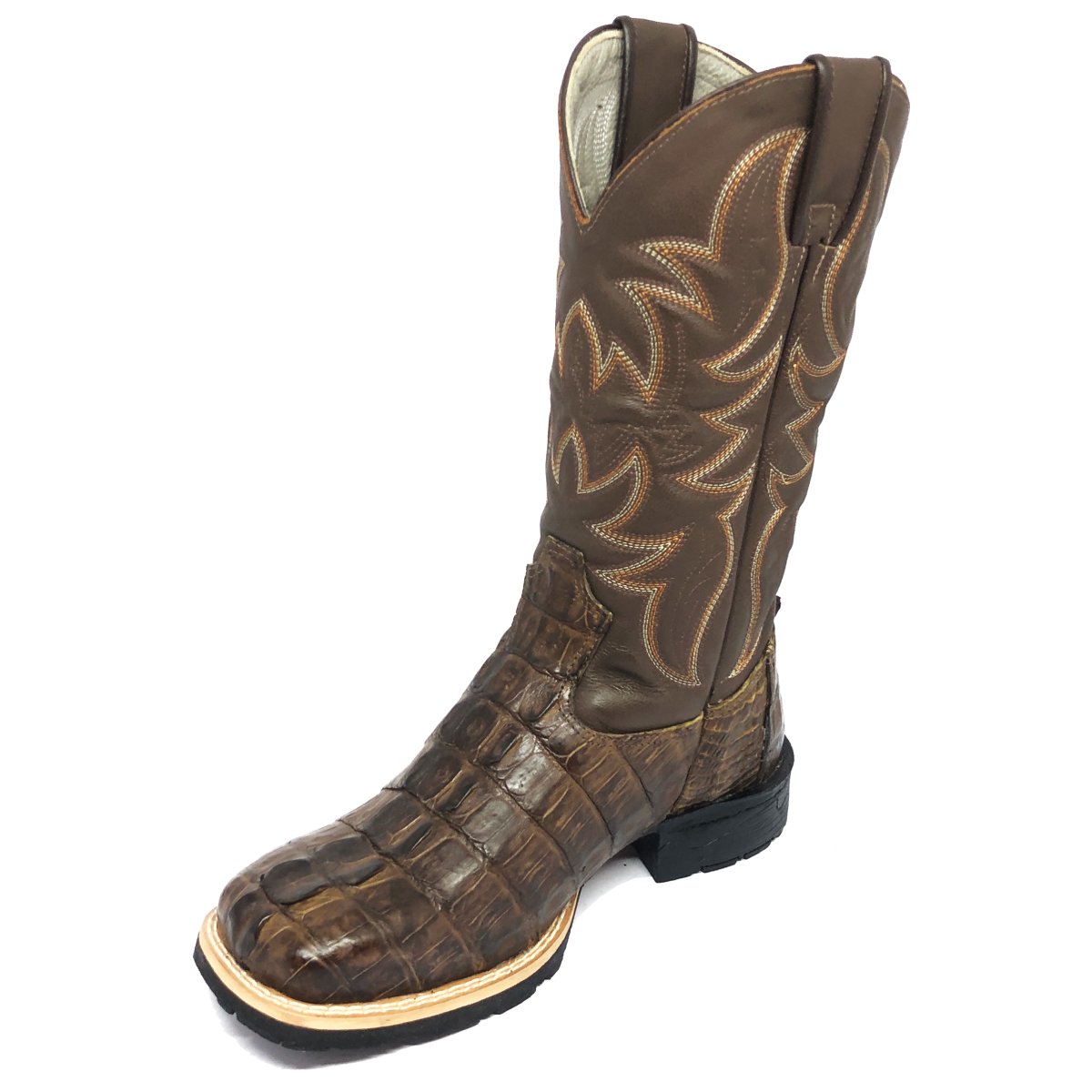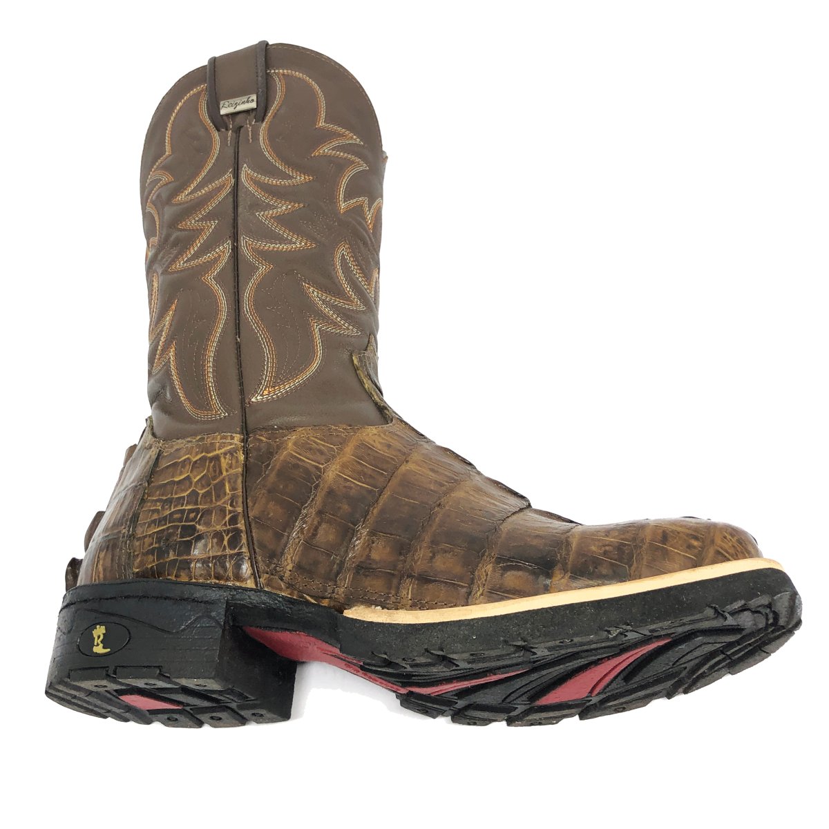 Bota Texana De Couro De Jacaré Tabaco Rabo - Cano Alto, Bico Quadrado - Solado Flex Comfort | Reizinho Botas