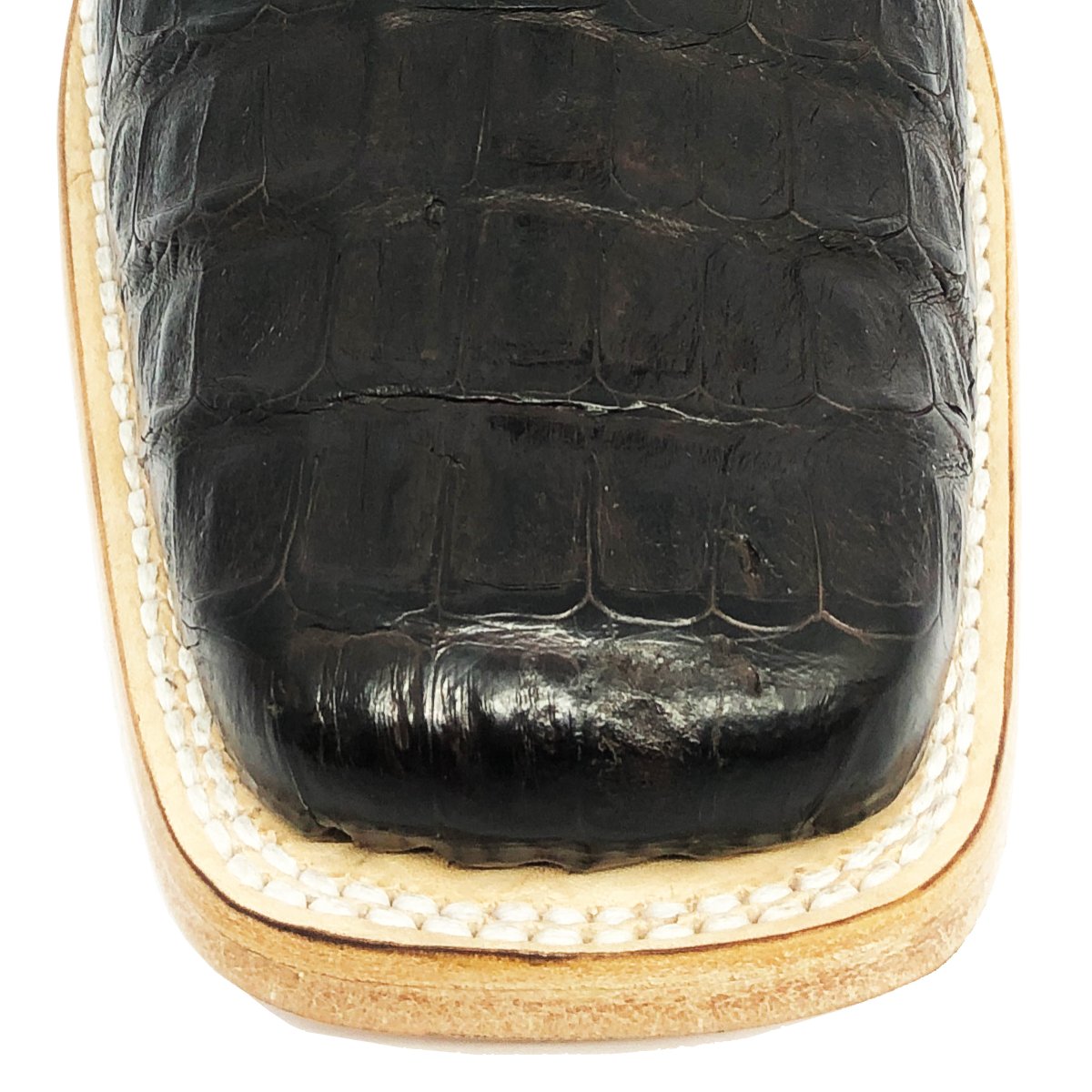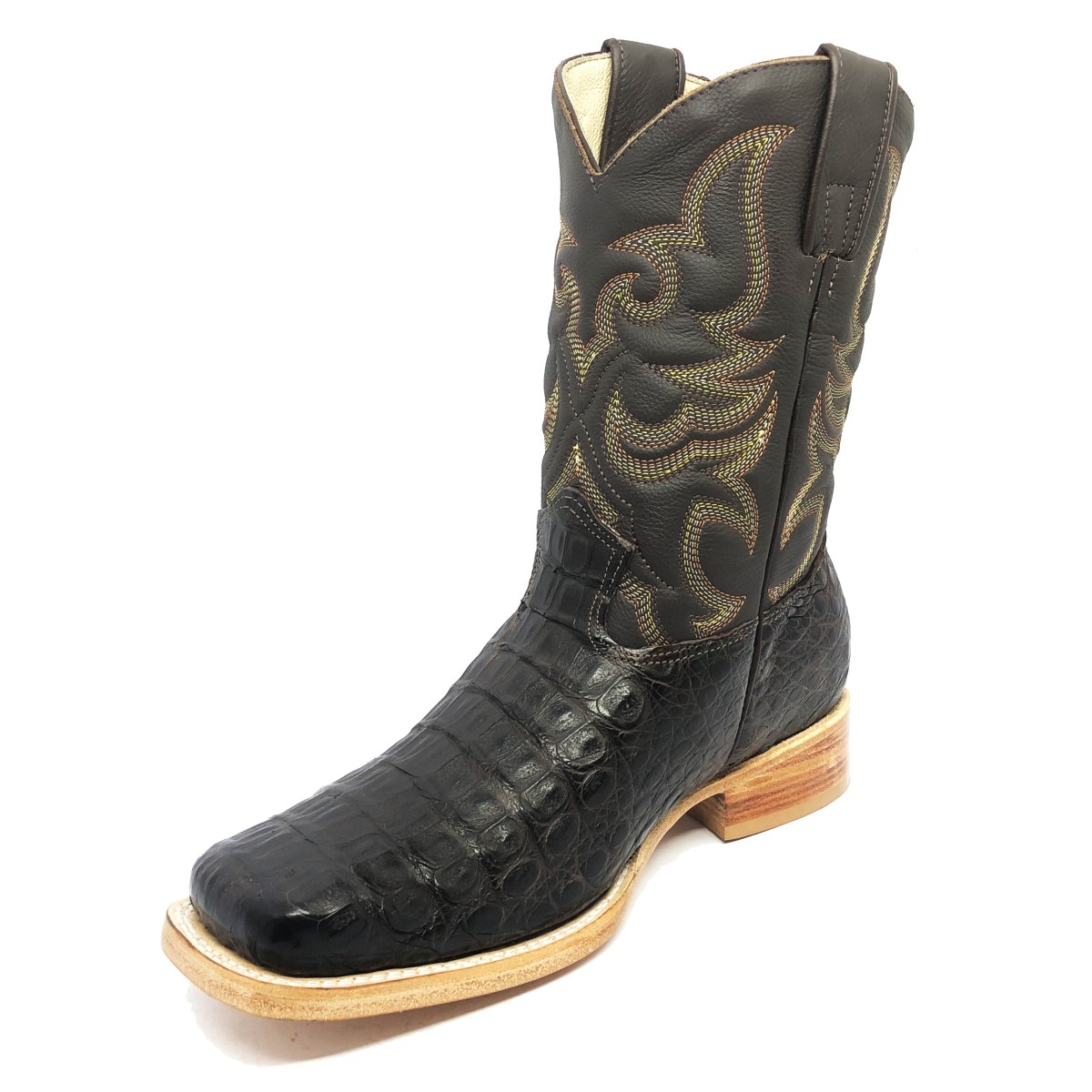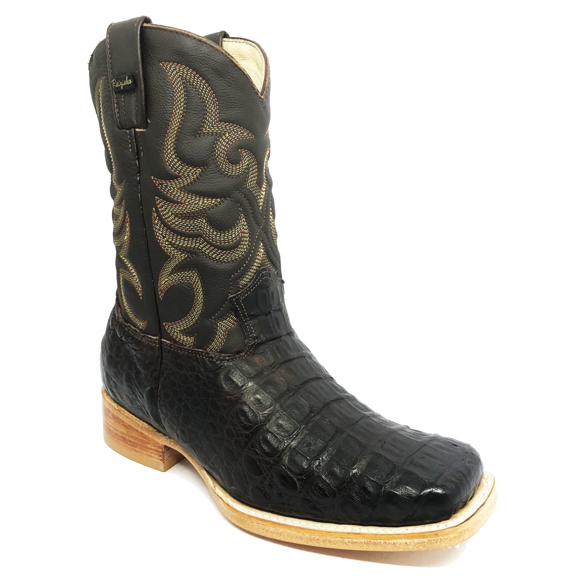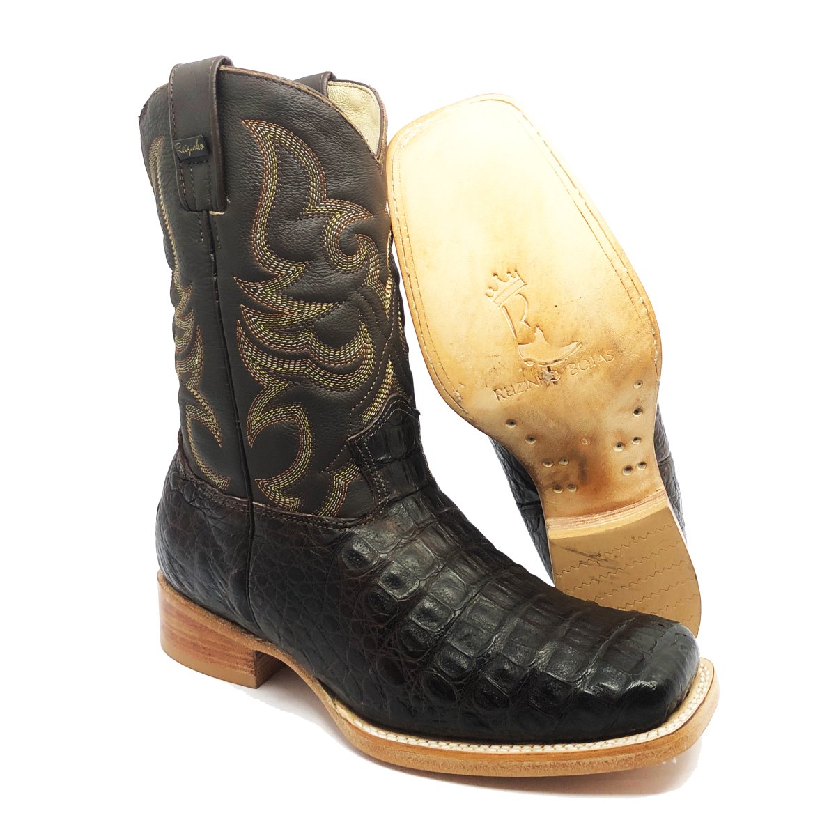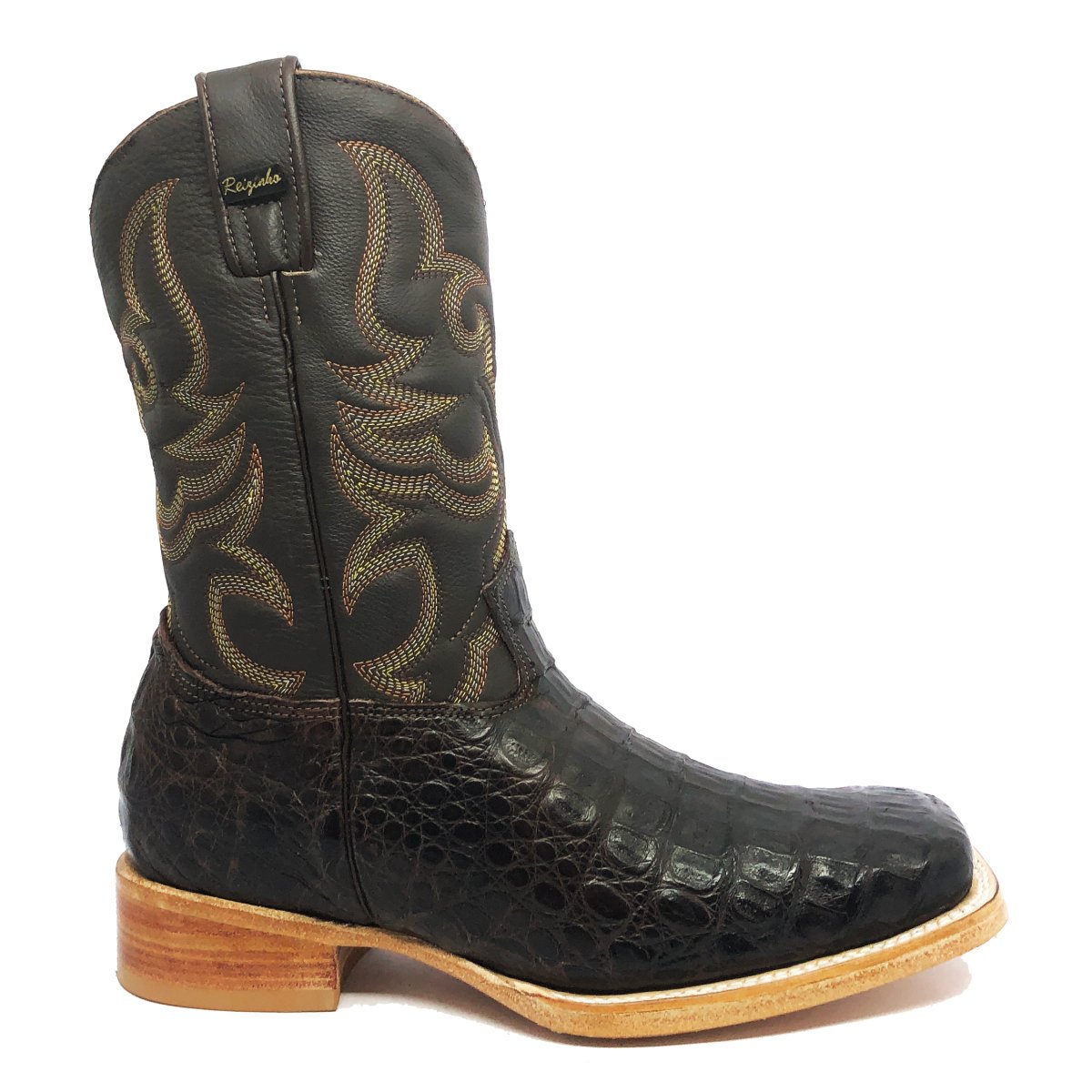 Bota Texana de Couro Legítimo de Jacaré Marrom - Cano Médio, Bico Quadrado - Solado de Couro Artesanal | Reizinho Botas