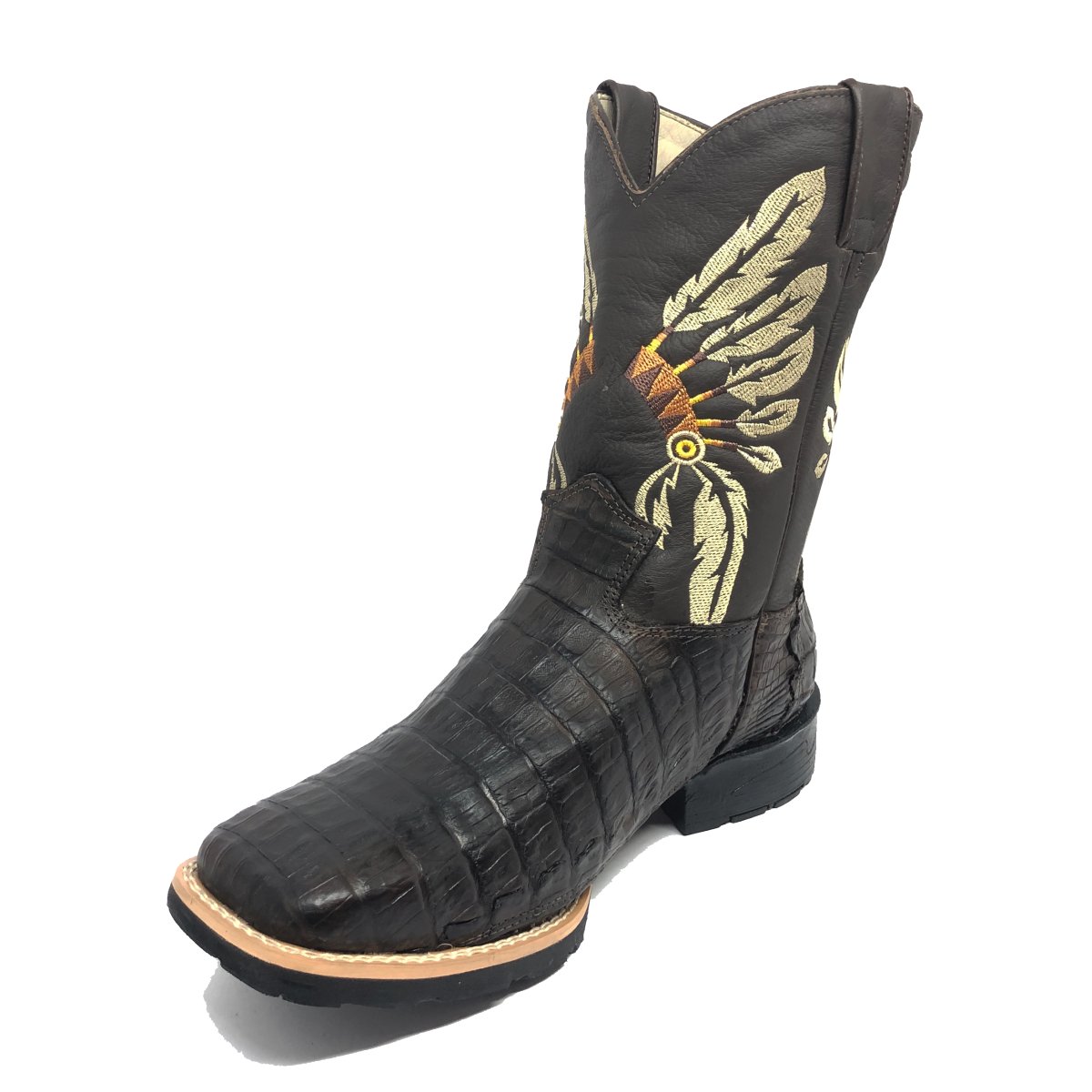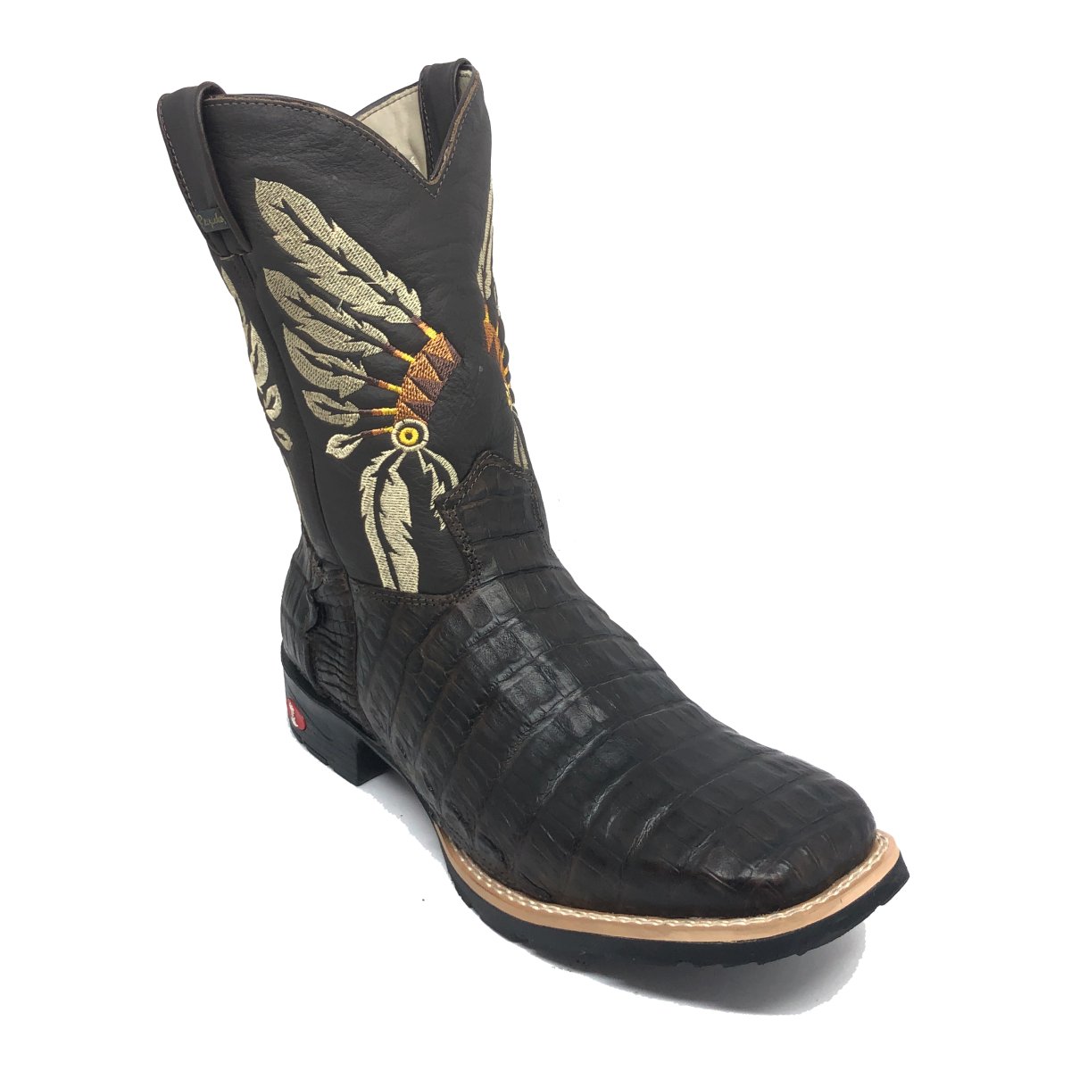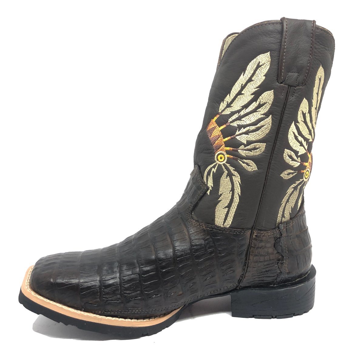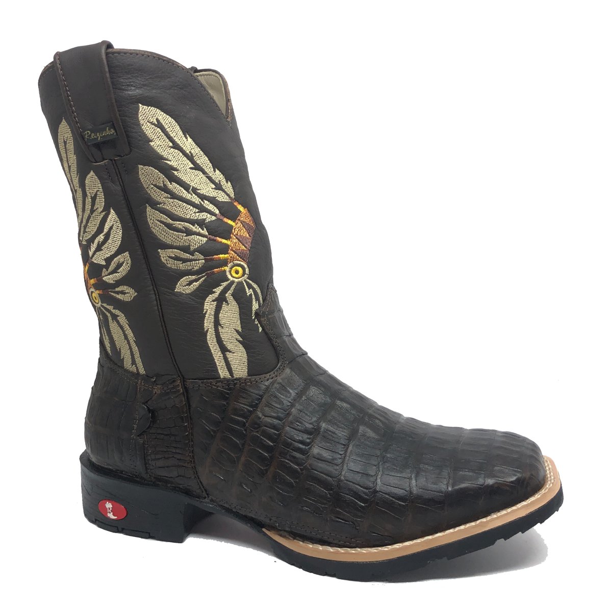 Bota Texana De Couro Legítimo De Jacaré Marrom - Cano Médio, Bico Quadrado - Solado Flex Comfort | Reizinho Botas