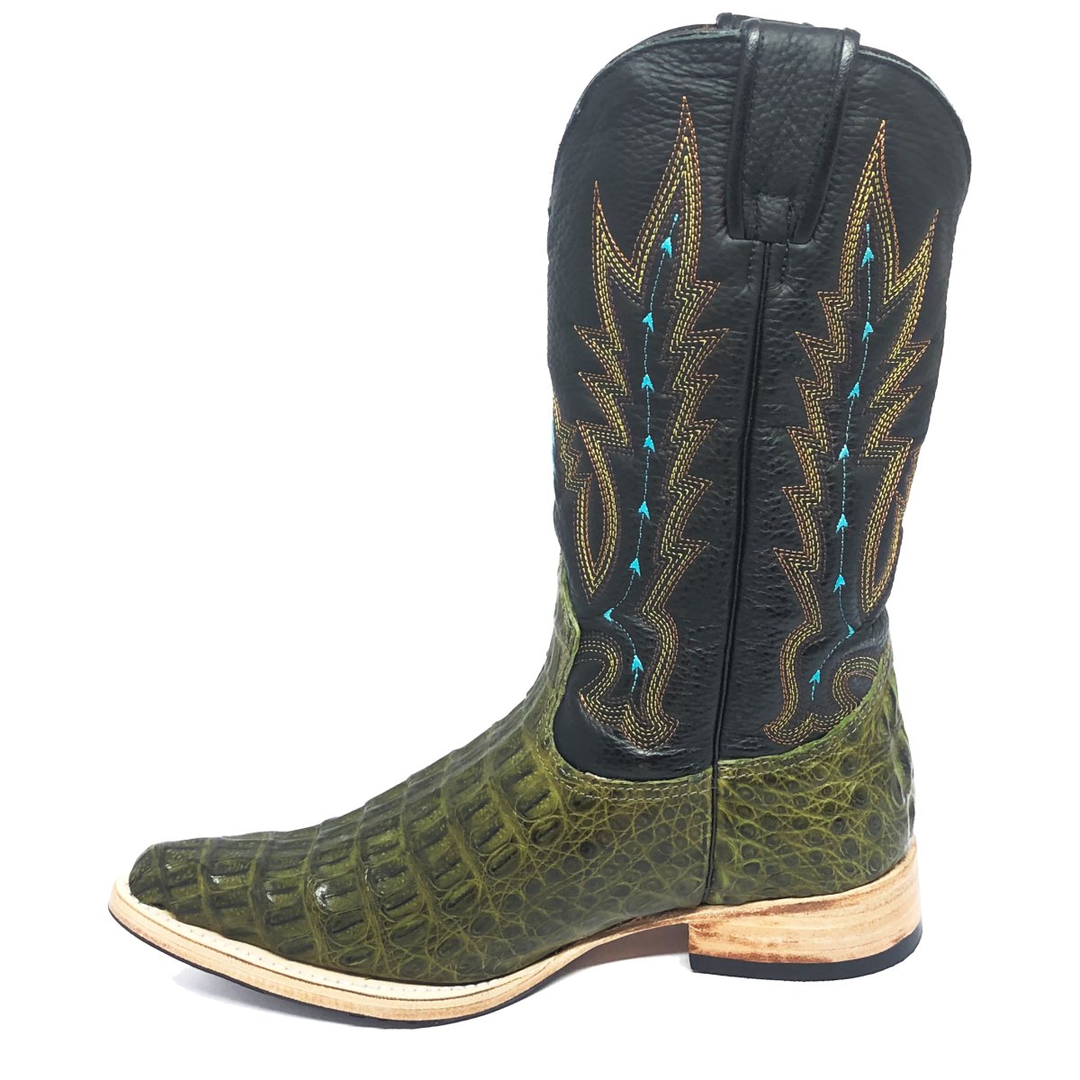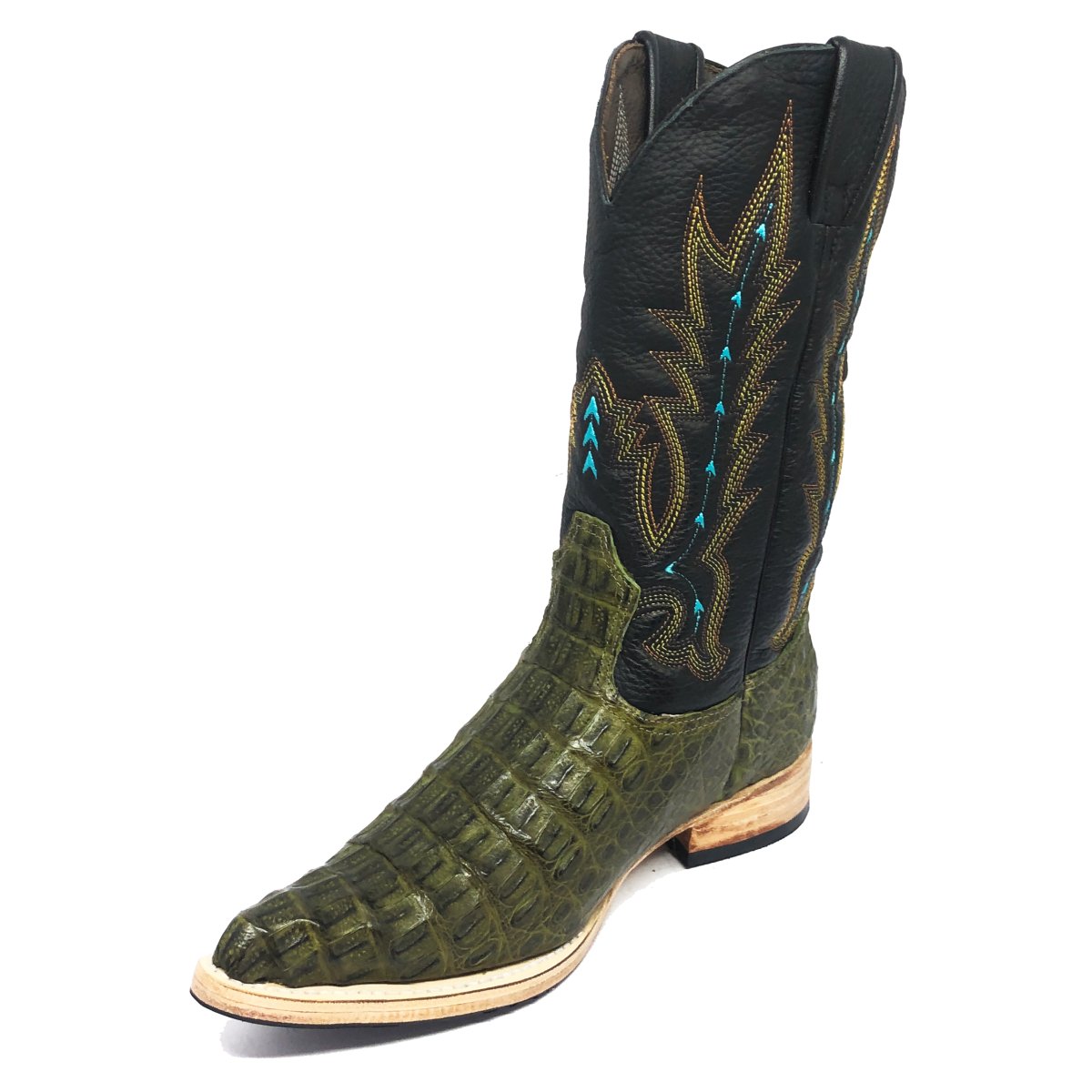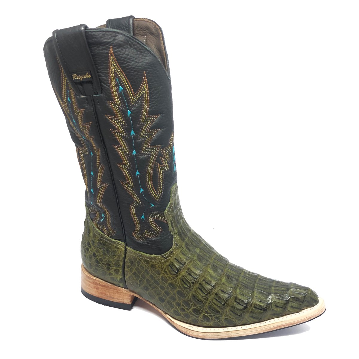 Bota Texana de Couro Legítimo de Jacaré Preto - Cano Alto, Bico Fino Arredondado - Solado de Couro Artesanal Com Proteção de Borracha | Reizinho Botas