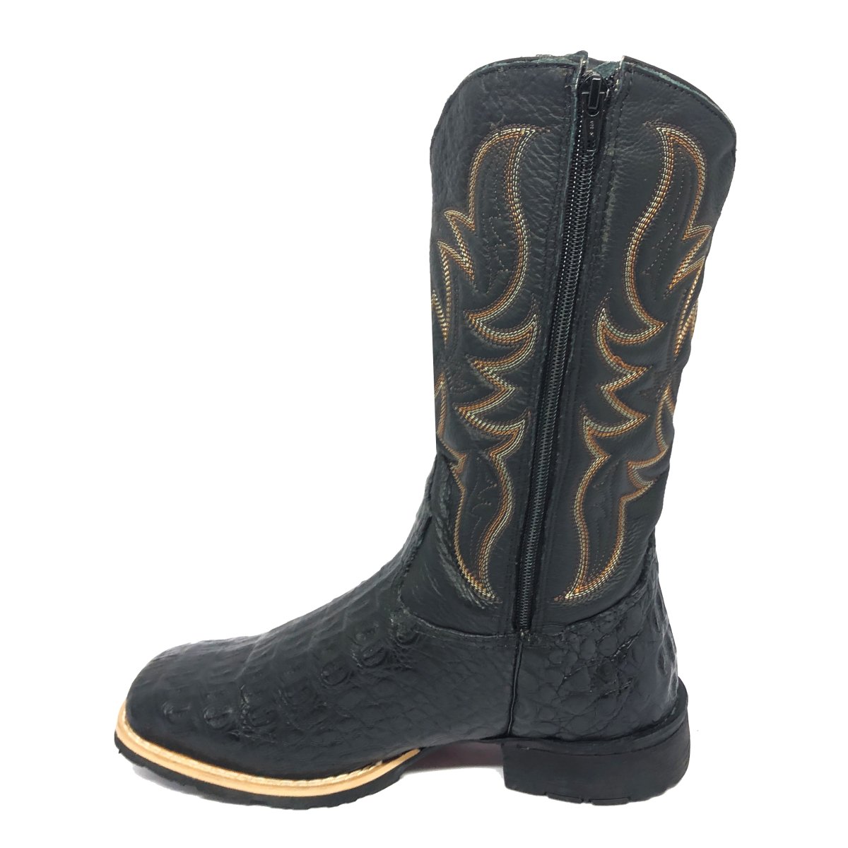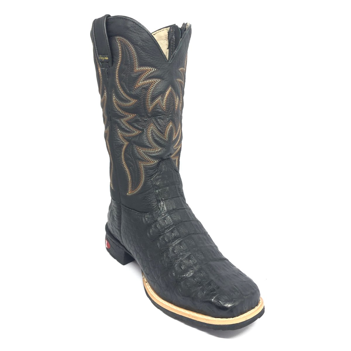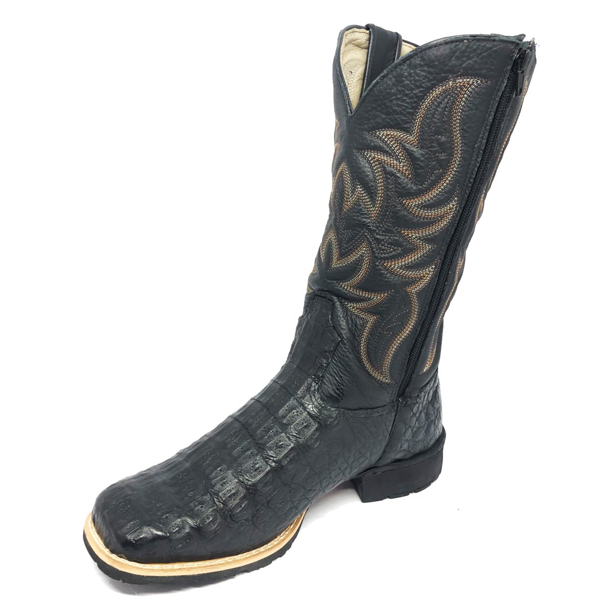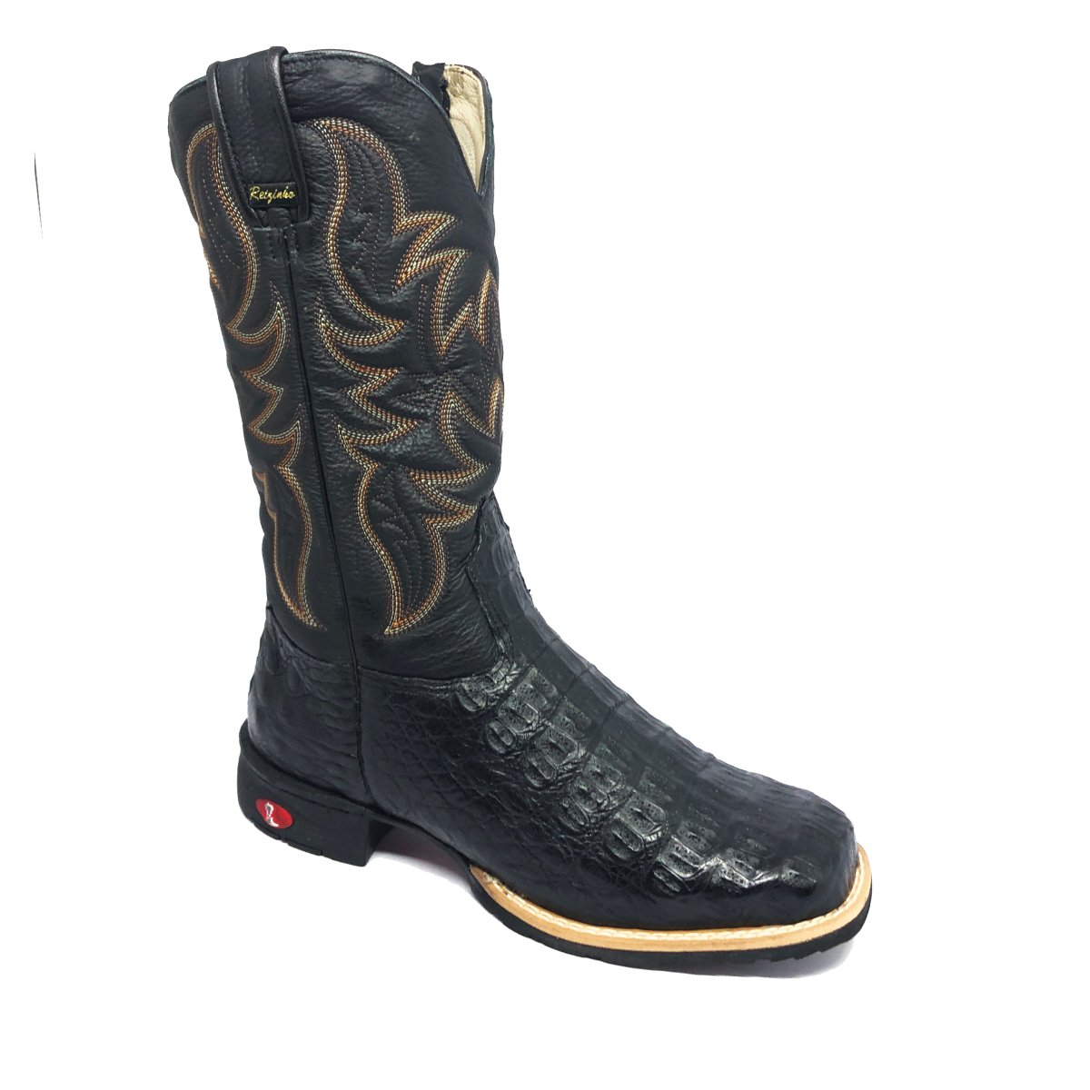 Bota Texana De Couro Legítimo De Jacaré Preto - Cano Alto, Bico Quadrado - Solado Flex Comfort | Reizinho Botas