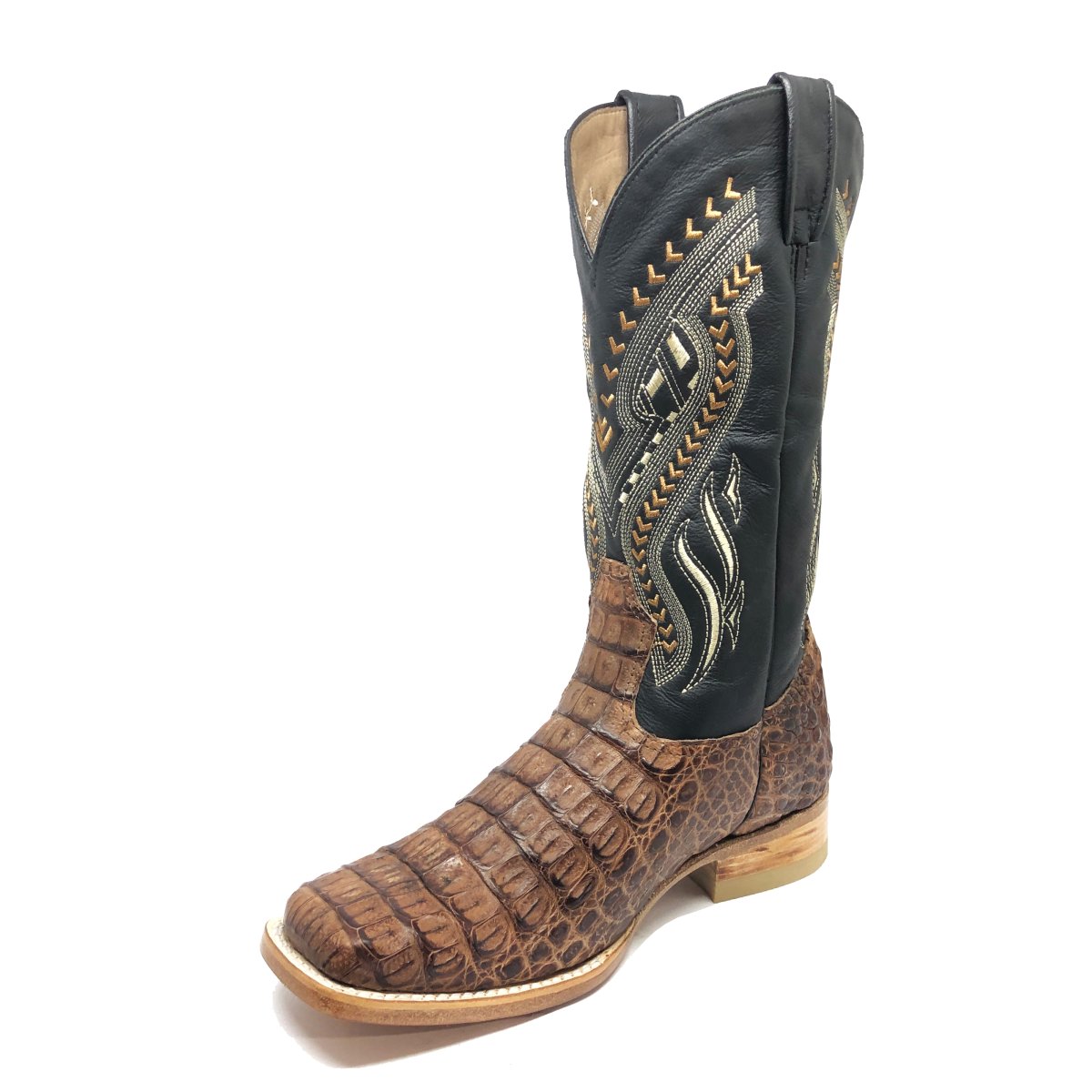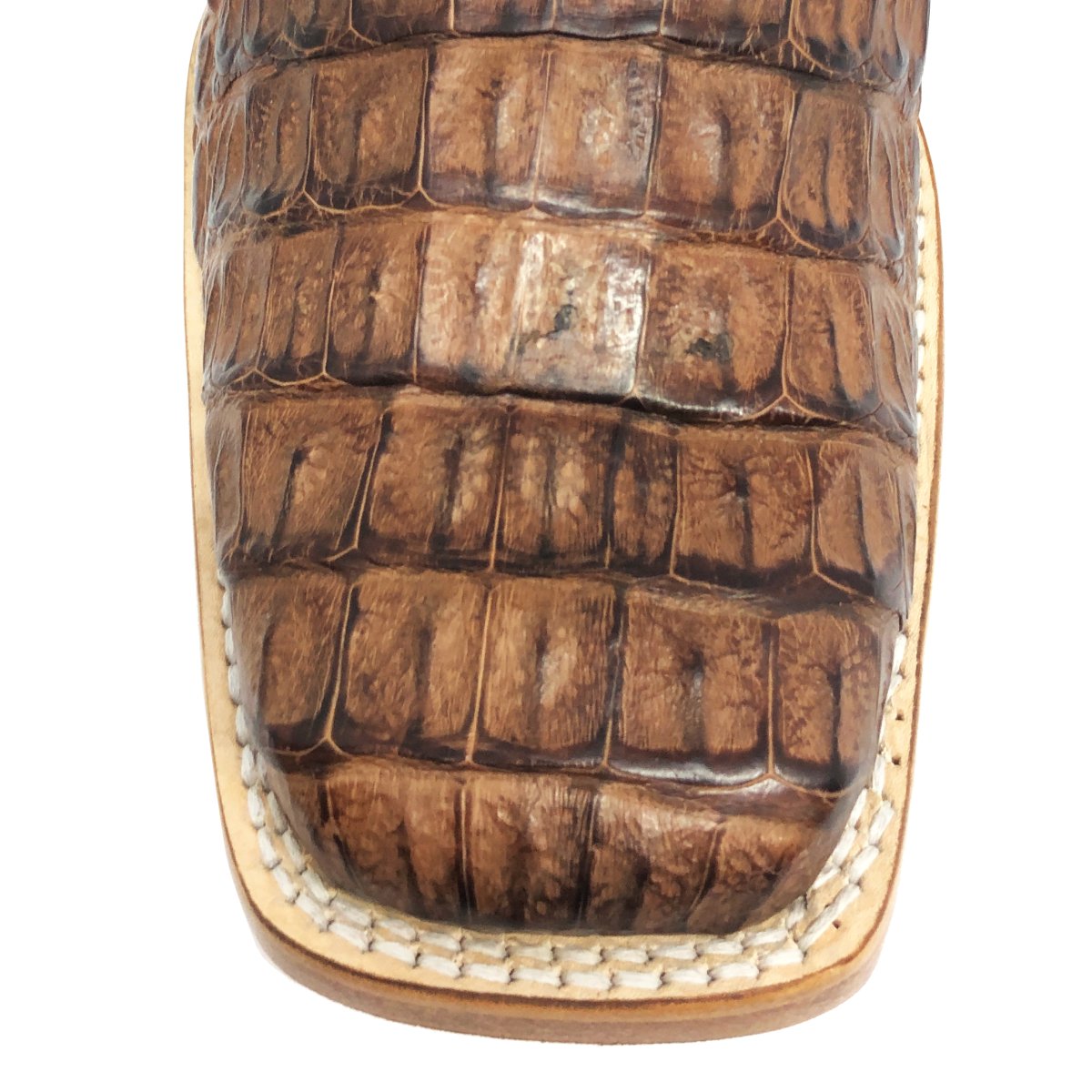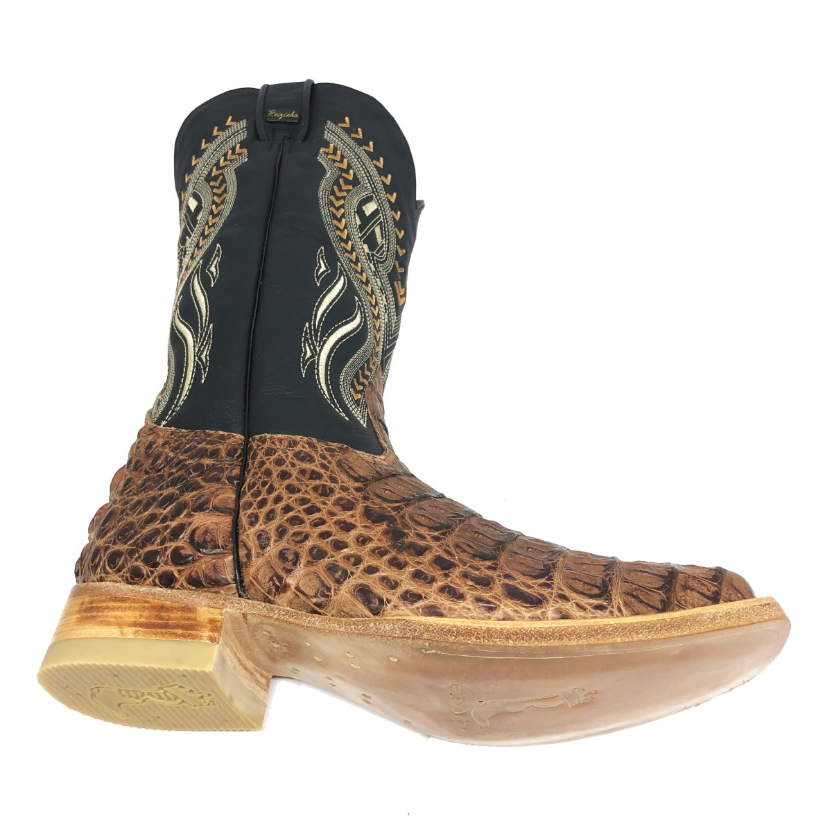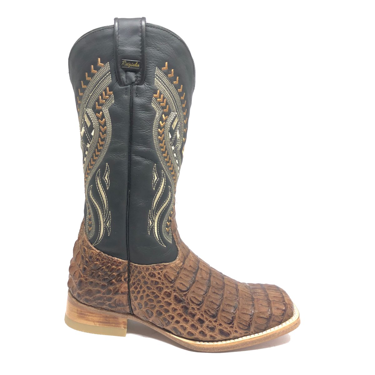 Bota Texana de Couro Legítimo de Jacaré Tabaco - Cano Alto, Bico Quadrado- Solado de Couro Artesanal | Reizinho Botas