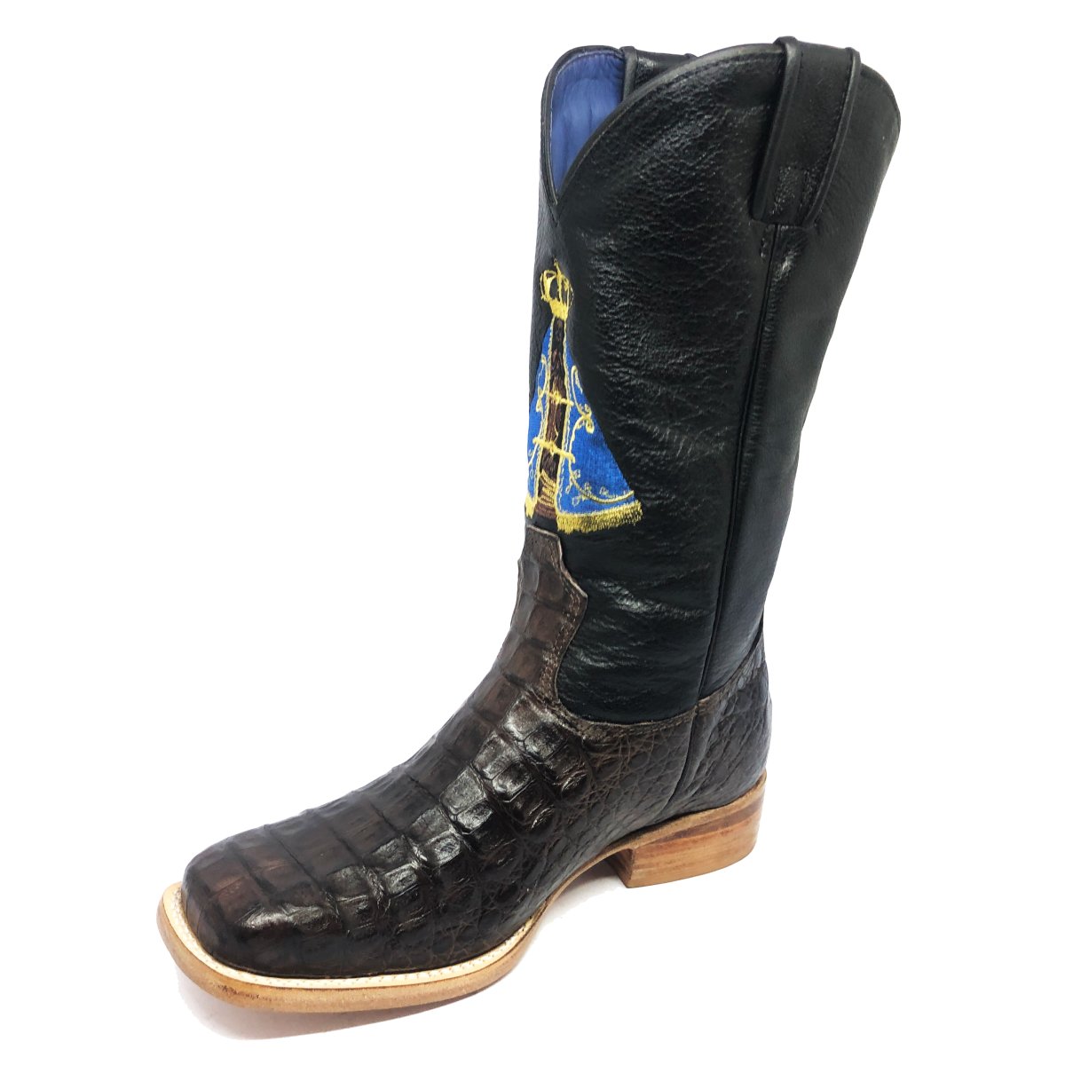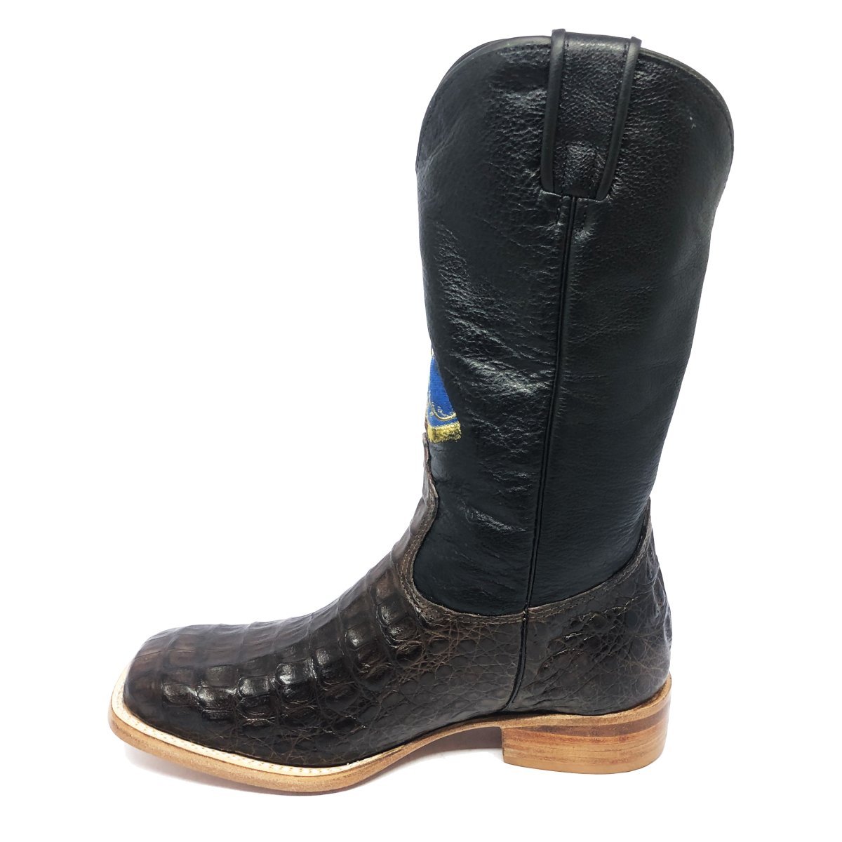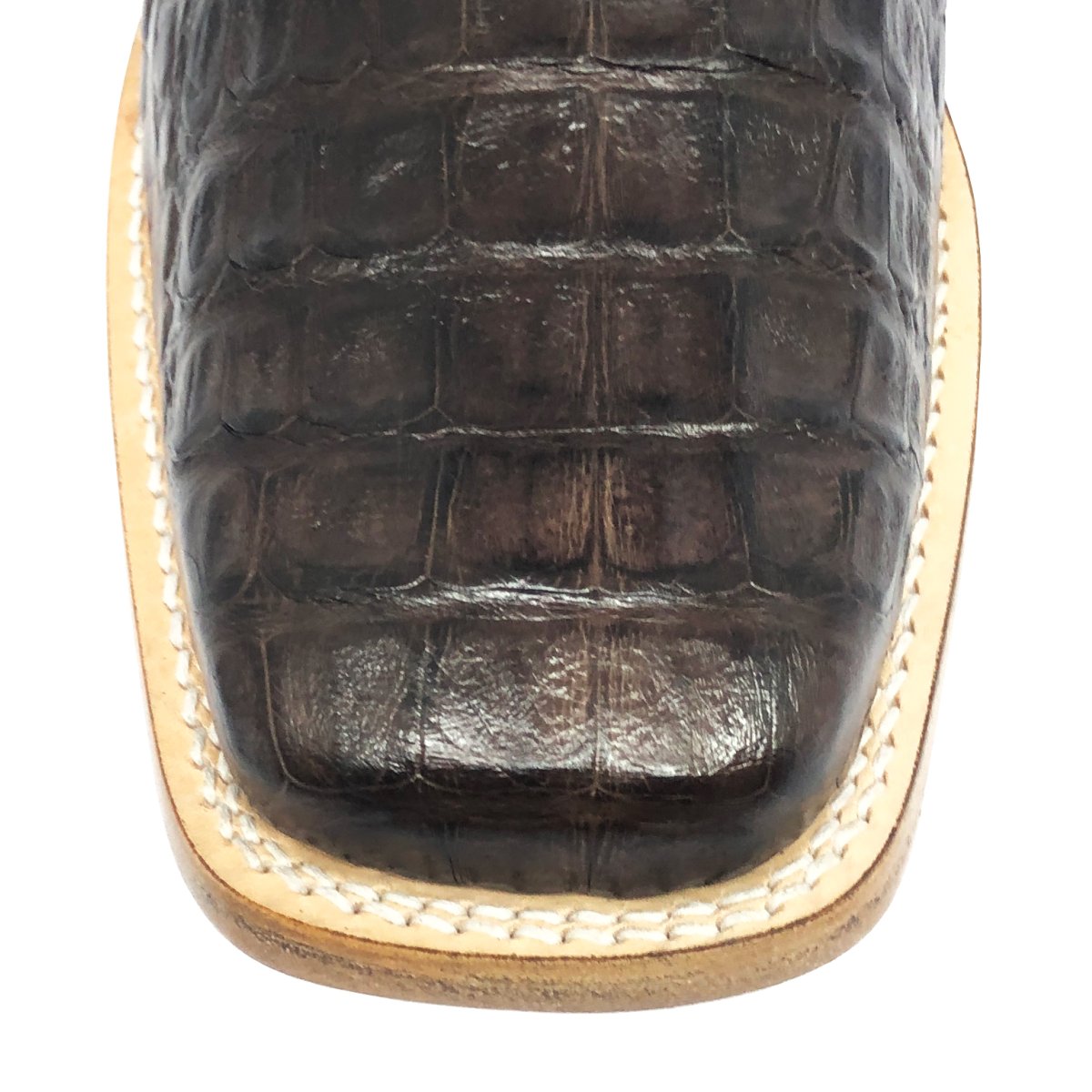 Bota Texana Reizinho de Couro Legítimo de Jacaré Marrom - Cano Alto, Bico Quadrado - Solado de Couro Artesanal