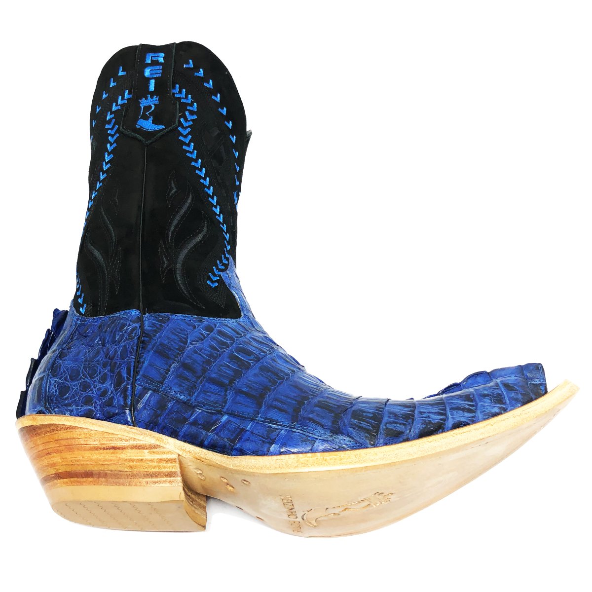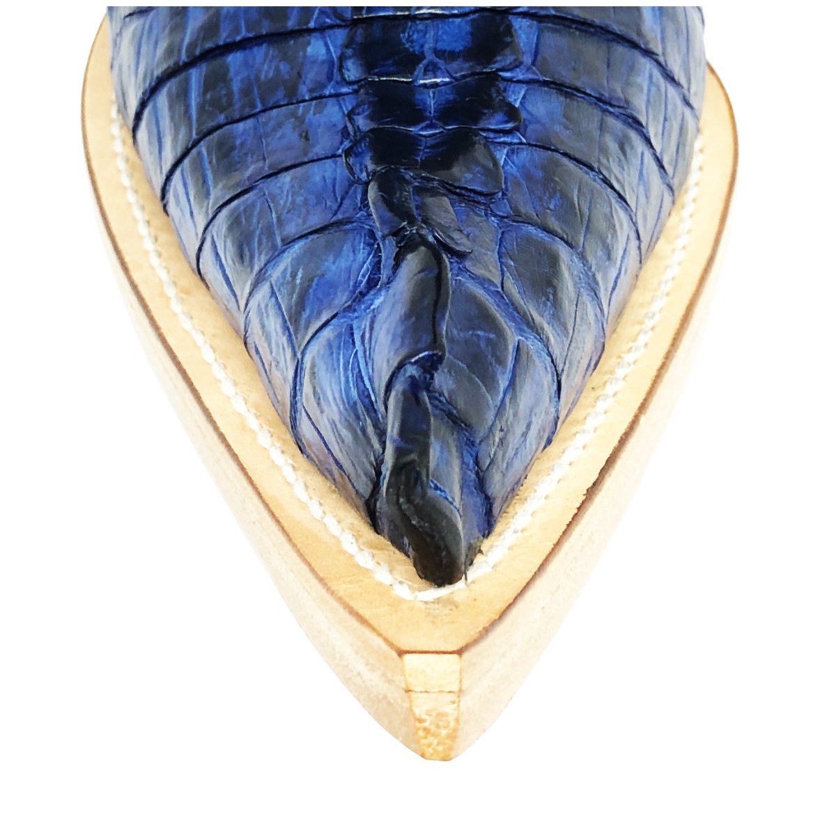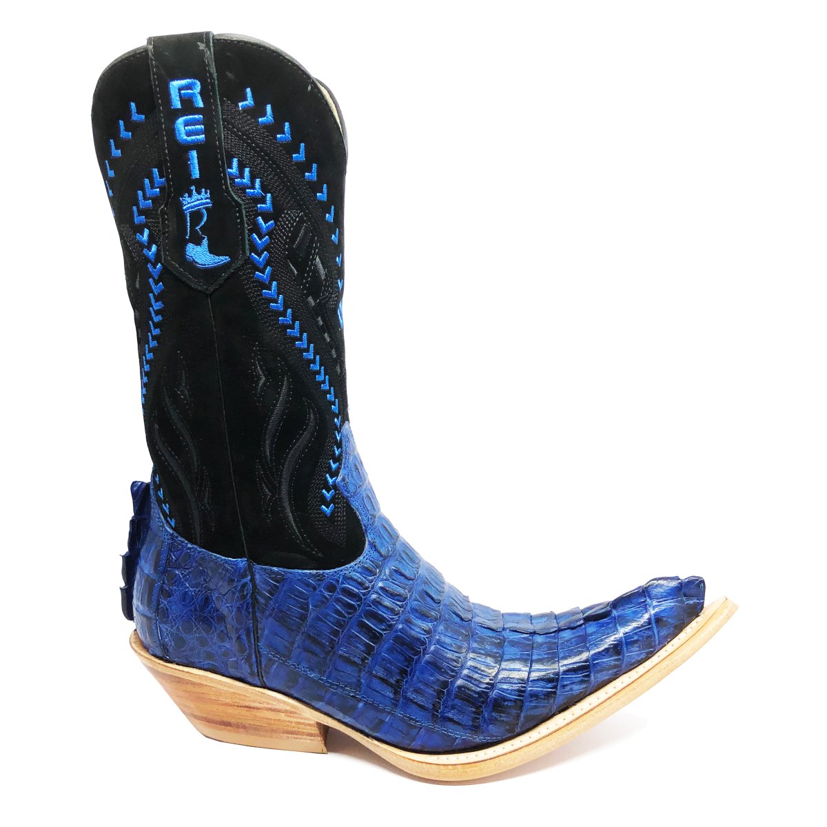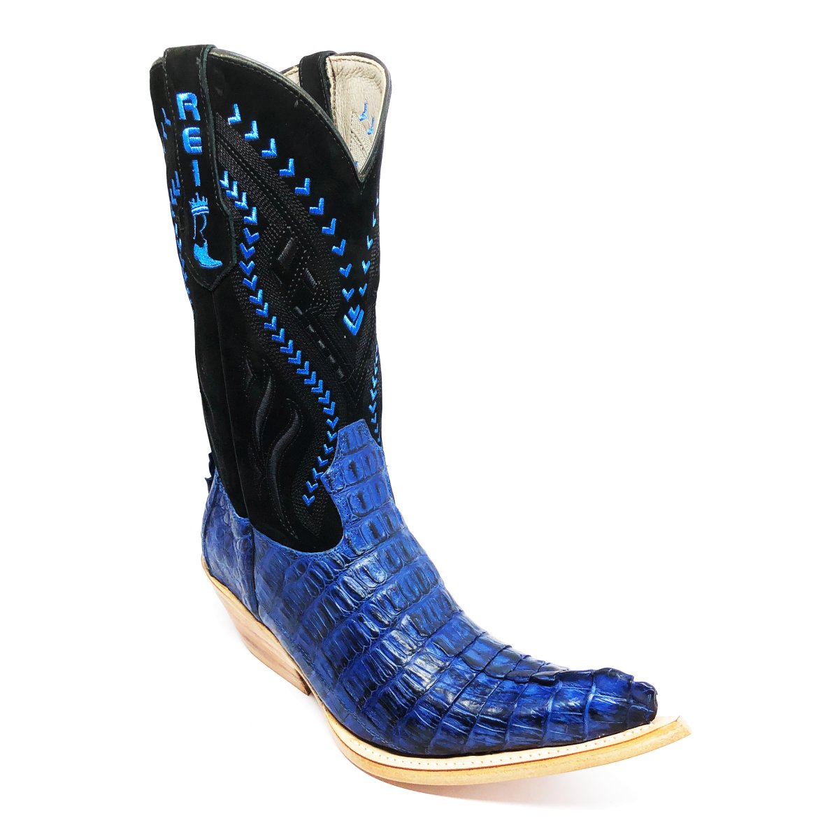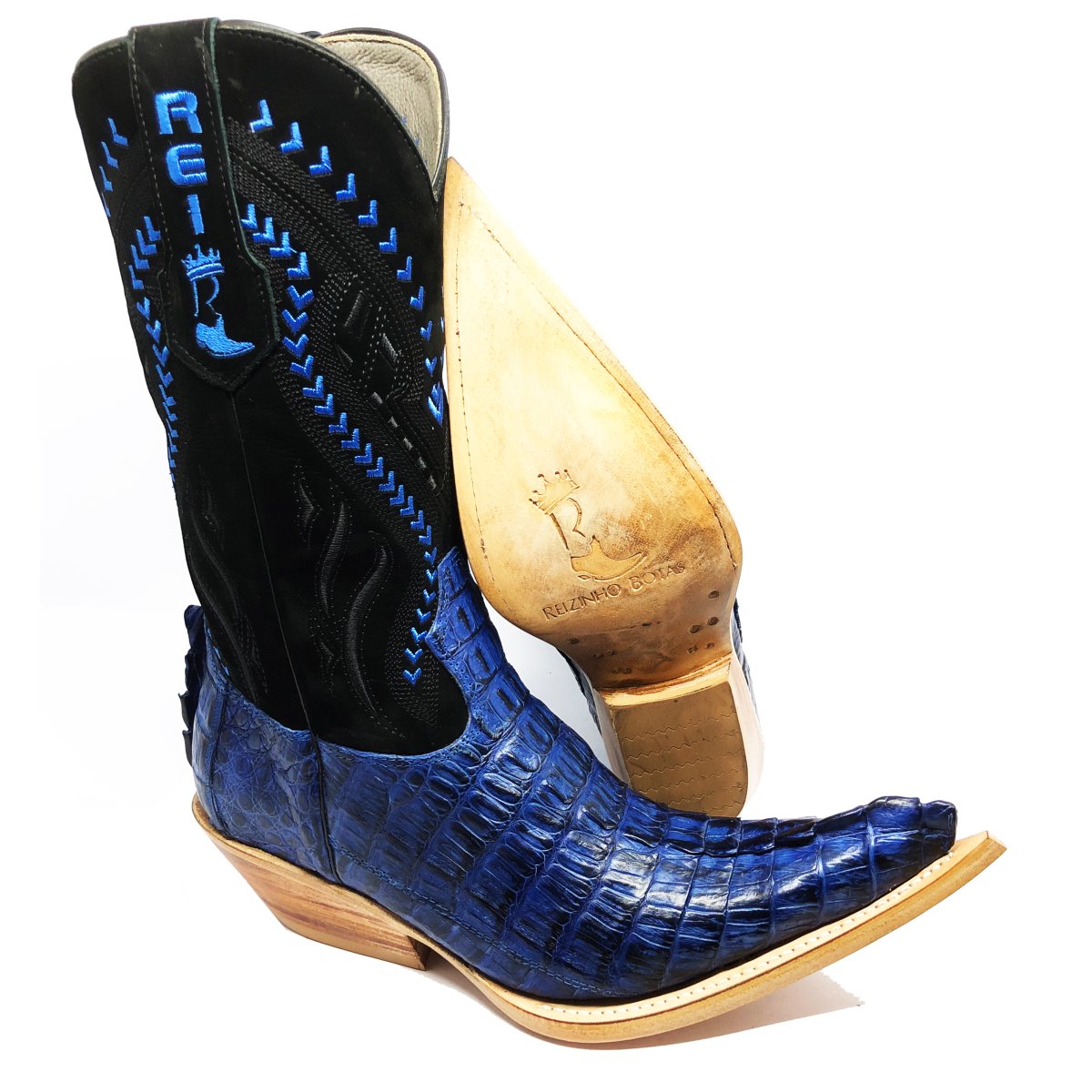 Bota Texana Reizinho Premium de Couro de Jacaré Darkness Blue Rabo LIMITED EDITION - Cano Alto, Bico Fino - Solado de Couro Artesanal