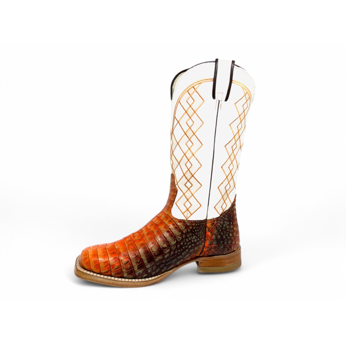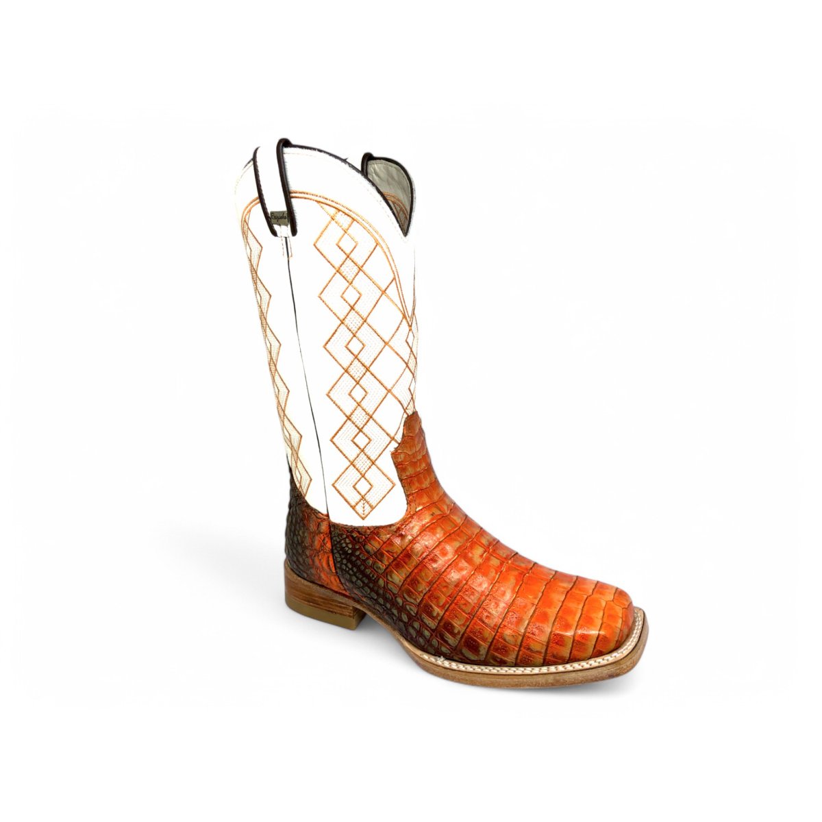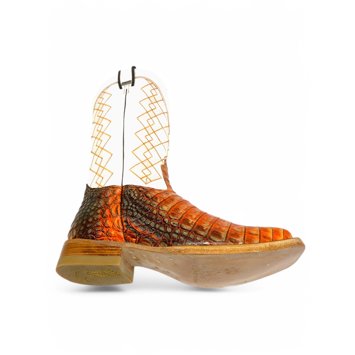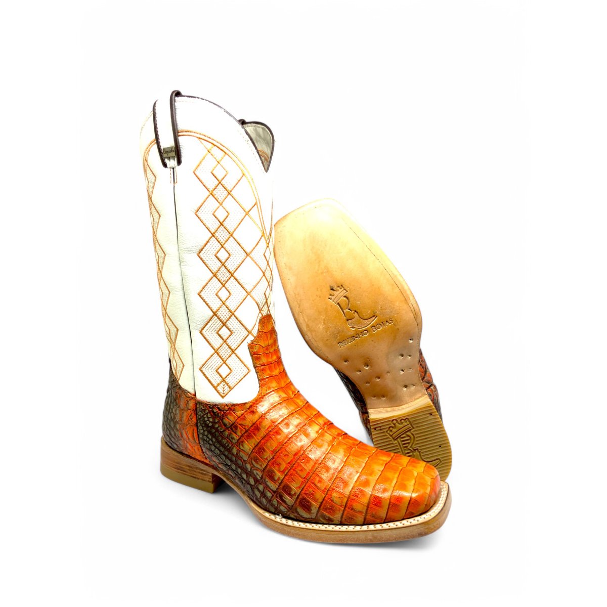 Bota Texana Reizinho Premium de Couro de Jacaré Darkness Orange | Limited Edition - Cano Alto, Bico Quadrado - Solado de Couro Artesanal | Reizinho Botas
