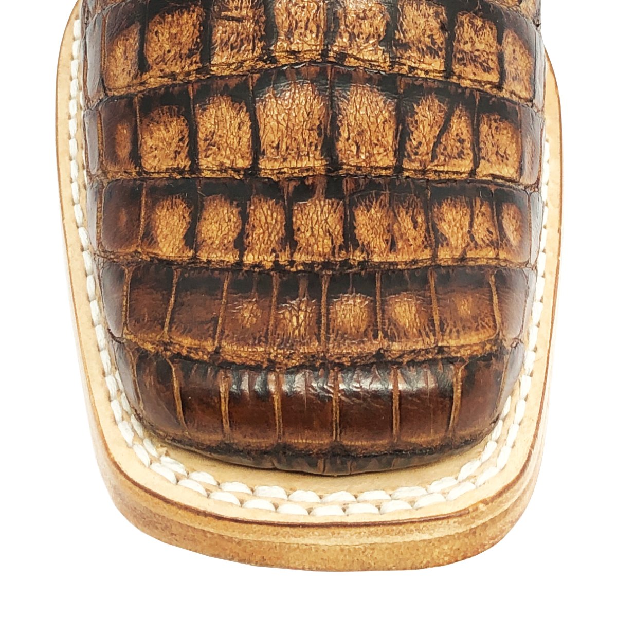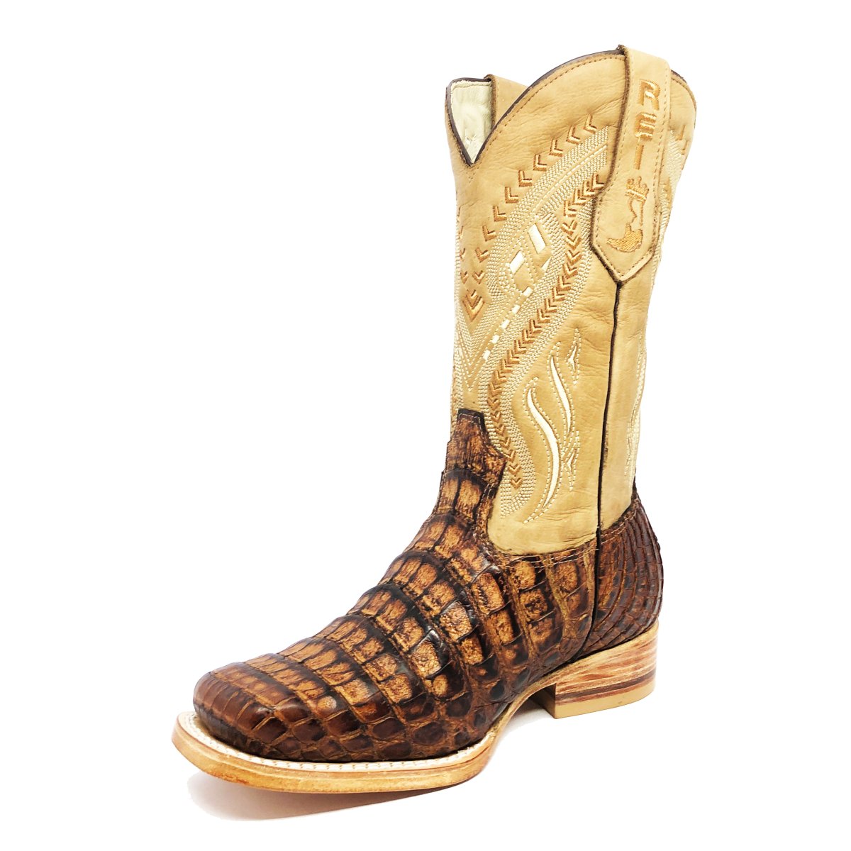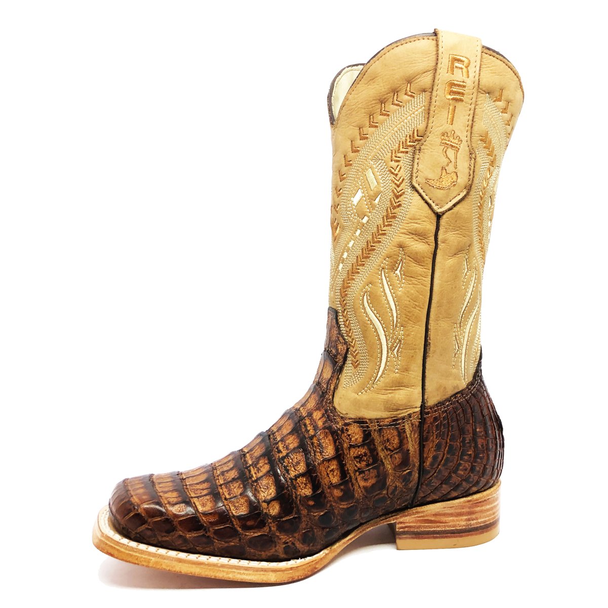 Bota Texana Reizinho Premium de Couro de Jacaré Havana Escuro LIMITED EDITION - Cano Alto, Bico Quadrado - Solado de Couro Artesanal
