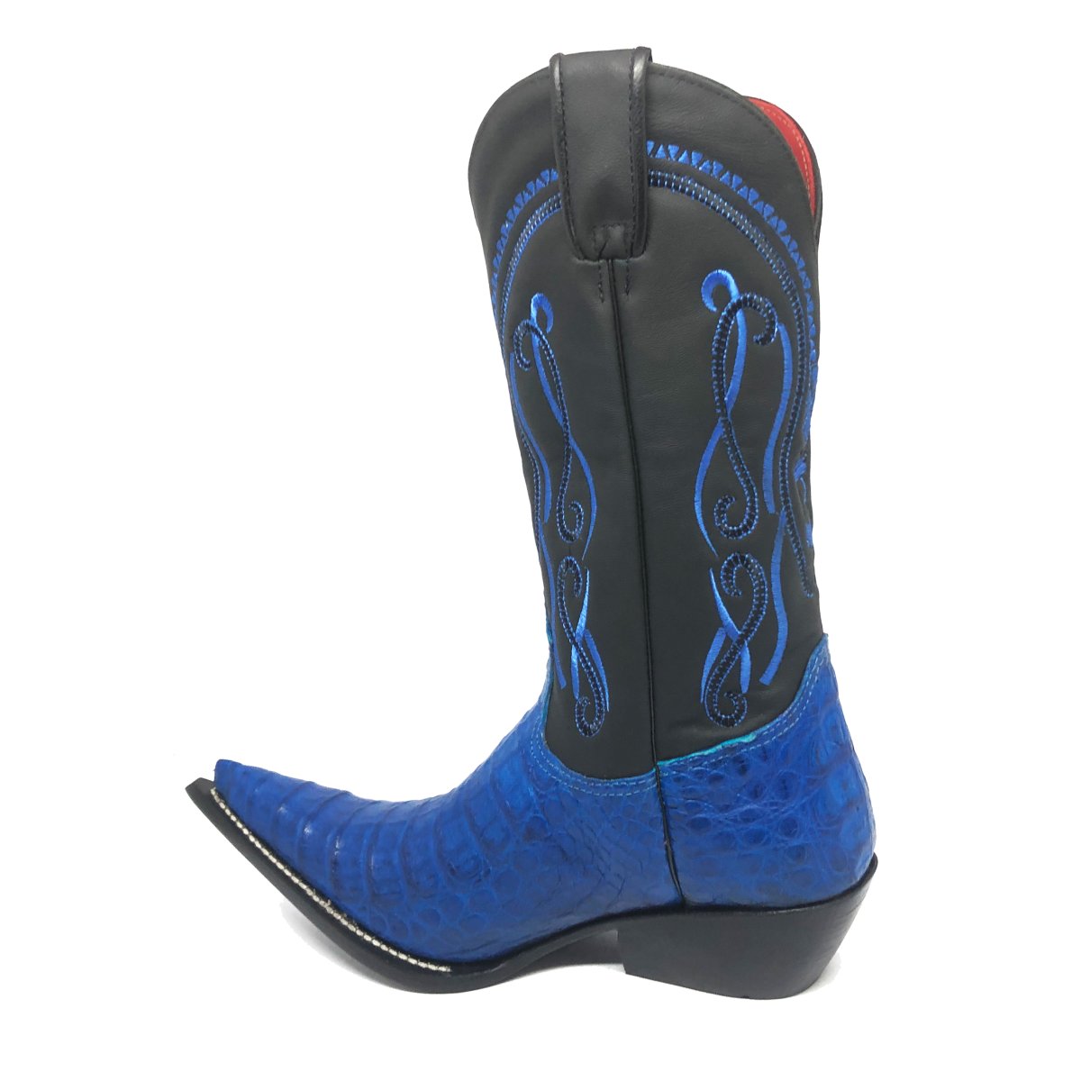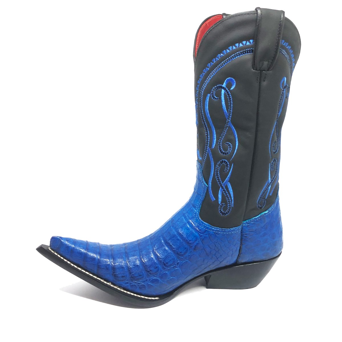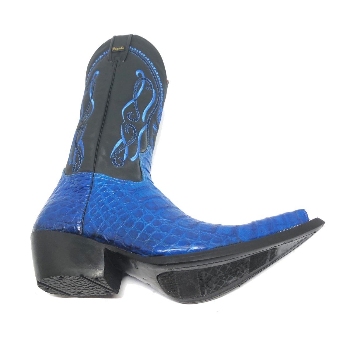 Bota Texana Reizinho Premium de Couro Legítimo de Jacaré Azul LIMITED EDITION - Cano Alto, Bico Fino Inclinado - Solado de Couro ArtesanaL Injetado | Reizinho Botas