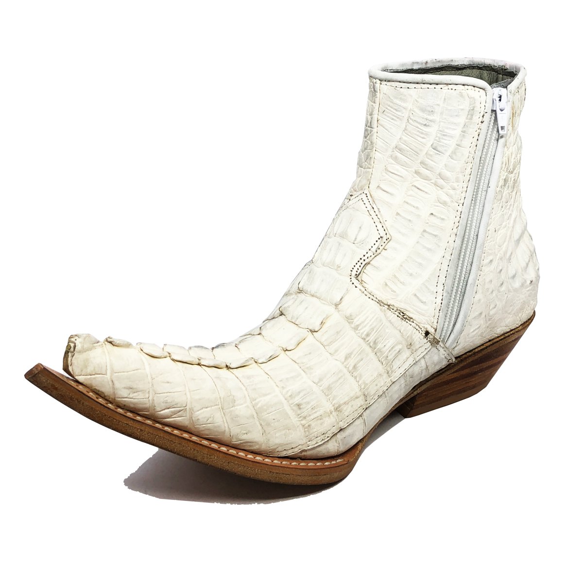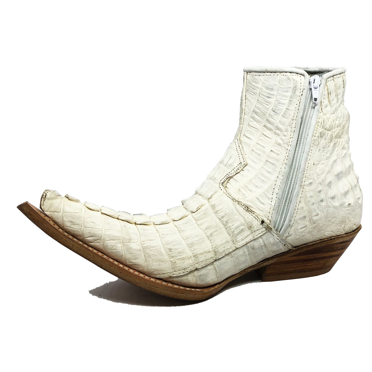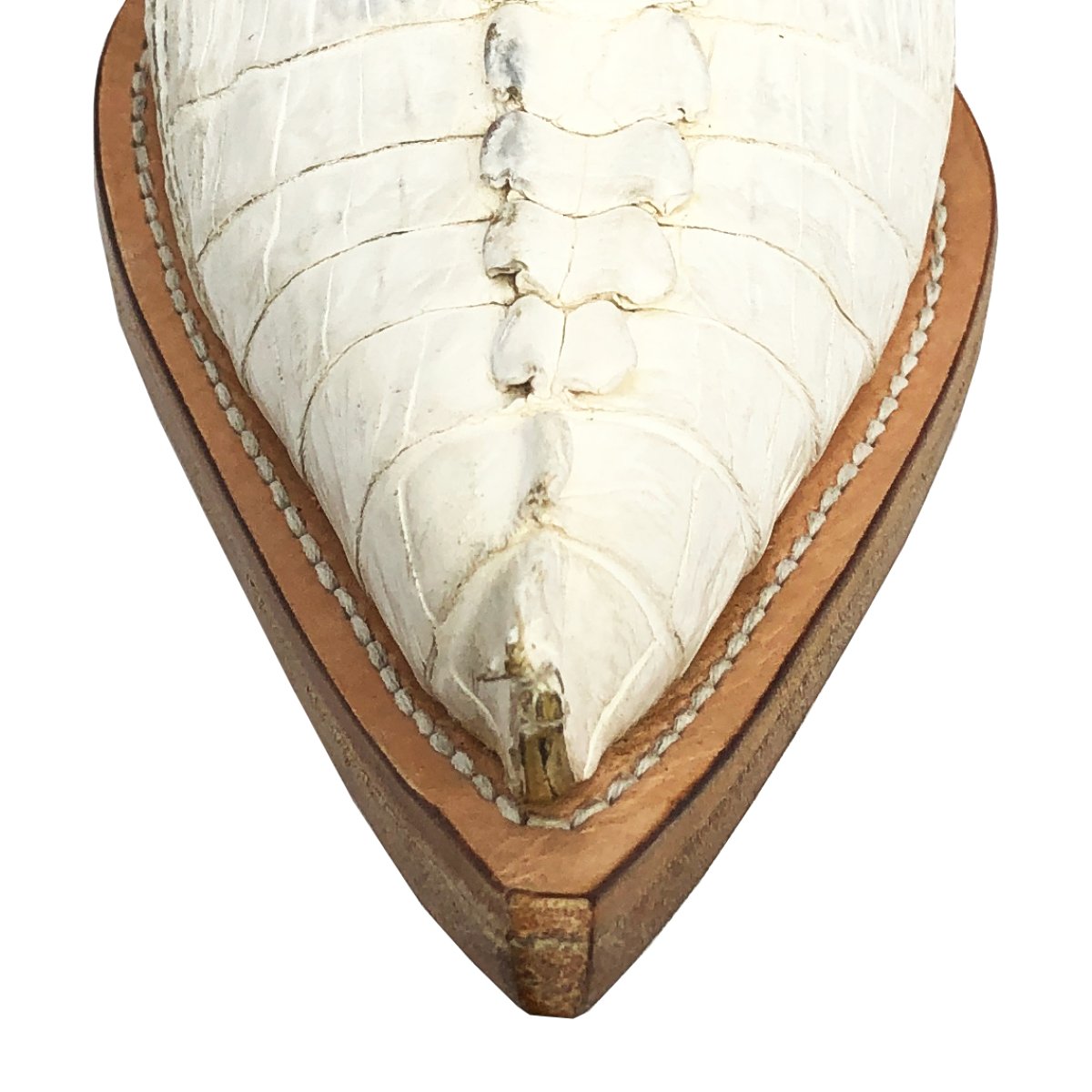 Bota Texana Reizinho Premium de Couro Legítimo de Jacaré Branco Rabo LIMITED EDITION - Cano Curto, Bico Fino Inclinado - Solado de Couro Artesanal