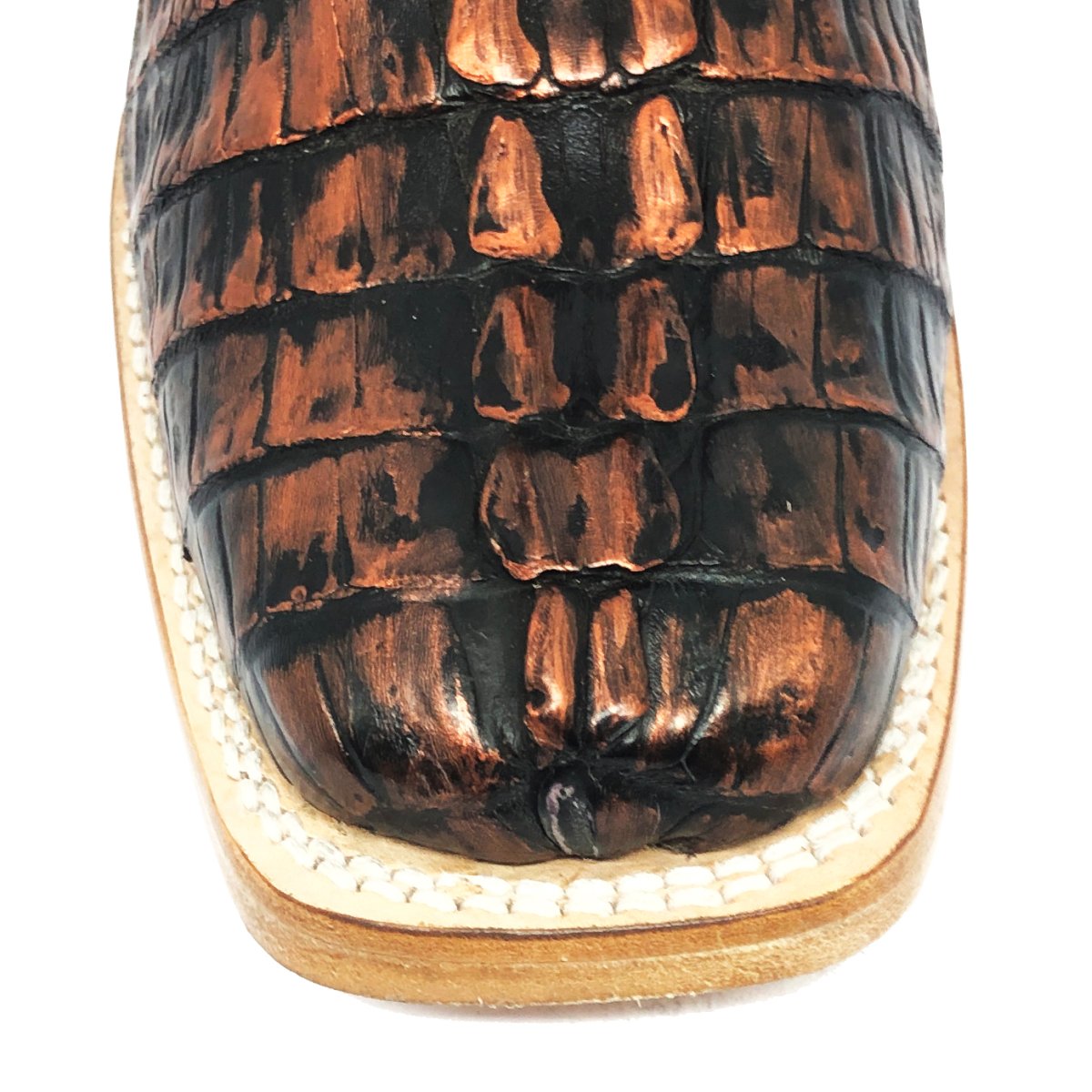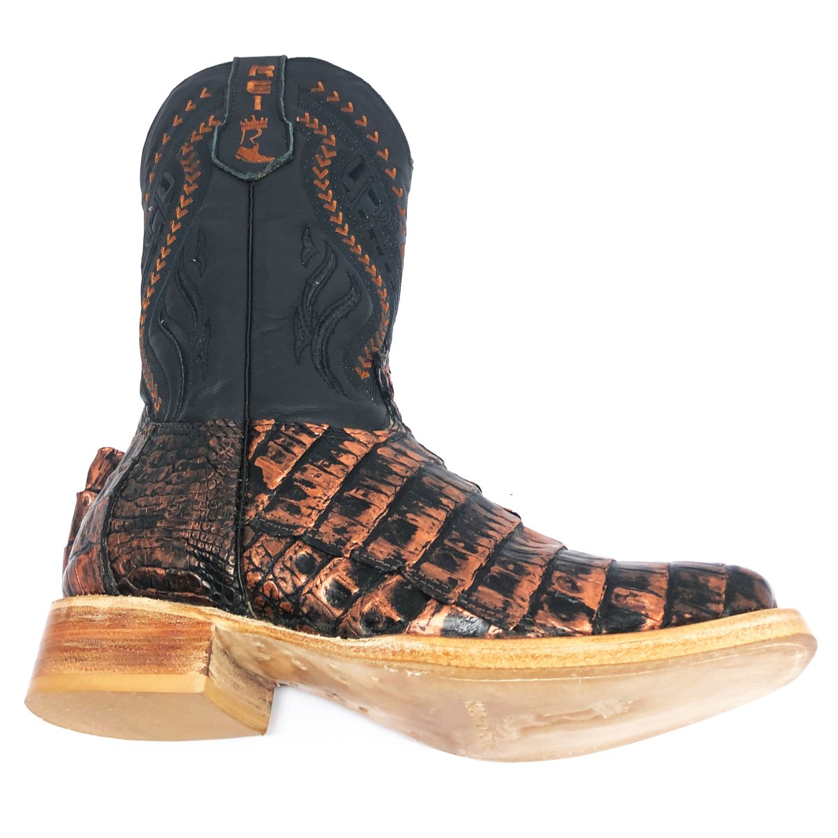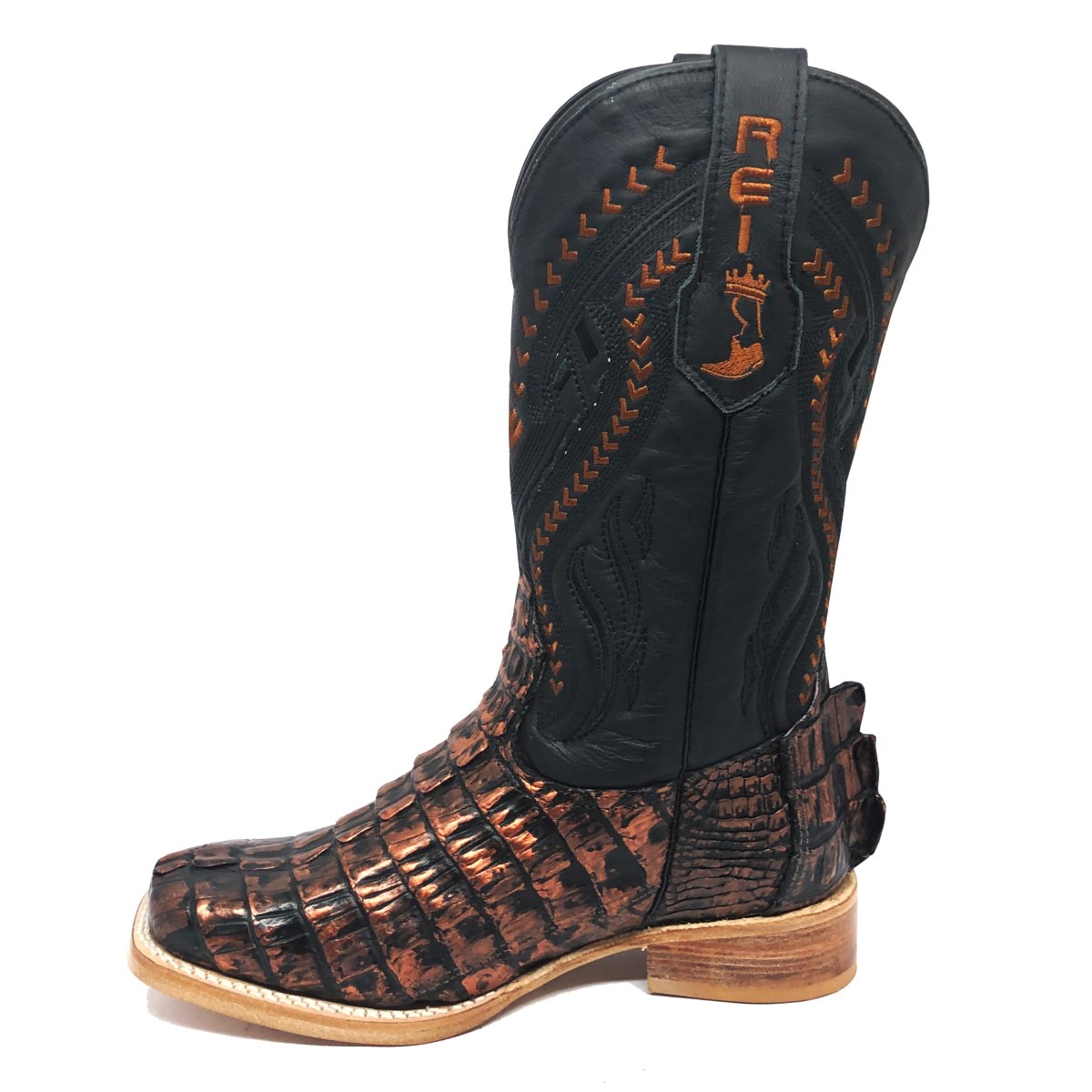 Bota Texana Reizinho Premium de Couro Legítimo de Jacaré Bronze Rabo LIMITED EDITION - Cano Alto, Bico Quadrado - Solado de Couro Artesanal