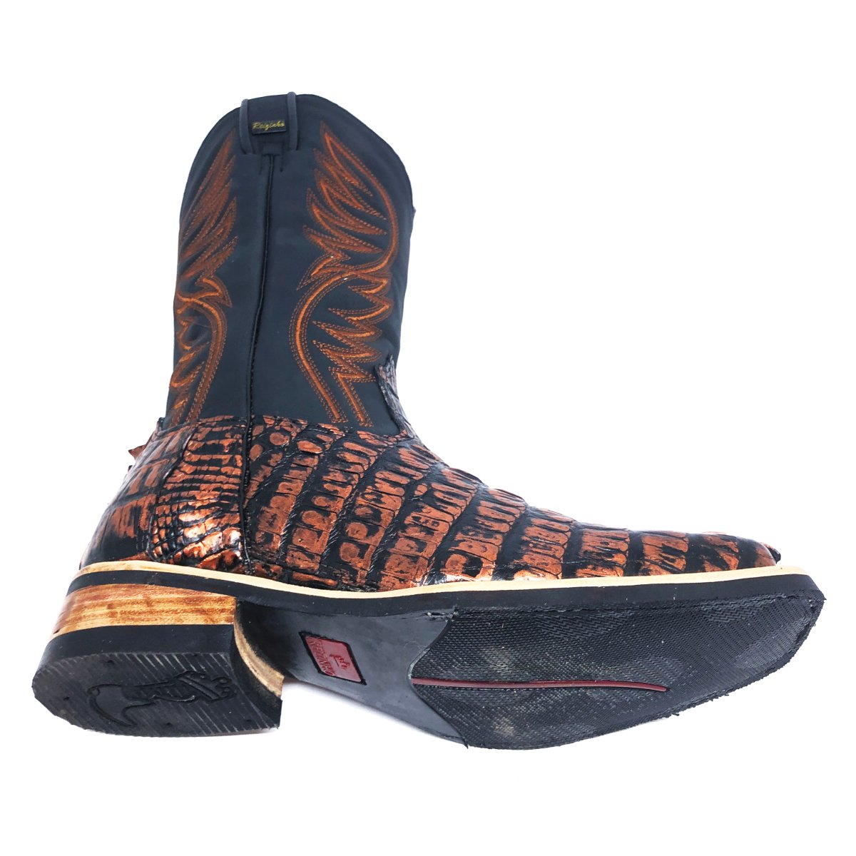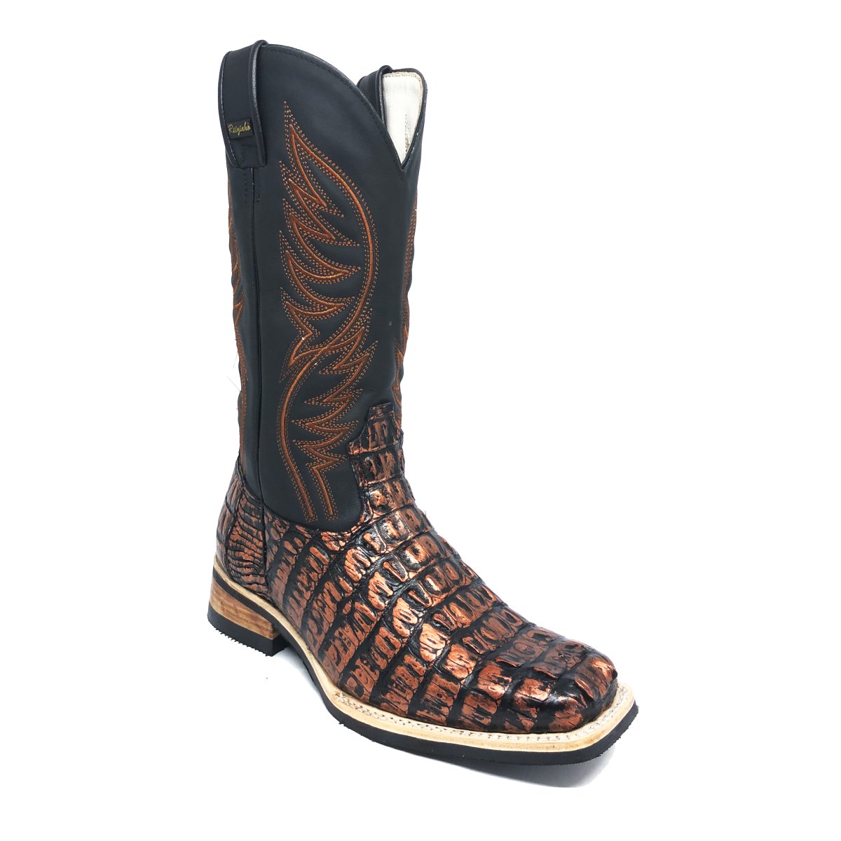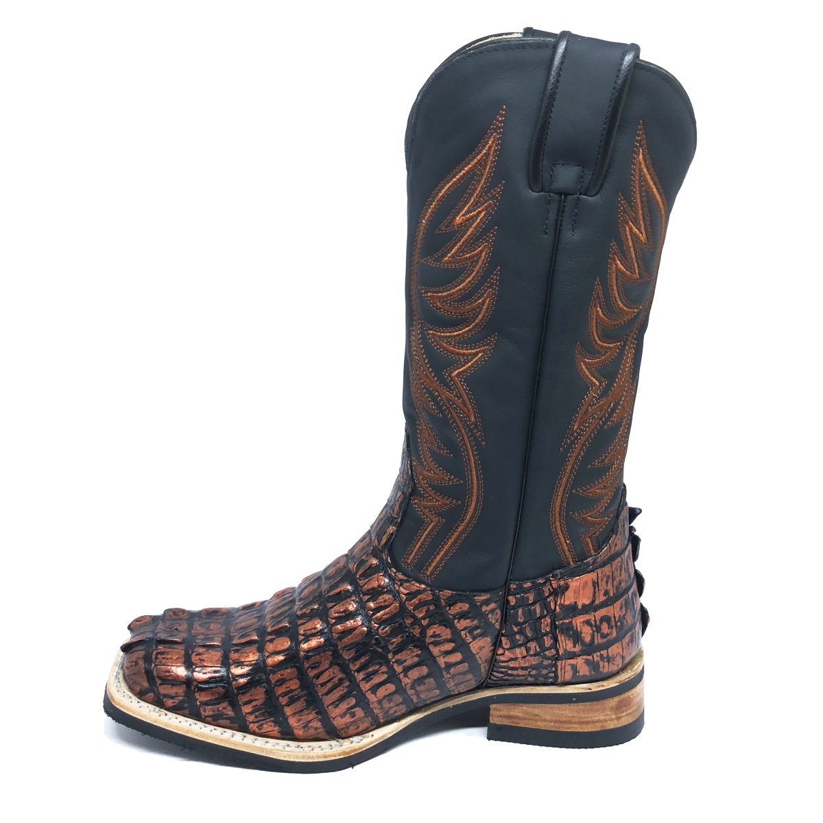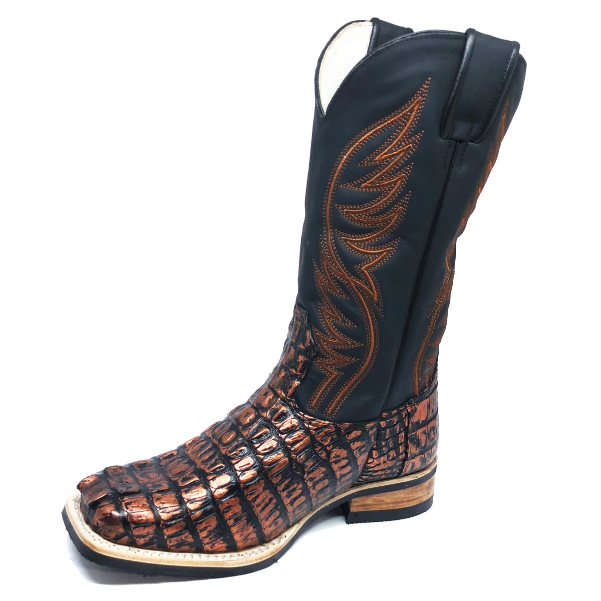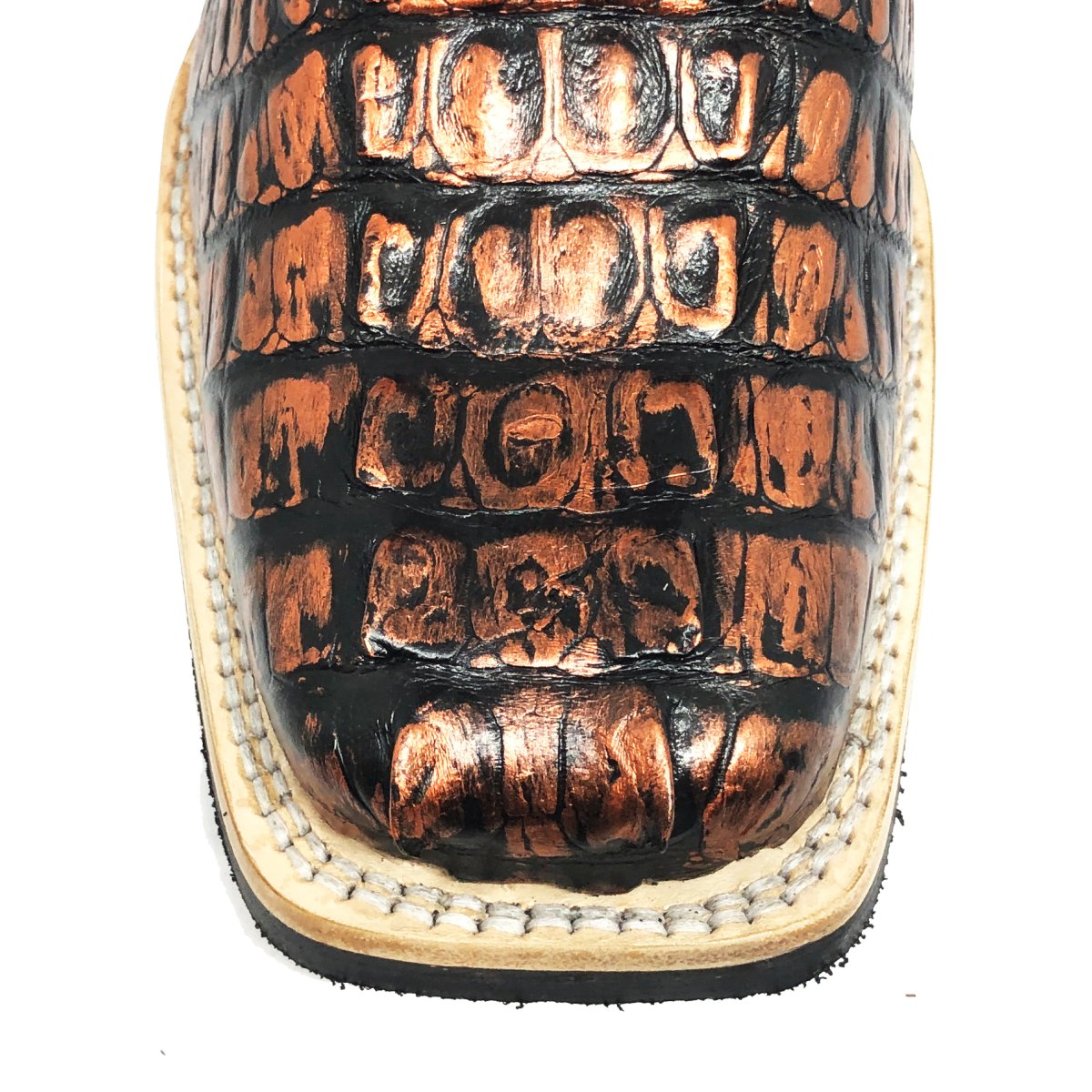 Bota Texana Reizinho Premium de Couro Legítimo de Jacaré Bronze Rabo LIMITED EDITION - Cano Alto, Bico Quadrado - Solado X-Flex Artesanal
