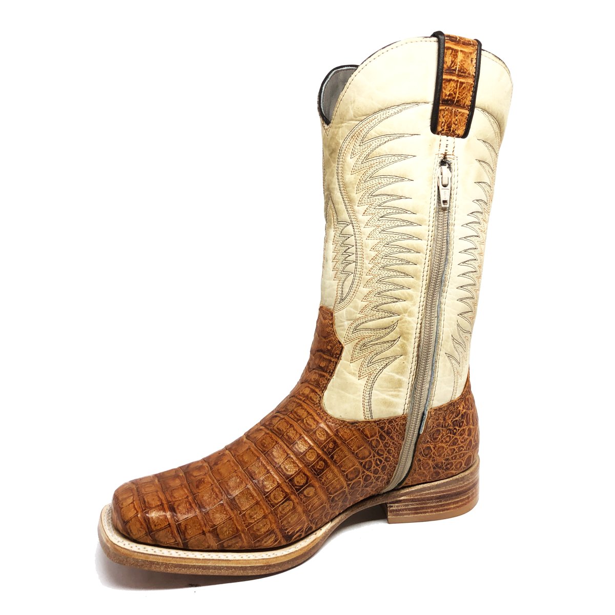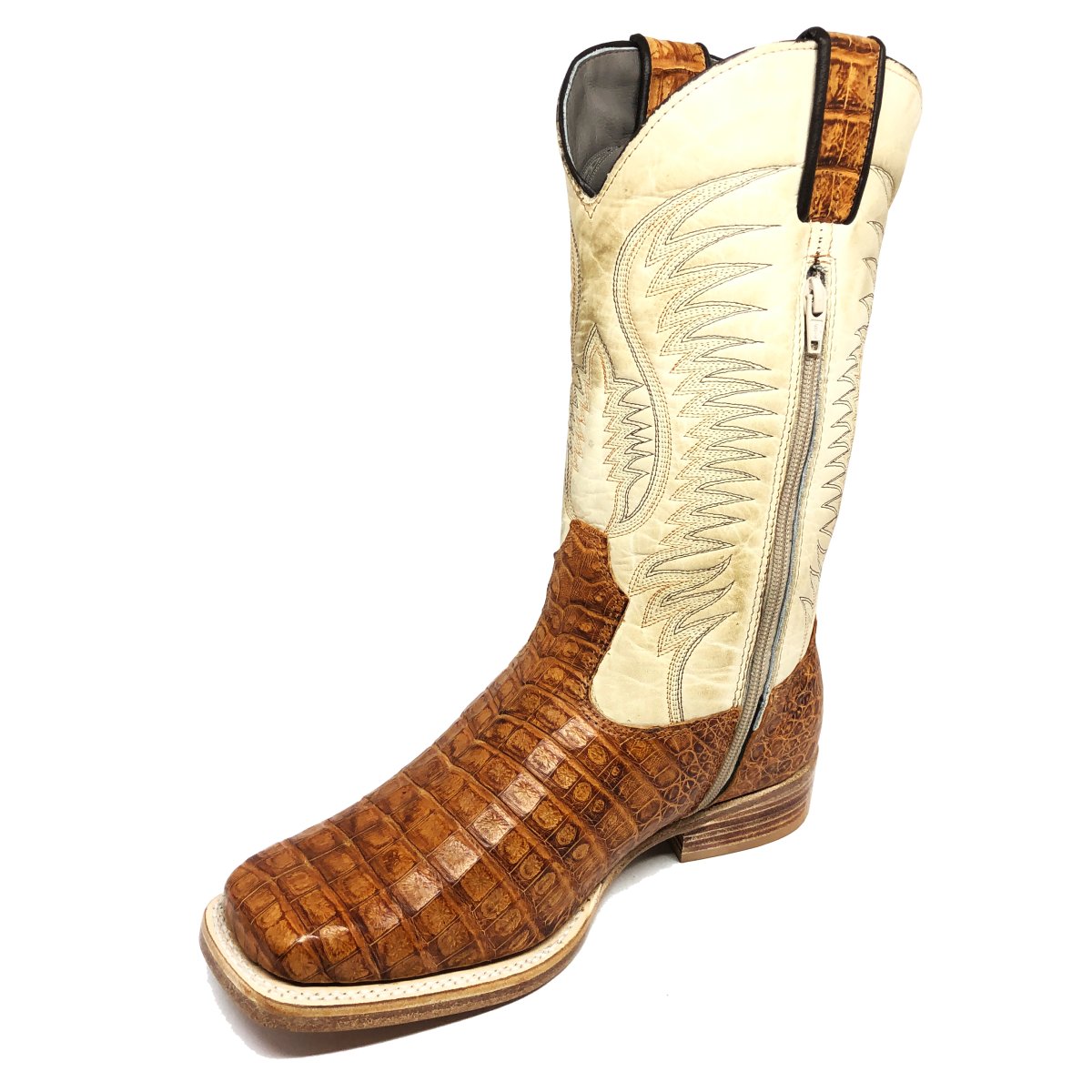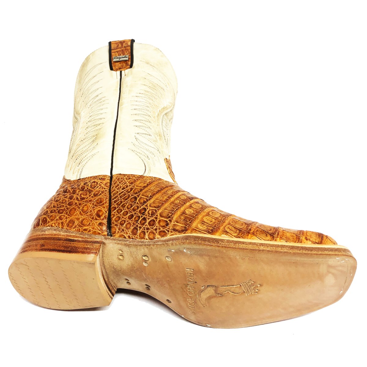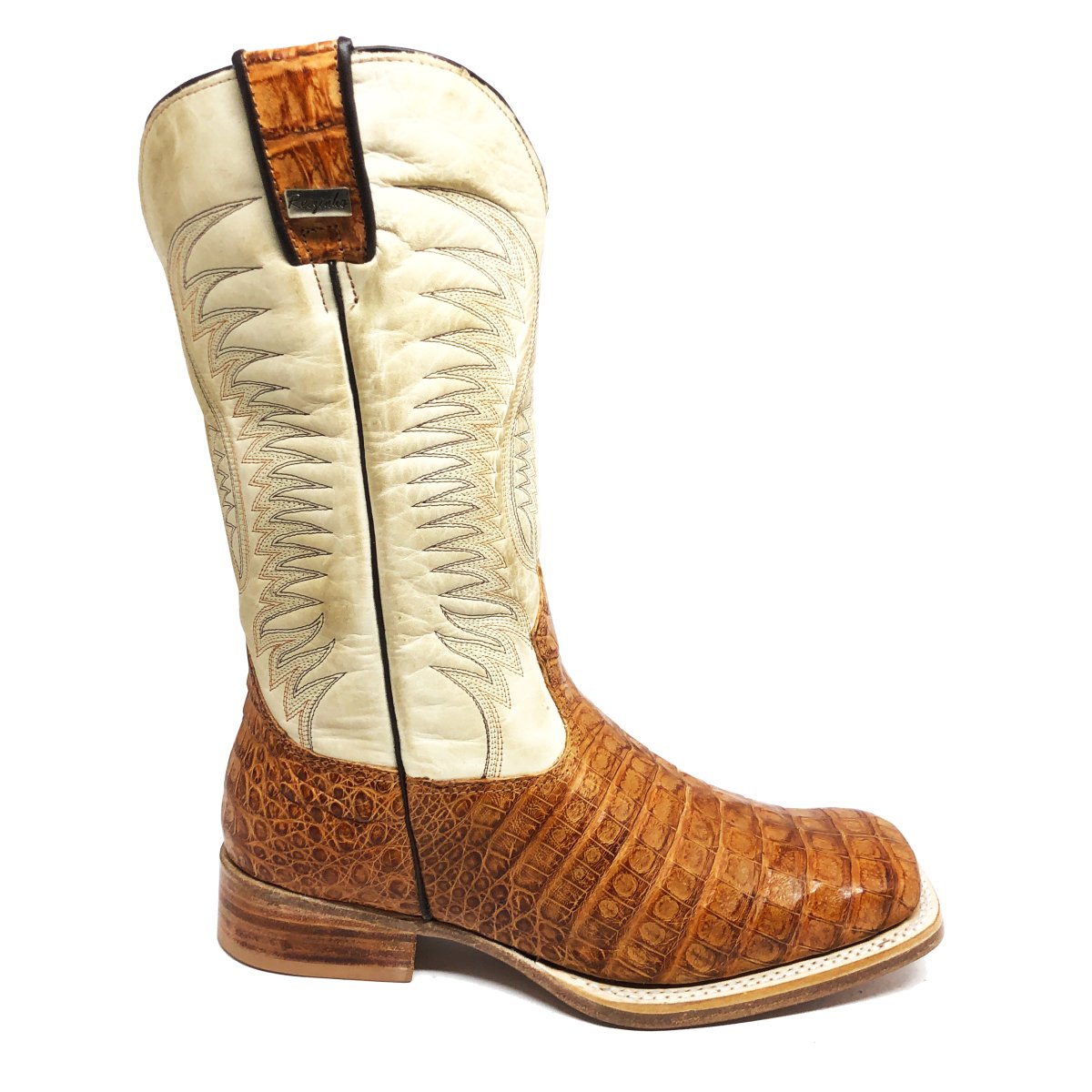 Bota Texana Reizinho Premium de Couro Legítimo de Jacaré Havana - Cano Alto, Bico Quadrado - Solado de Couro Artesanal | Reizinho Botas
