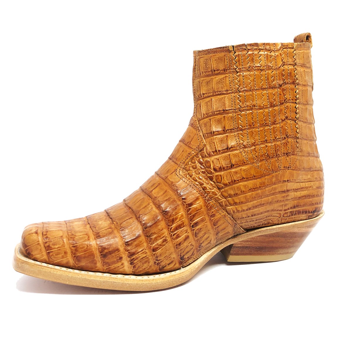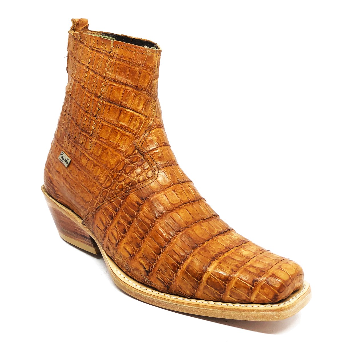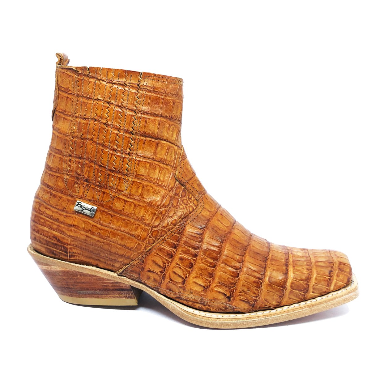 Bota Texana Reizinho Premium de Couro Legítimo de Jacaré Havana LIMITED EDITION - Cano Curto, Bico Quadrado Médio - Solado de Couro Artesanal