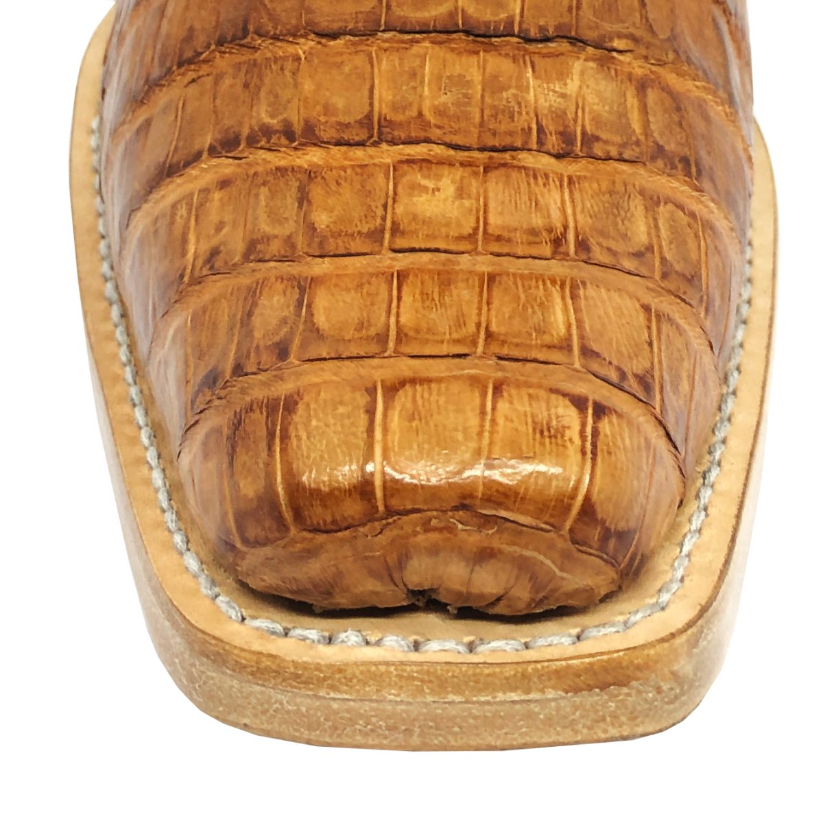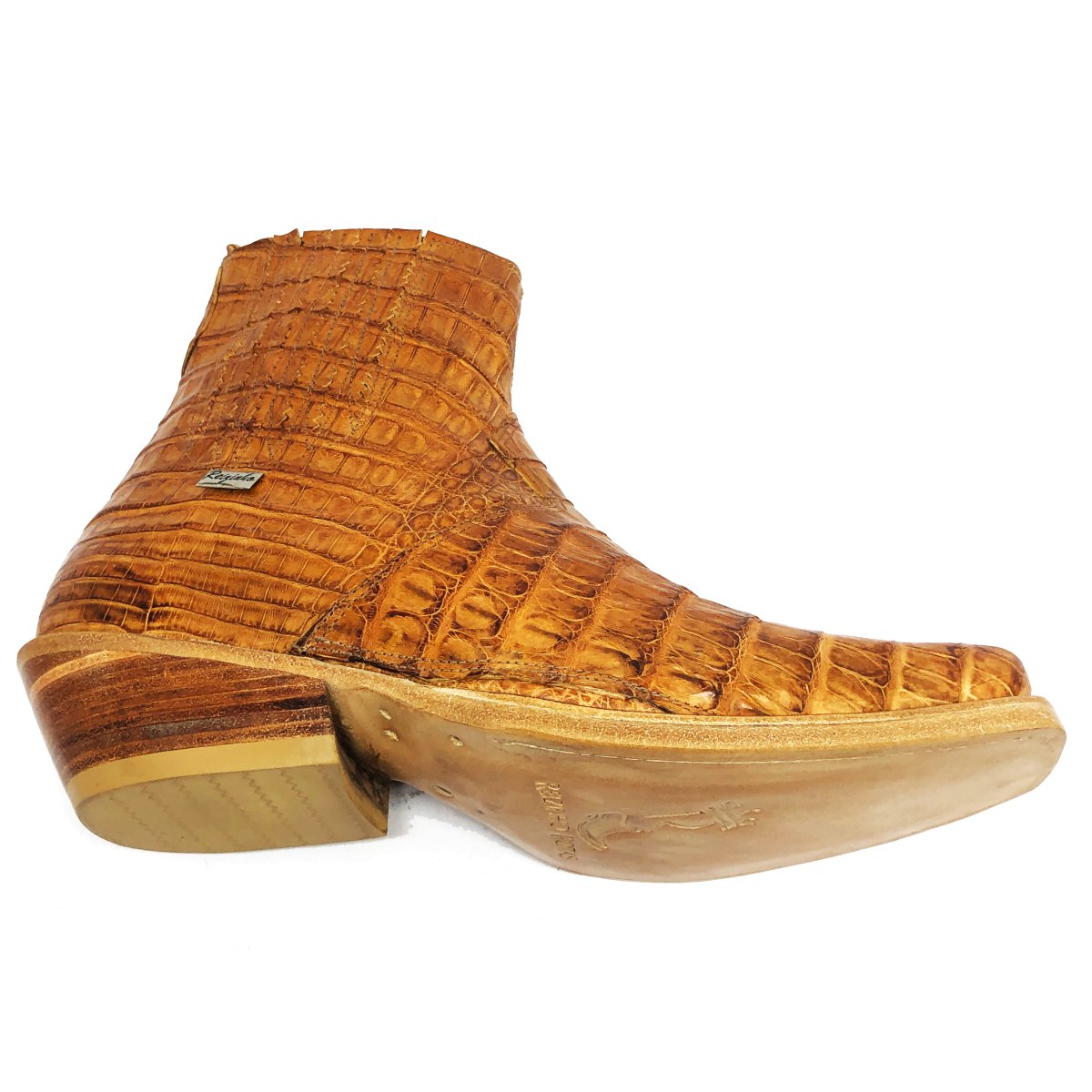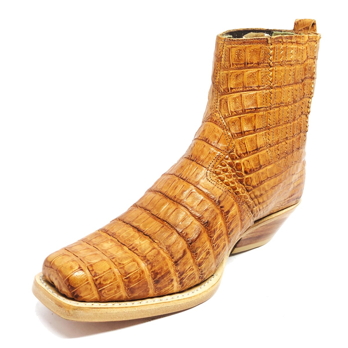 Bota Texana Reizinho Premium de Couro Legítimo de Jacaré Havana LIMITED EDITION - Cano Curto, Bico Quadrado Médio - Solado de Couro Artesanal