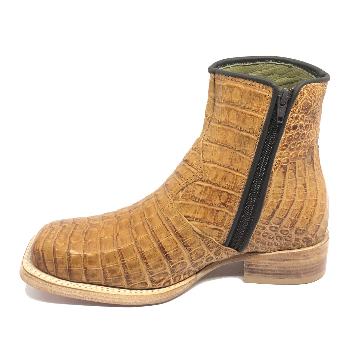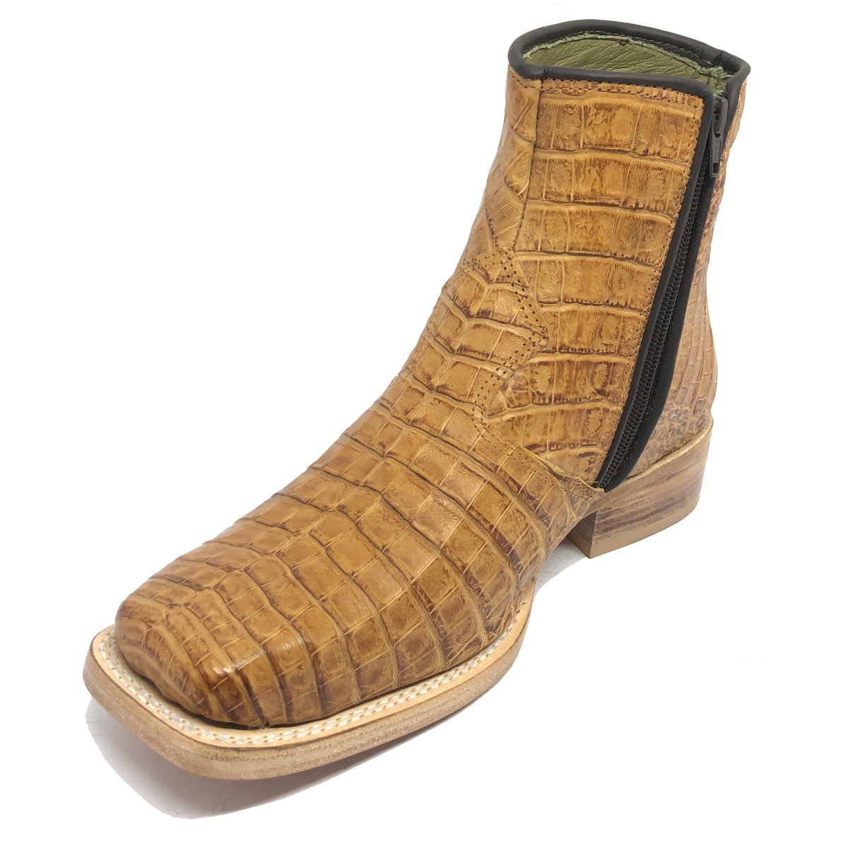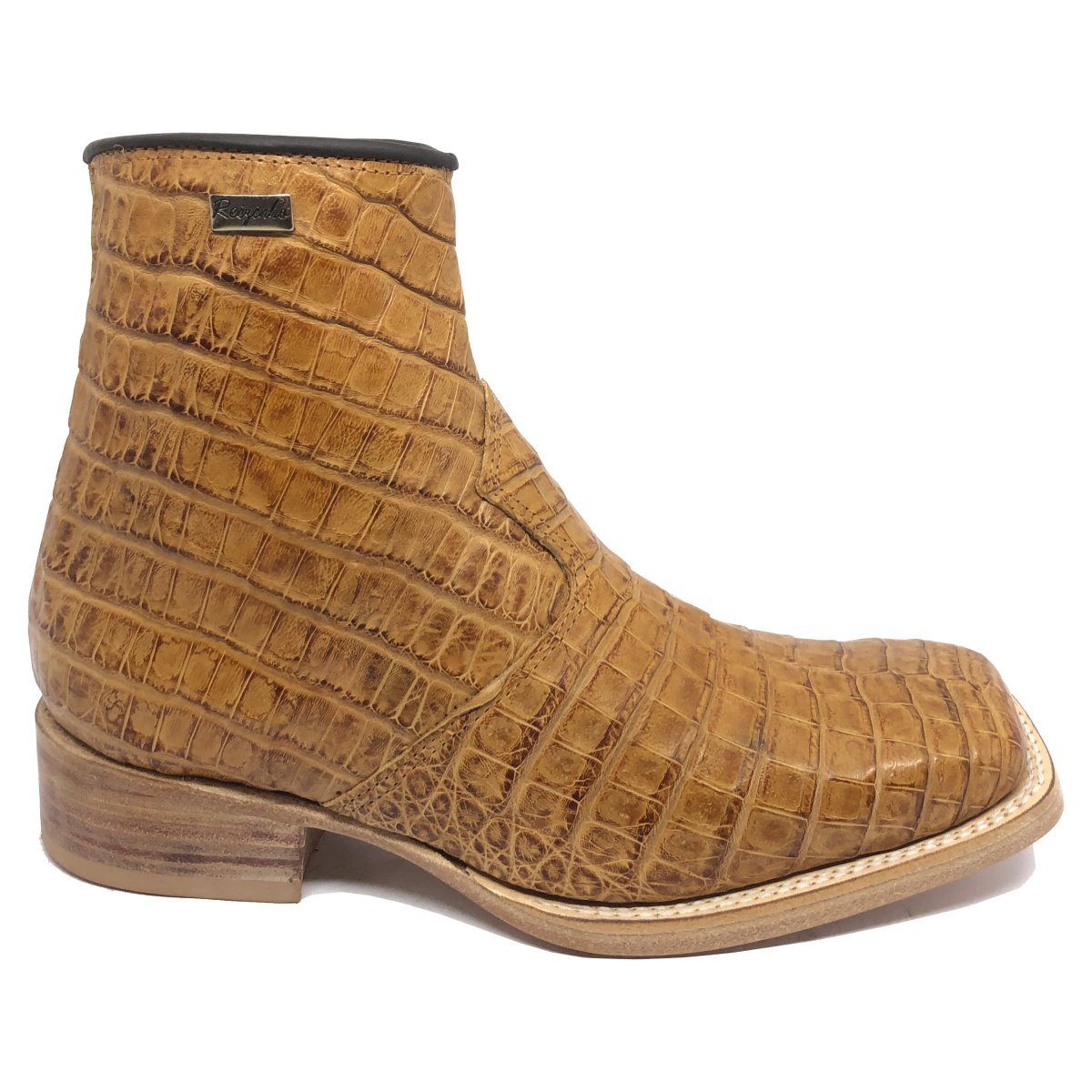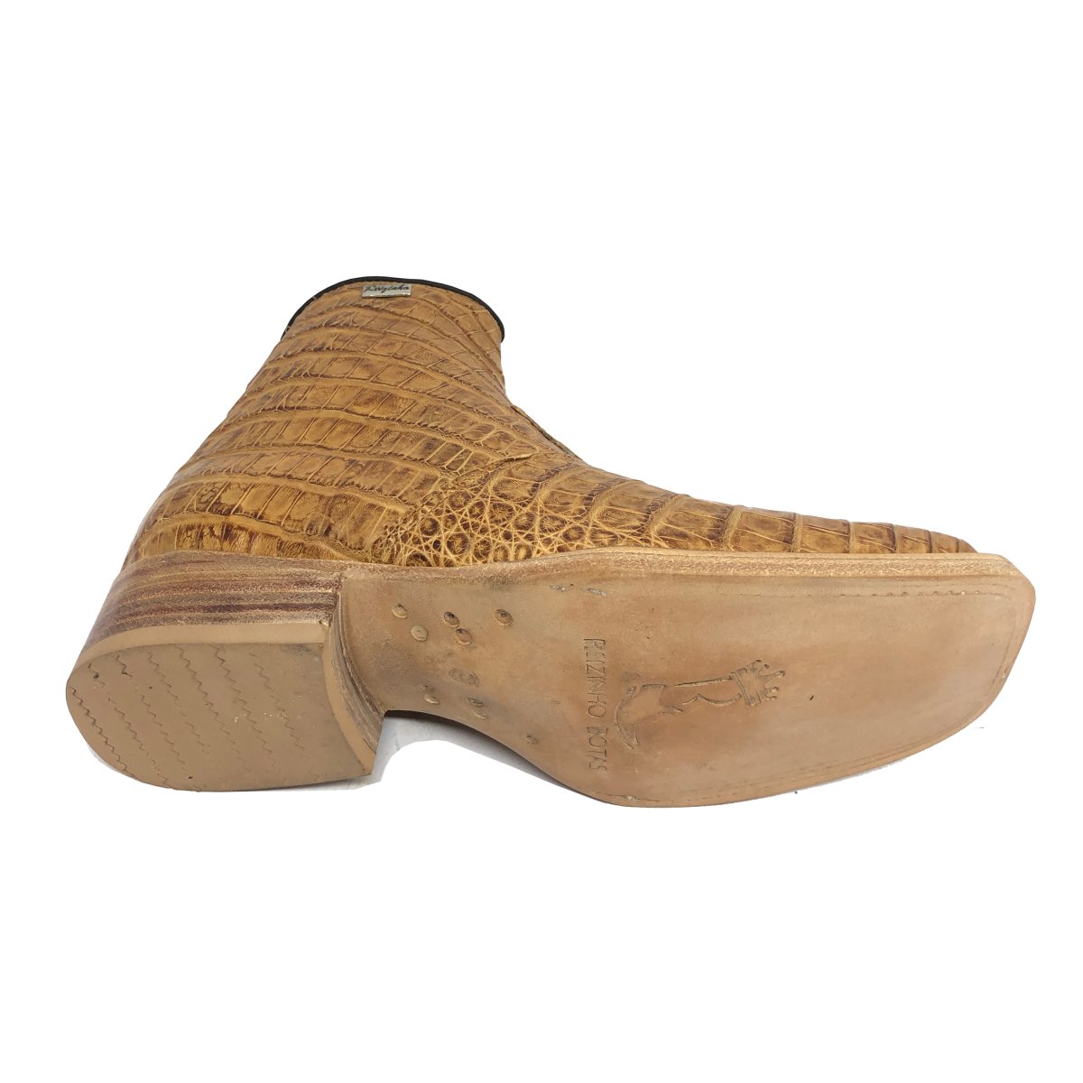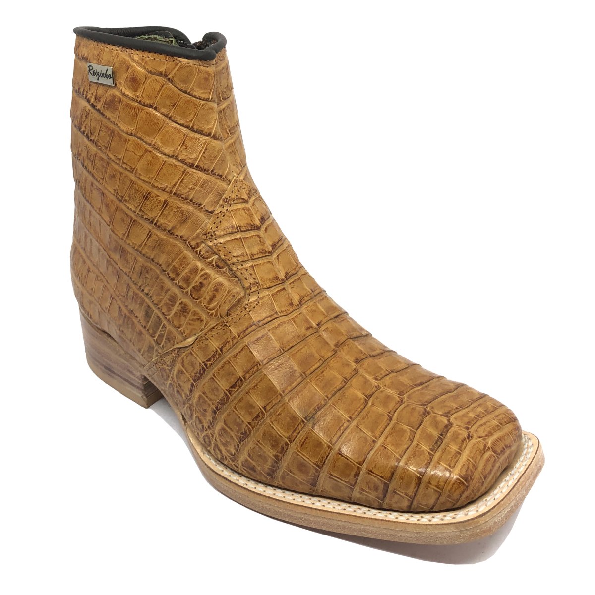 Bota Texana Reizinho Premium de Couro Legítimo de Jacaré Havana LIMITED EDITION - Cano Curto, Bico Quadrado - Solado de Couro Artesanal