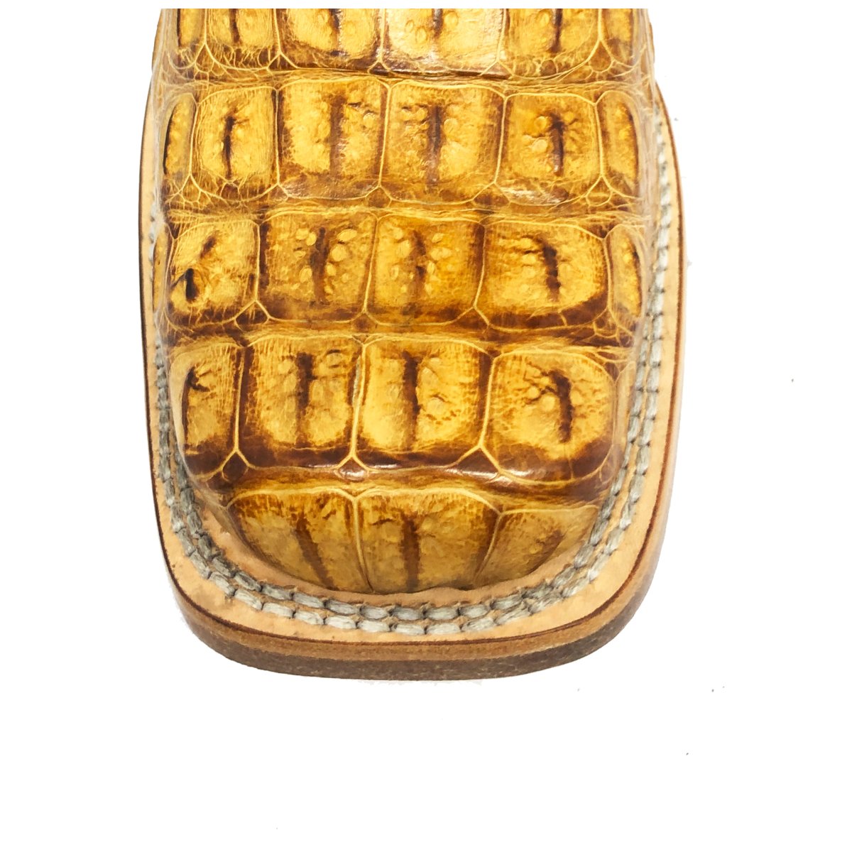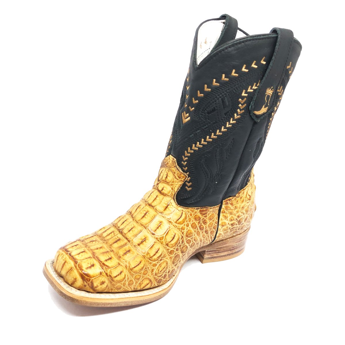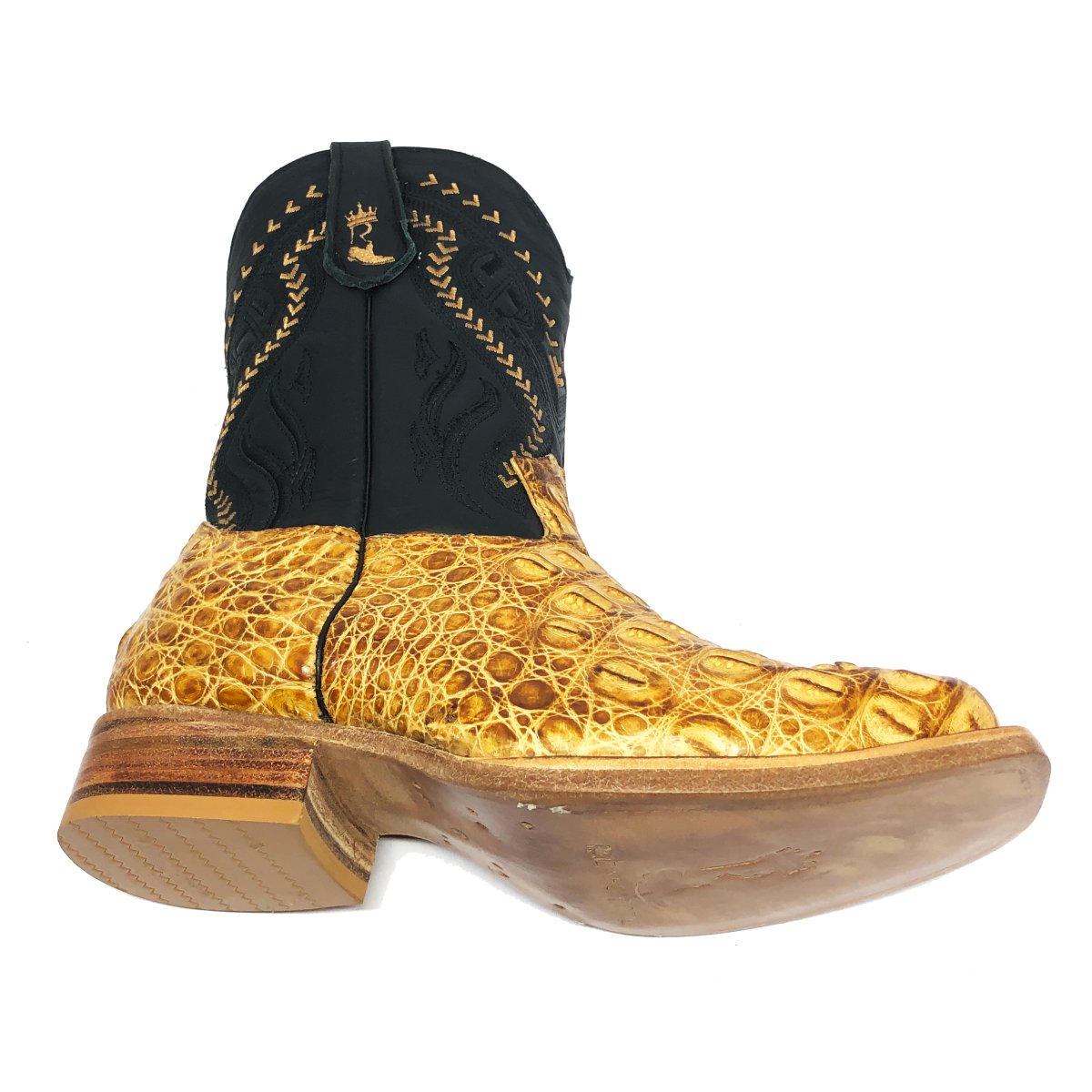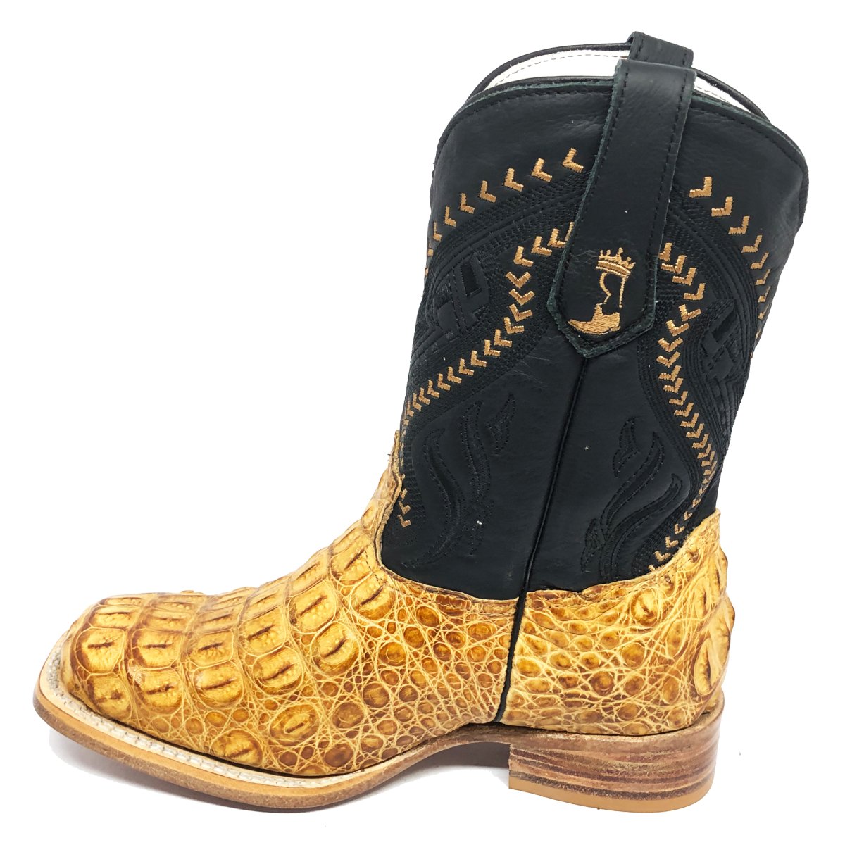 Bota Texana Reizinho Premium de Couro Legítimo de Jacaré Havana LIMITED EDITION - Cano Médio, Bico Quadrado - Solado de Couro Artesanal