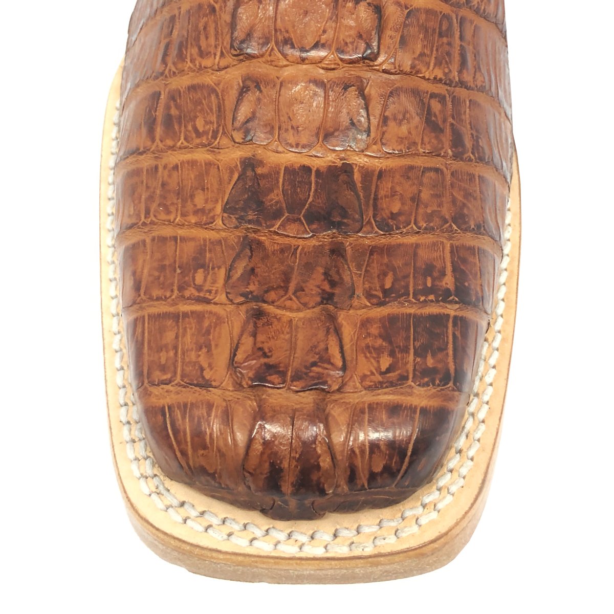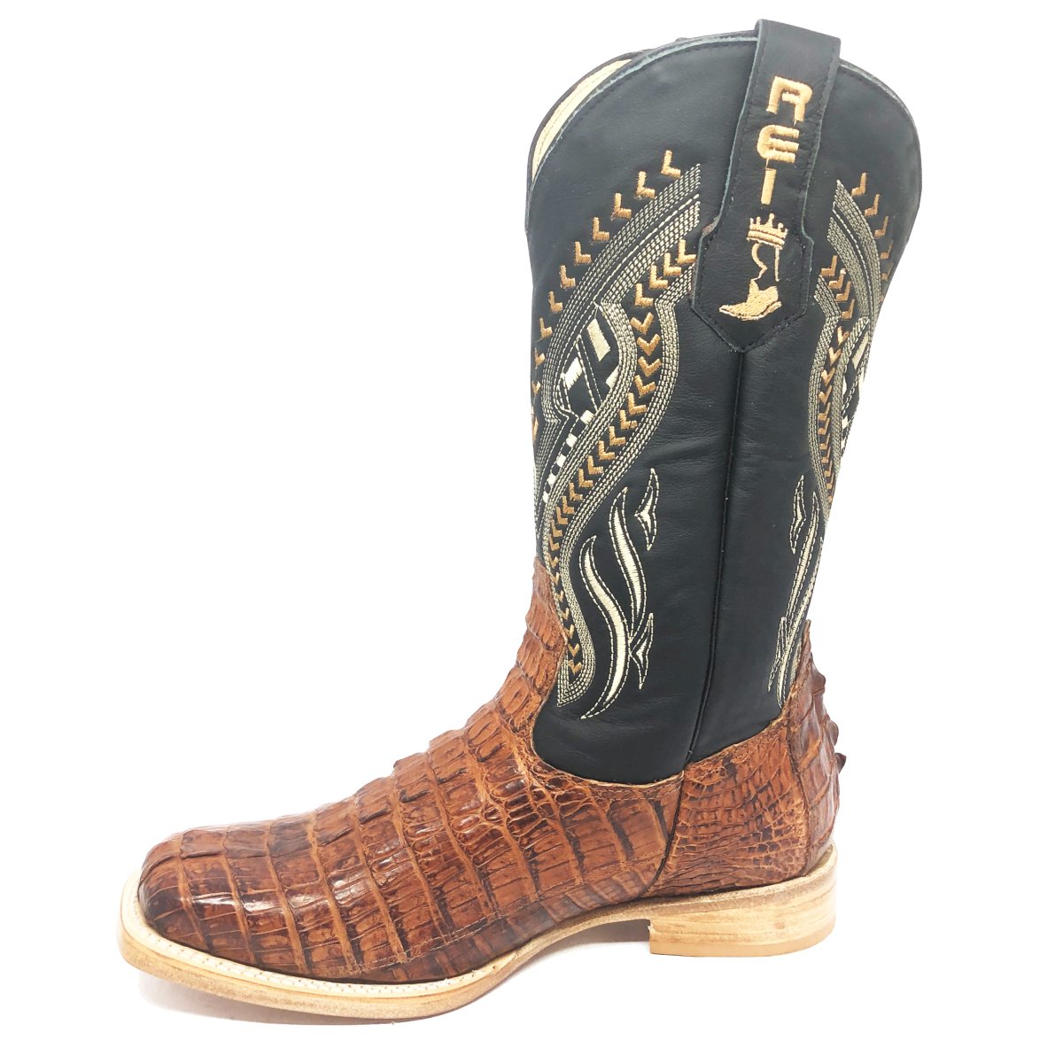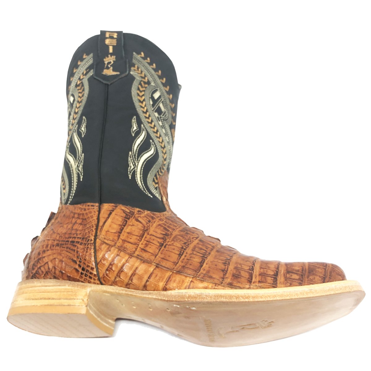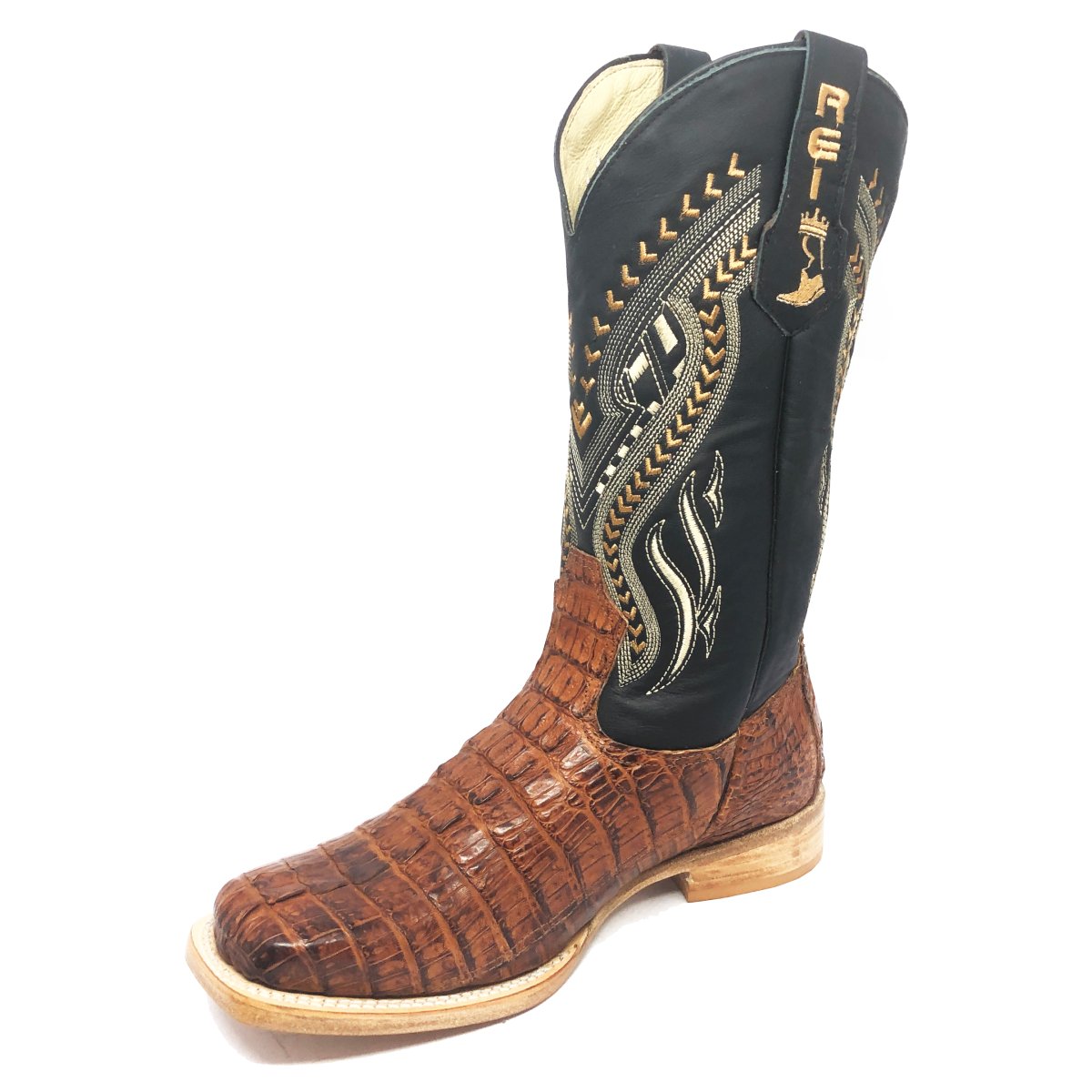 Bota Texana Reizinho Premium de Couro Legítimo de Jacaré Havana Rabo LIMITED EDITION - Cano Alto, Bico Quadrado - Solado de Couro Artesanal
