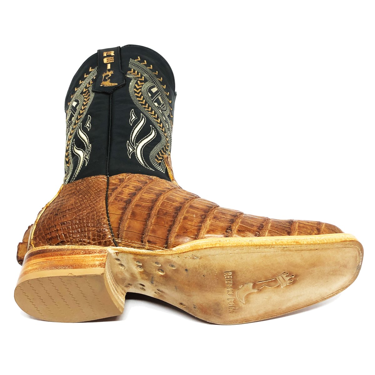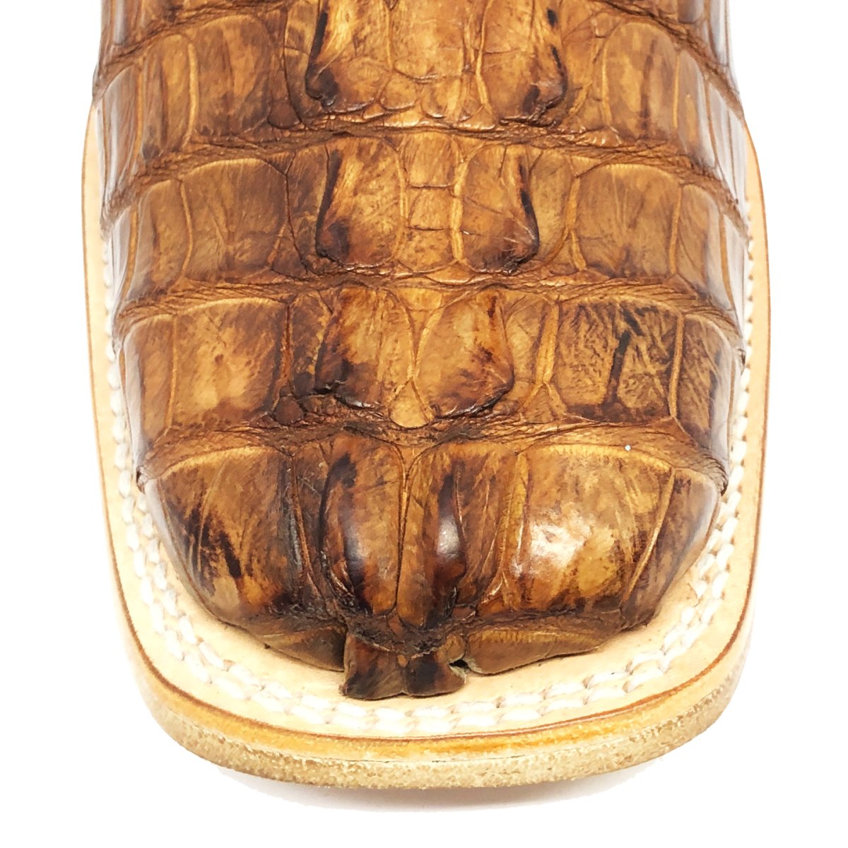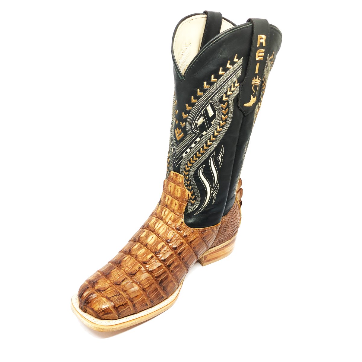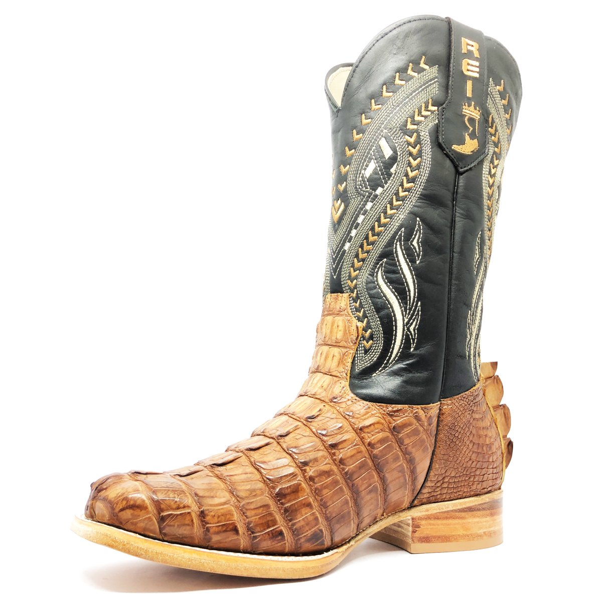 Bota Texana Reizinho Premium de Couro Legítimo de Jacaré Havana Rabo LIMITED EDITION - Cano Alto, Bico Quadrado - Solado de Couro Artesanal