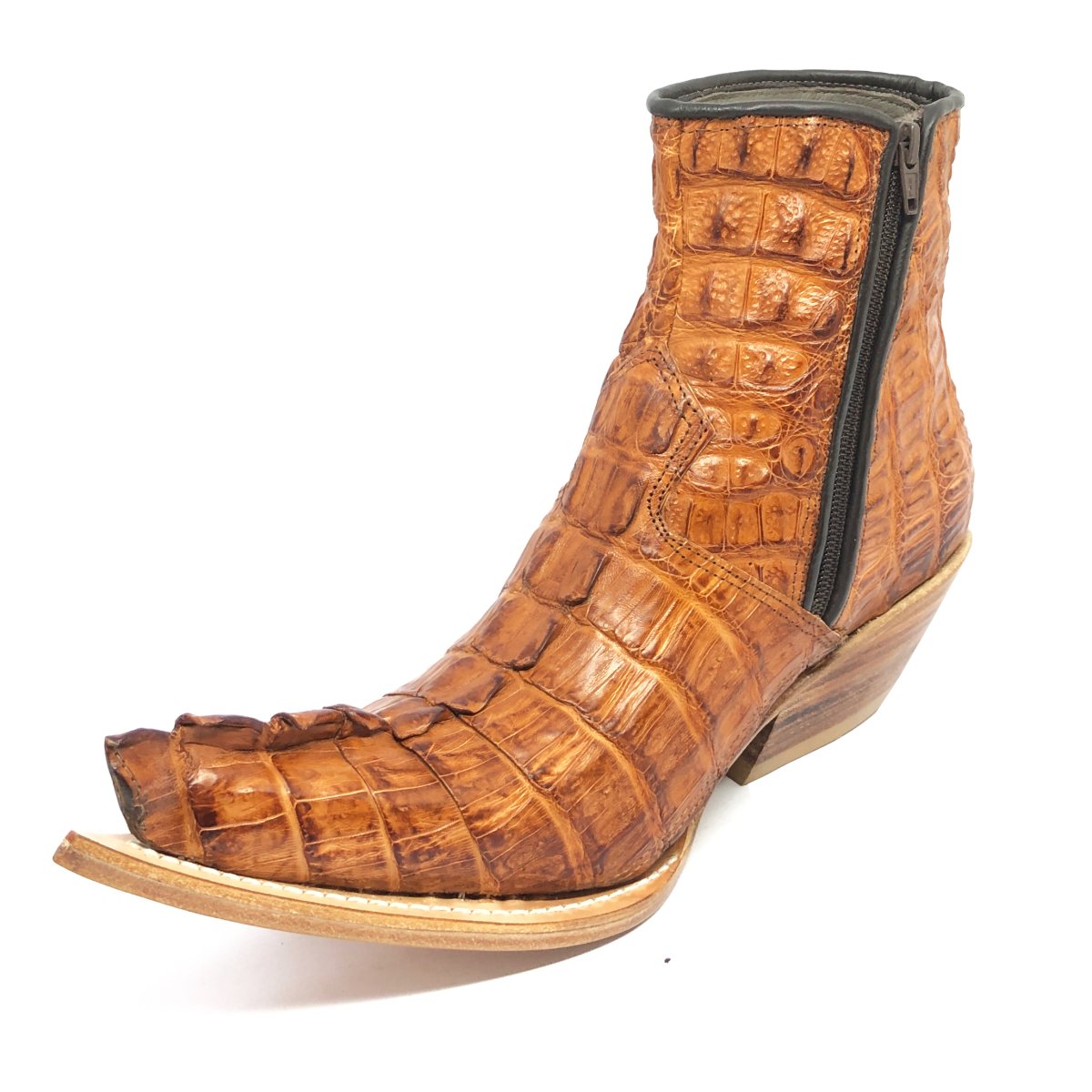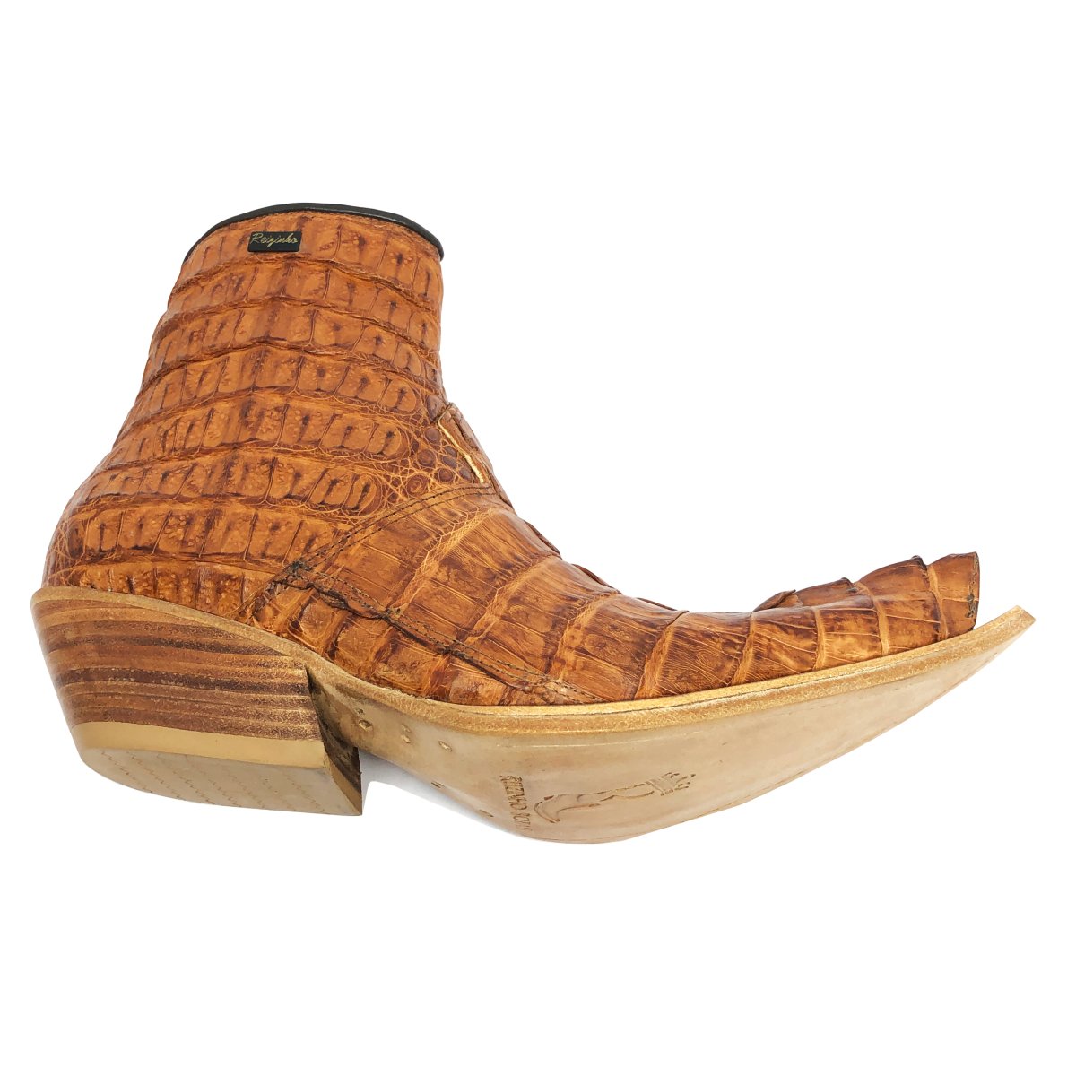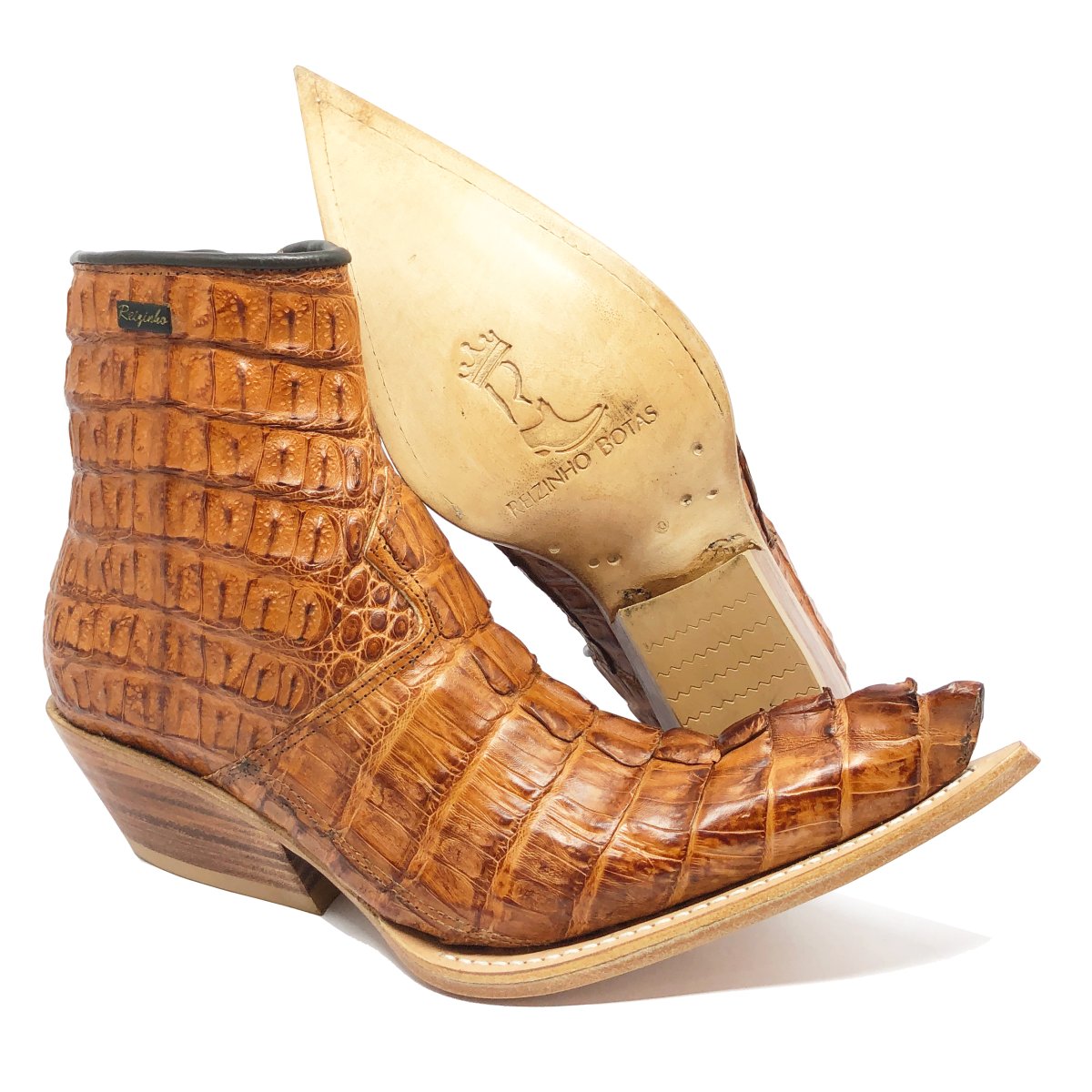 Bota Texana Reizinho Premium de Couro Legítimo de Jacaré Havana Rabo LIMITED EDITION - Cano Curto, Bico Fino - Solado de Couro Artesanal