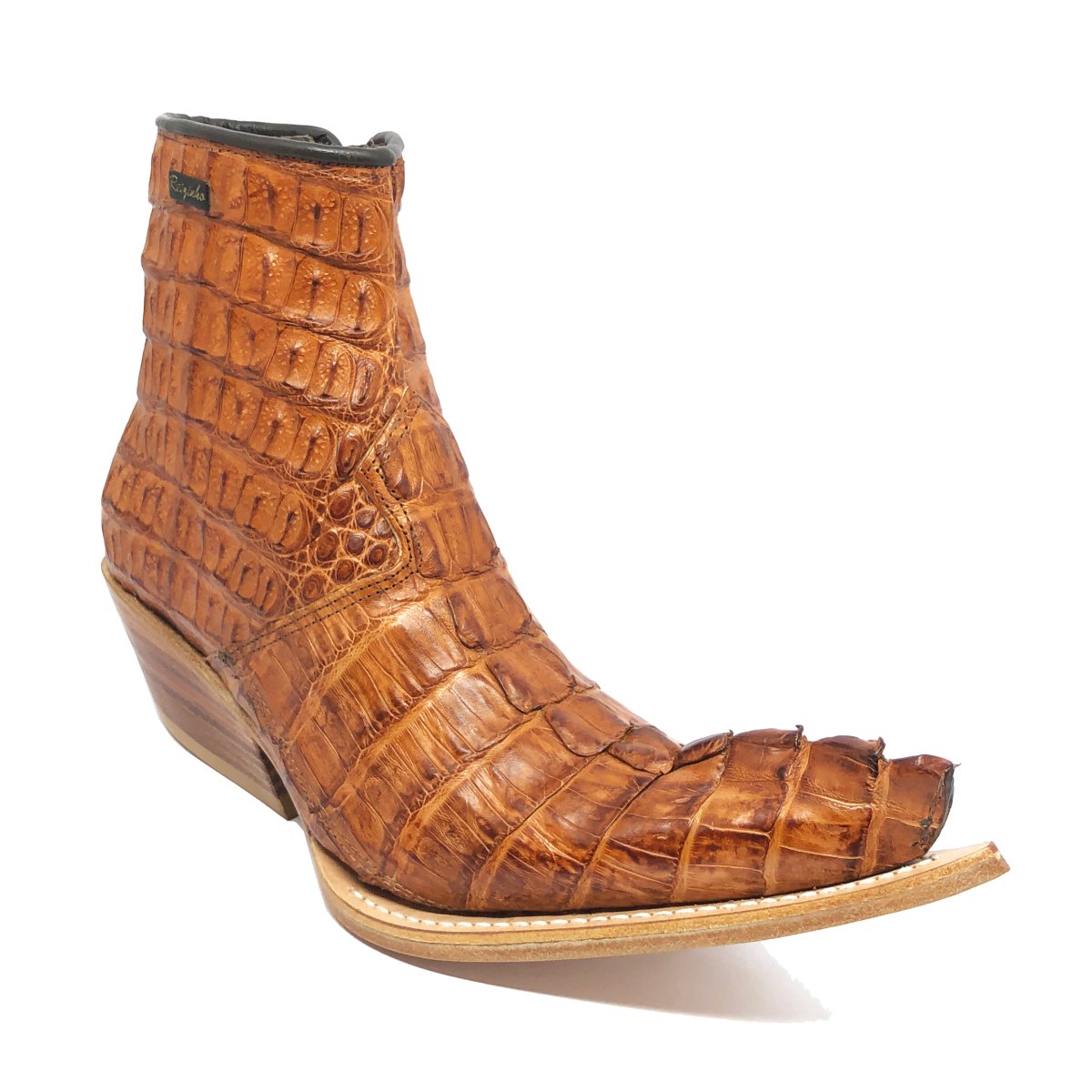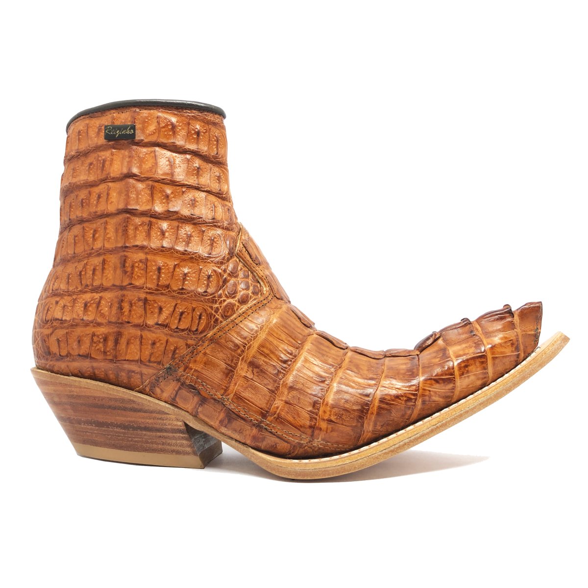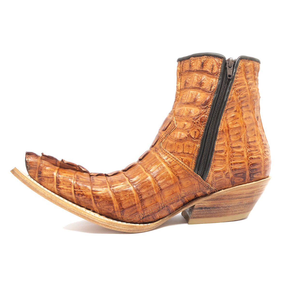 Bota Texana Reizinho Premium de Couro Legítimo de Jacaré Havana Rabo LIMITED EDITION - Cano Curto, Bico Fino - Solado de Couro Artesanal