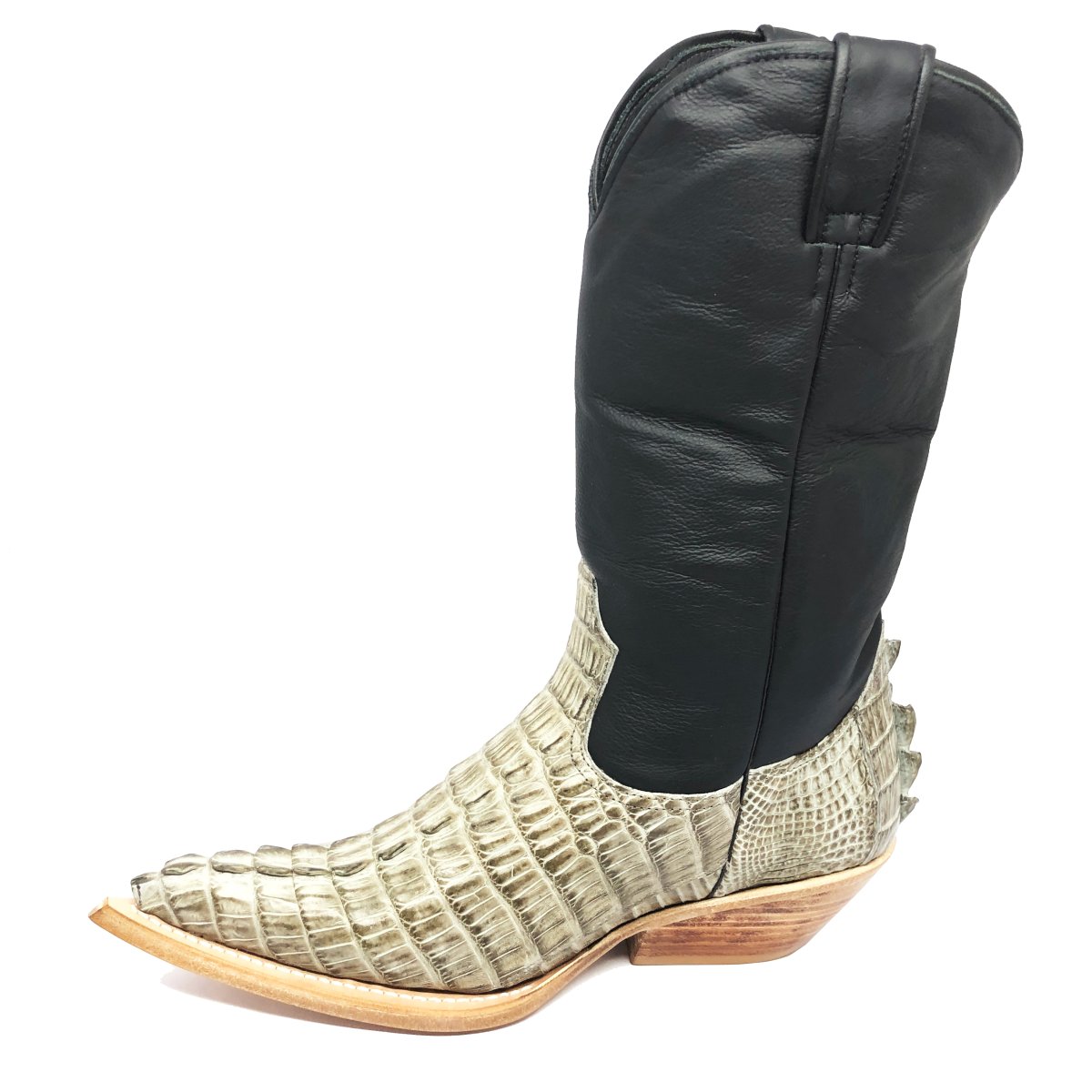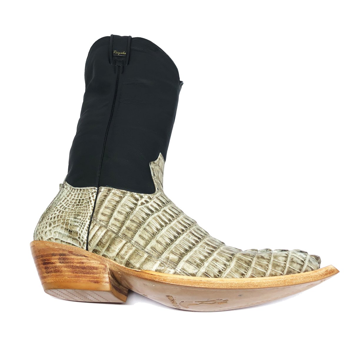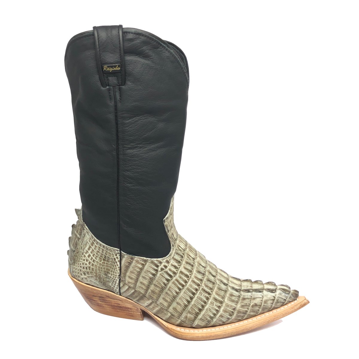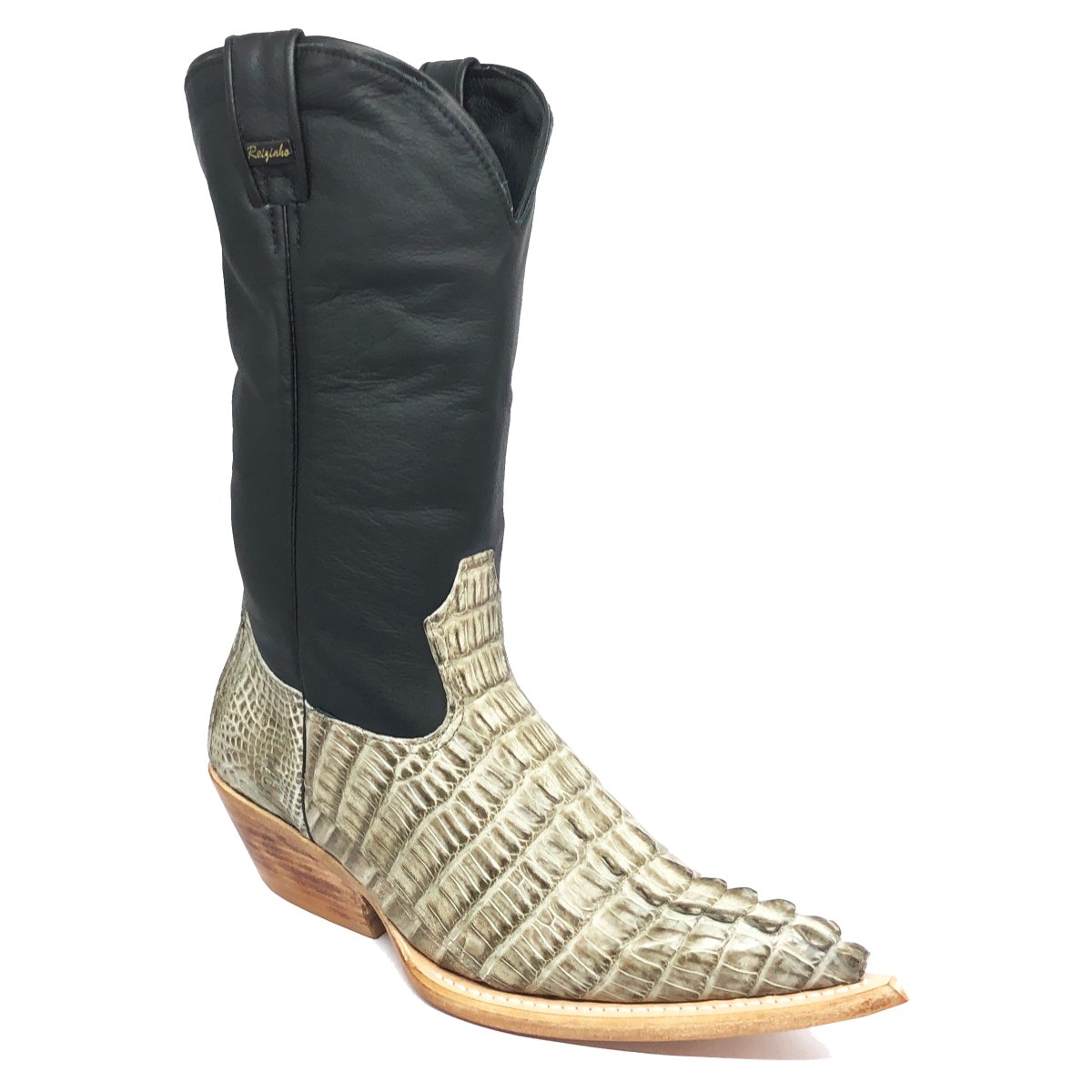 Bota Texana Reizinho Premium de Couro Legítimo de Jacaré Ice Storm Rabo LIMITED EDITION - Cano Alto, Bico Quadrado - Solado de Couro Artesanal | Reizinho Botas