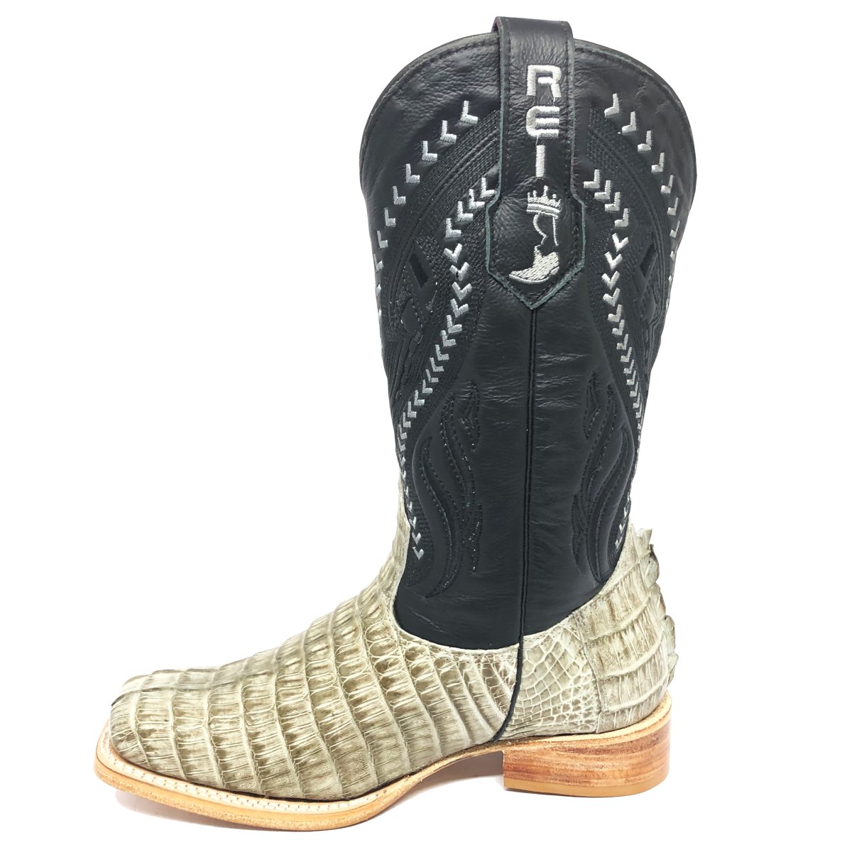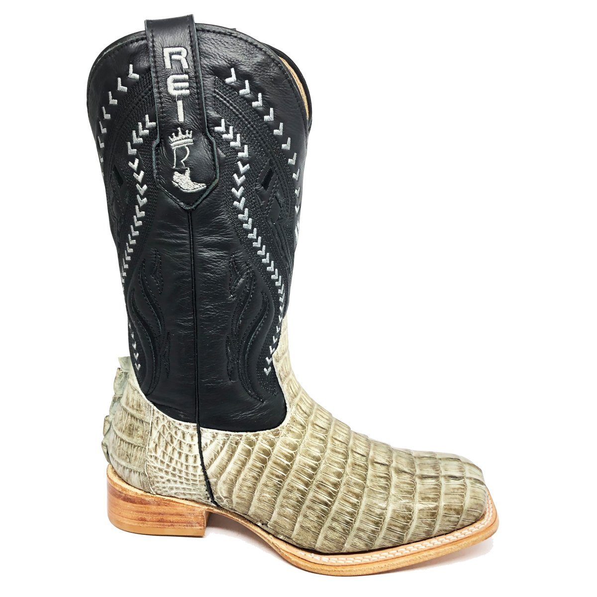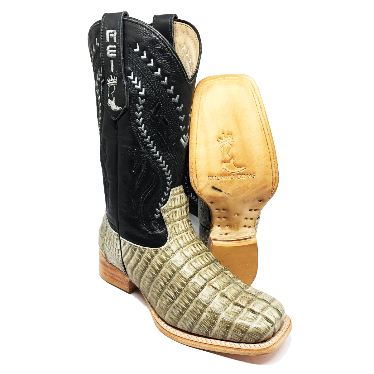 Bota Texana Reizinho Premium de Couro Legítimo de Jacaré Ice Storm Rabo LIMITED EDITION - Cano Alto, Bico Quadrado - Solado de Couro Artesanal | Reizinho Botas