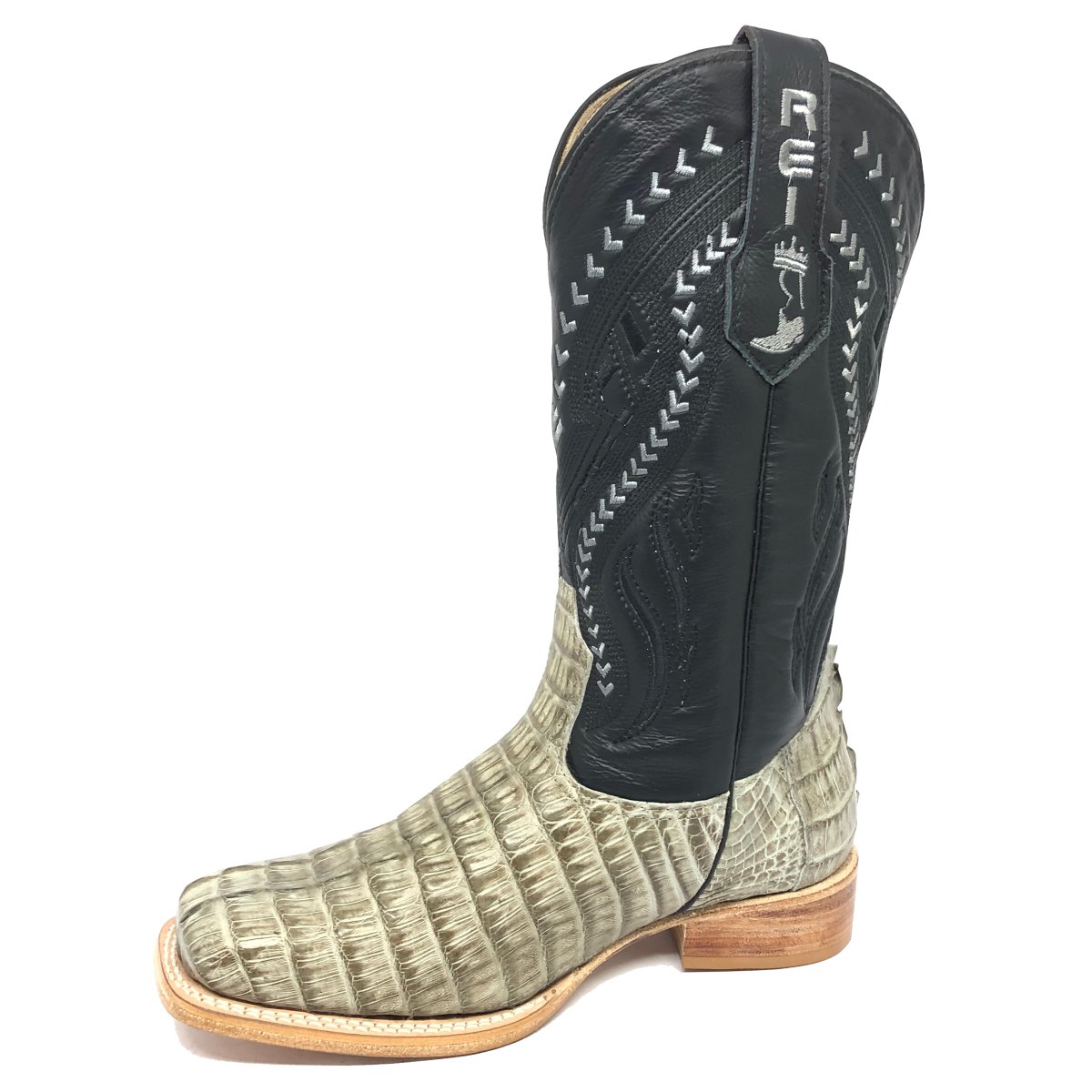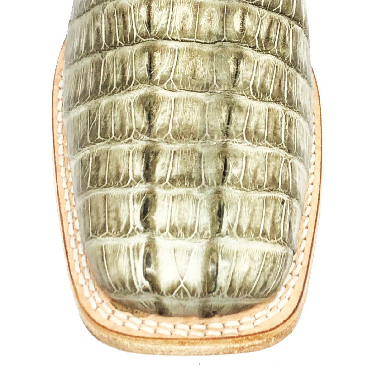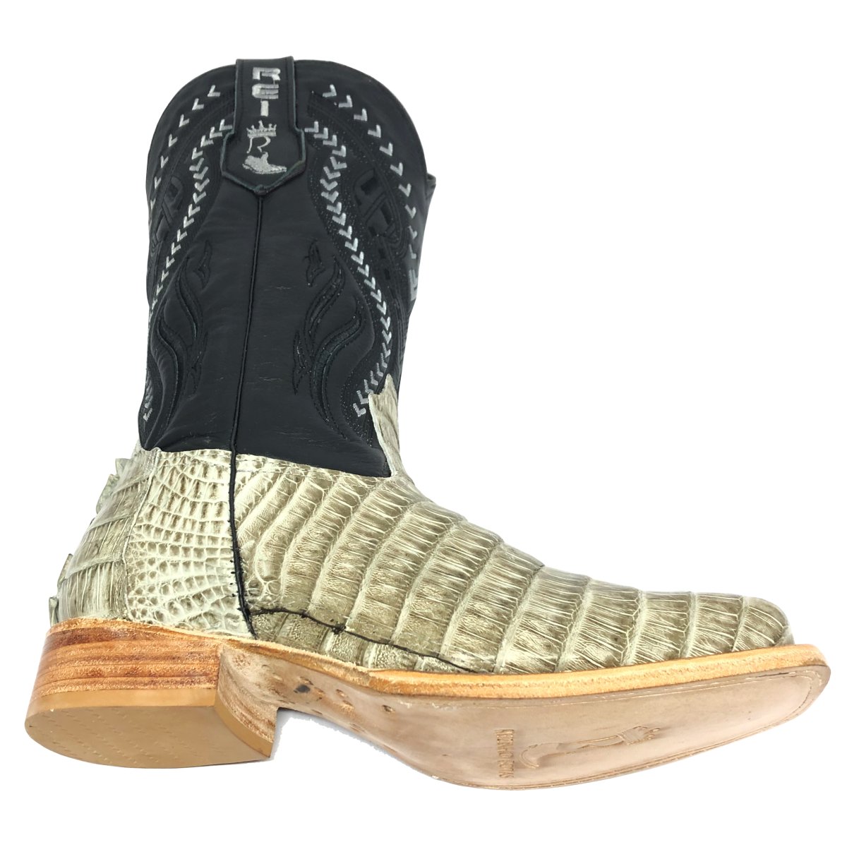 Bota Texana Reizinho Premium de Couro Legítimo de Jacaré Ice Storm Rabo LIMITED EDITION - Cano Alto, Bico Quadrado - Solado de Couro Artesanal | Reizinho Botas
