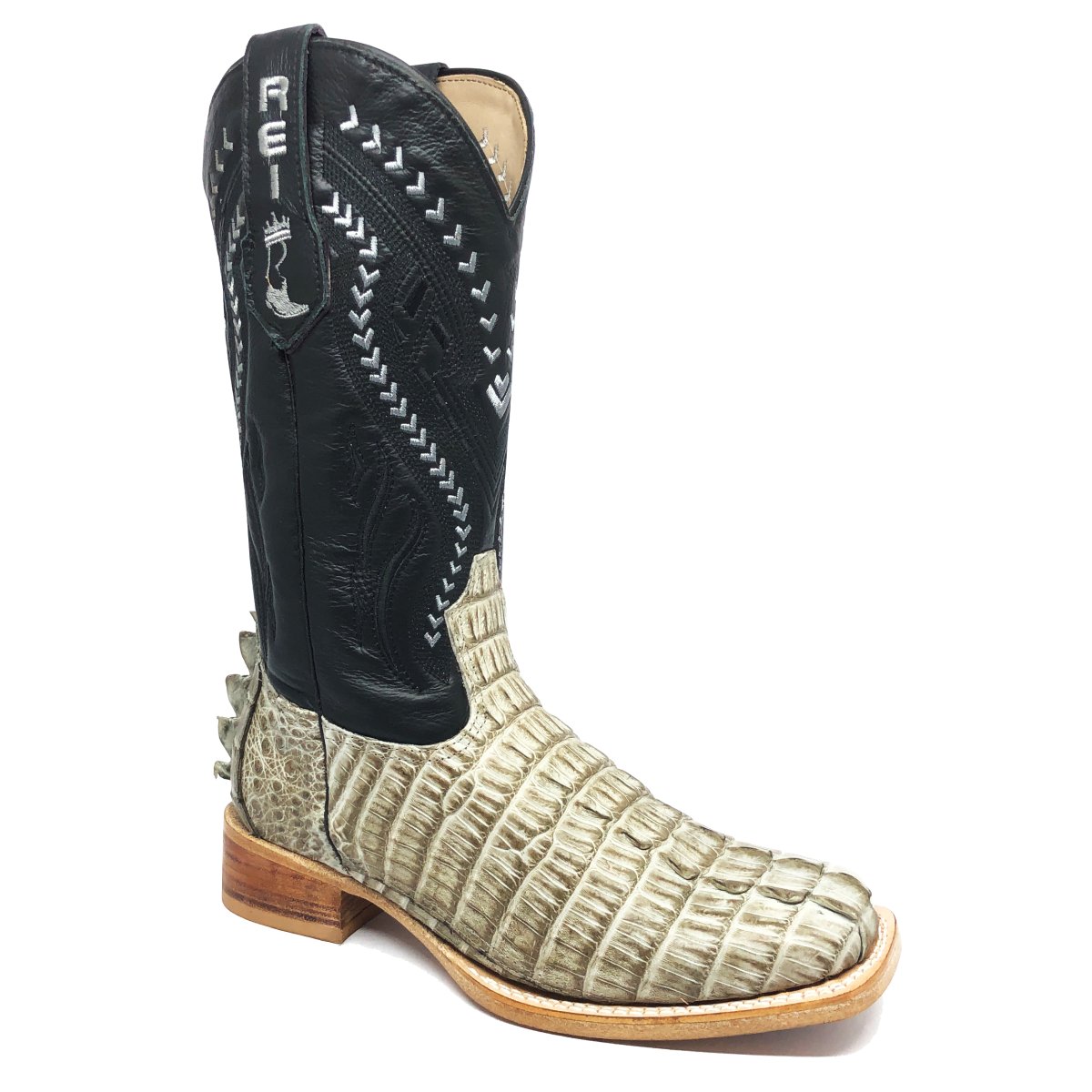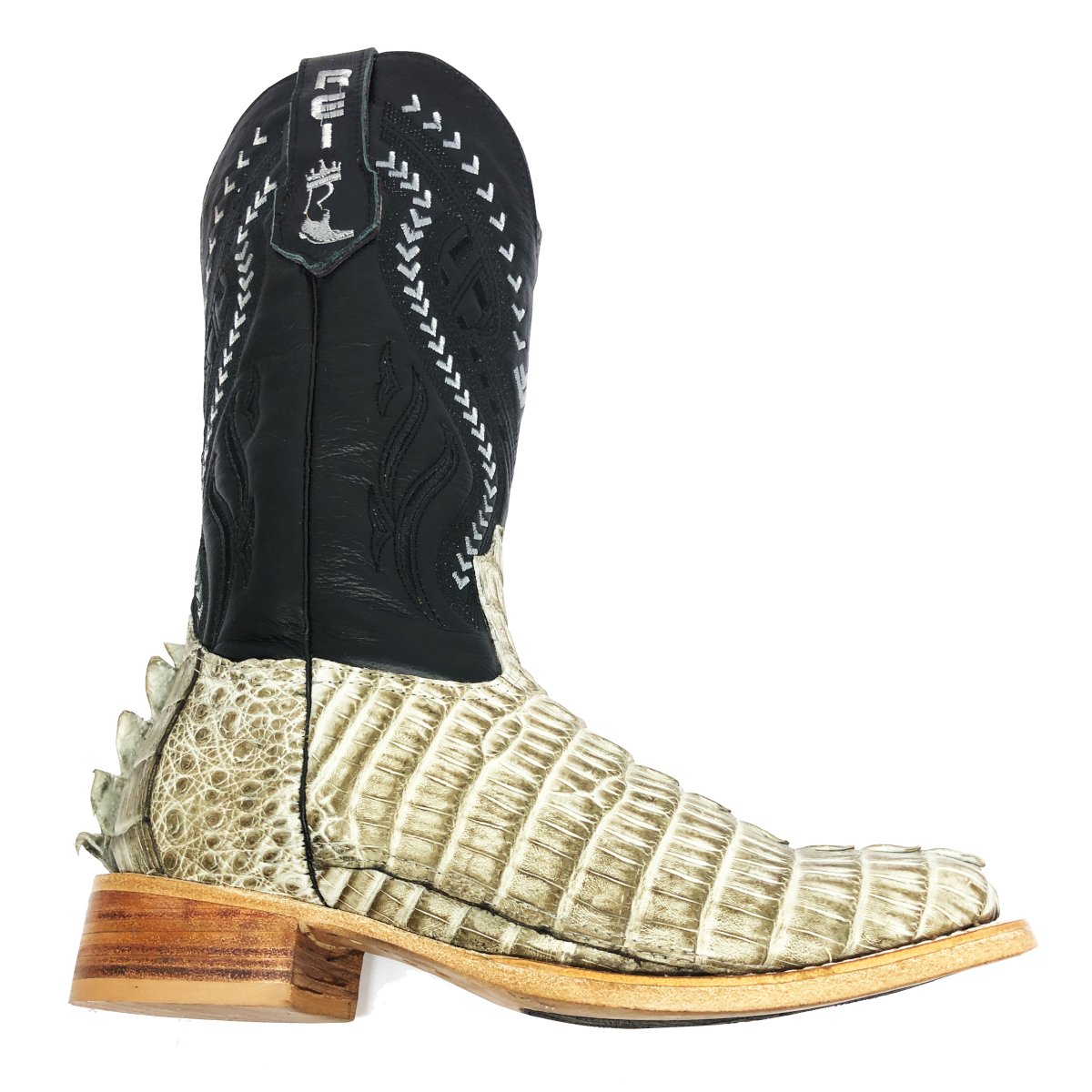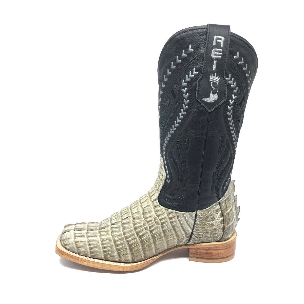 Bota Texana Reizinho Premium de Couro Legítimo de Jacaré Ice Storm Rabo LIMITED EDITION - Cano Alto, Bico Quadrado - Solado X-Flex Artesanal | Reizinho Botas