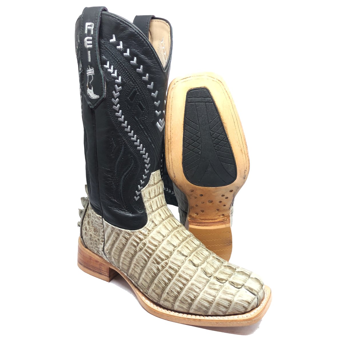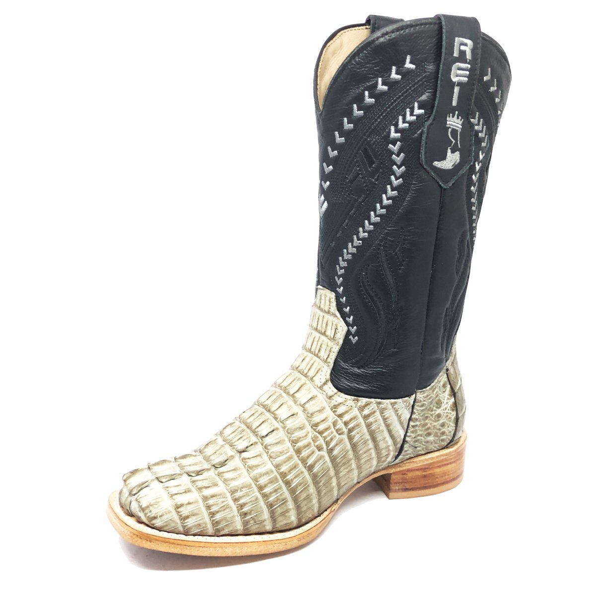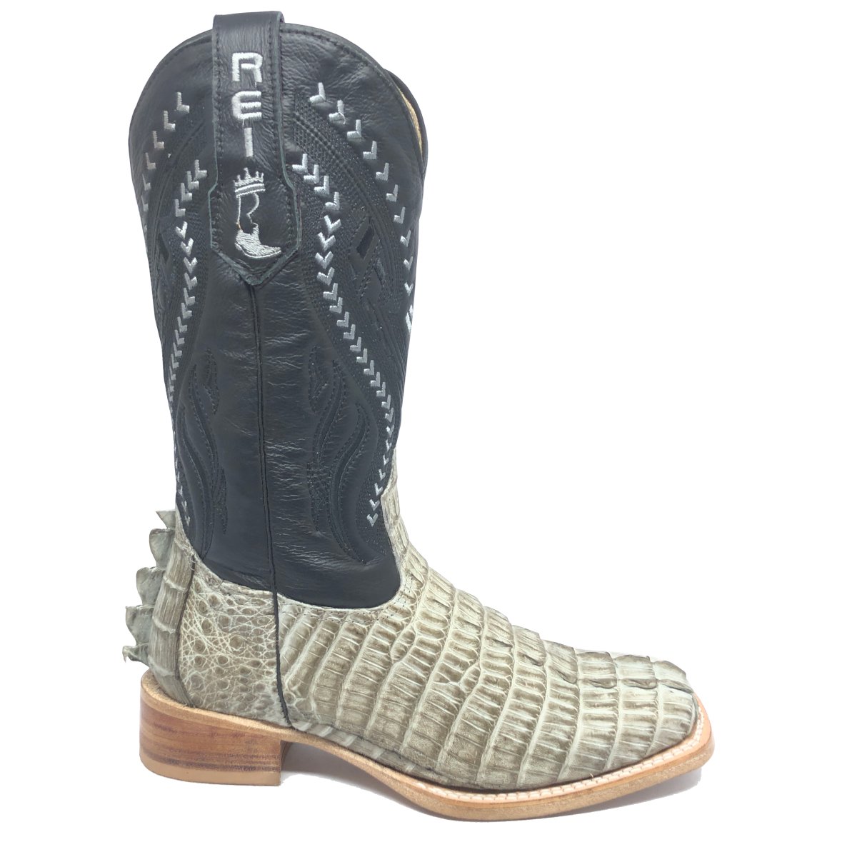 Bota Texana Reizinho Premium de Couro Legítimo de Jacaré Ice Storm Rabo LIMITED EDITION - Cano Alto, Bico Quadrado - Solado X-Flex Artesanal | Reizinho Botas