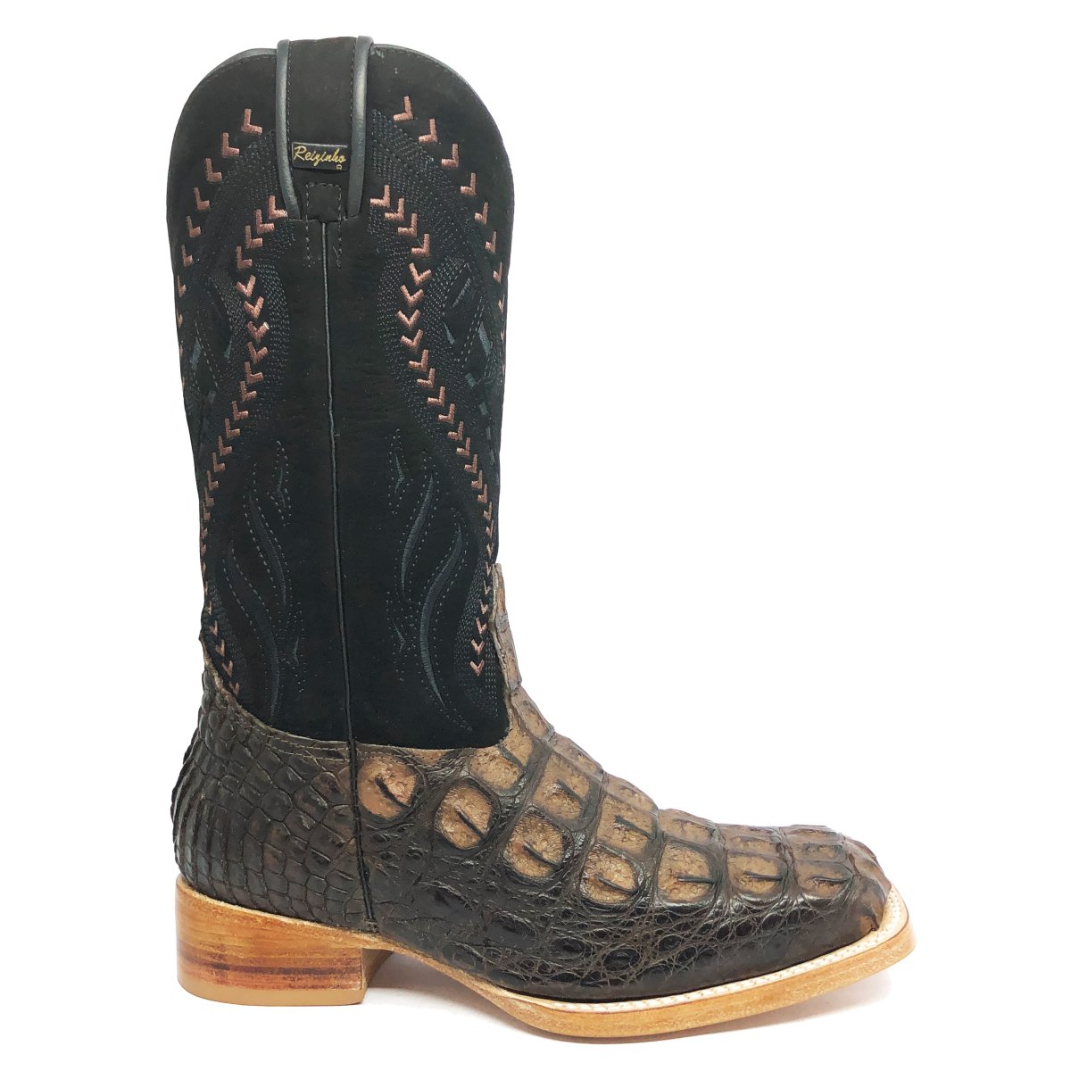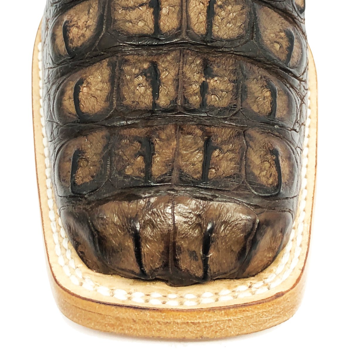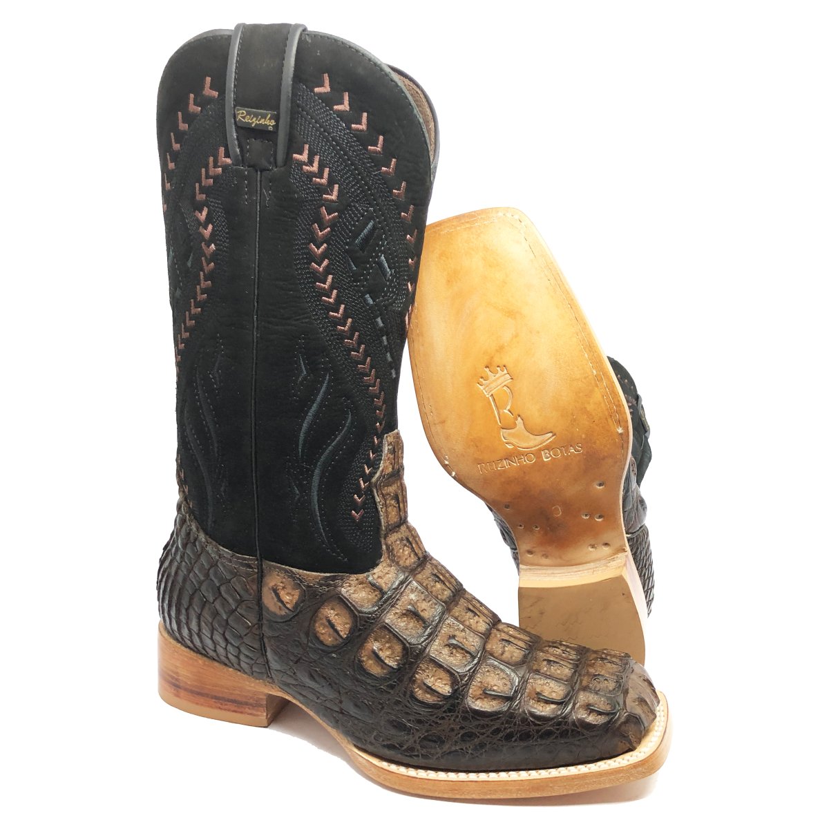 Bota Texana Reizinho Premium de Couro Legítimo de Jacaré Marrom LIMITED EDITION - Cano Alto, Bico Quadrado - Solado de Couro Artesanal