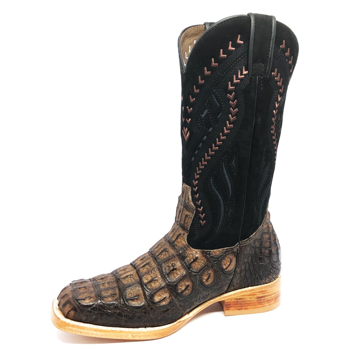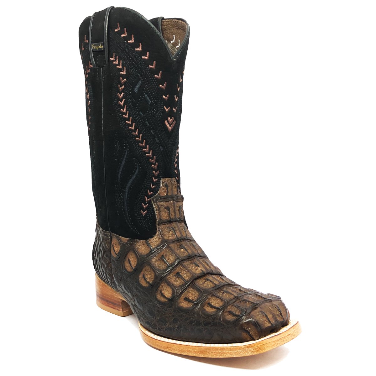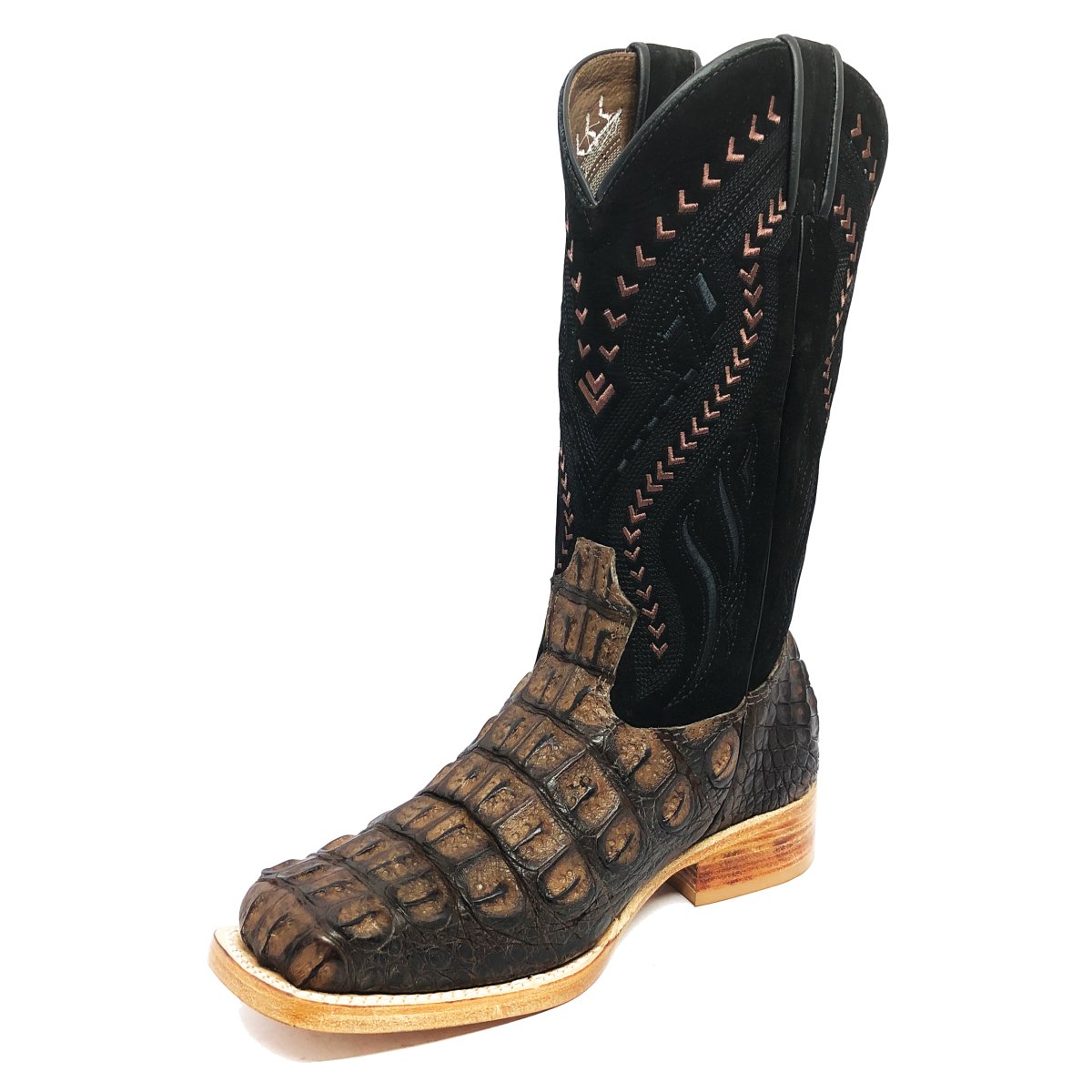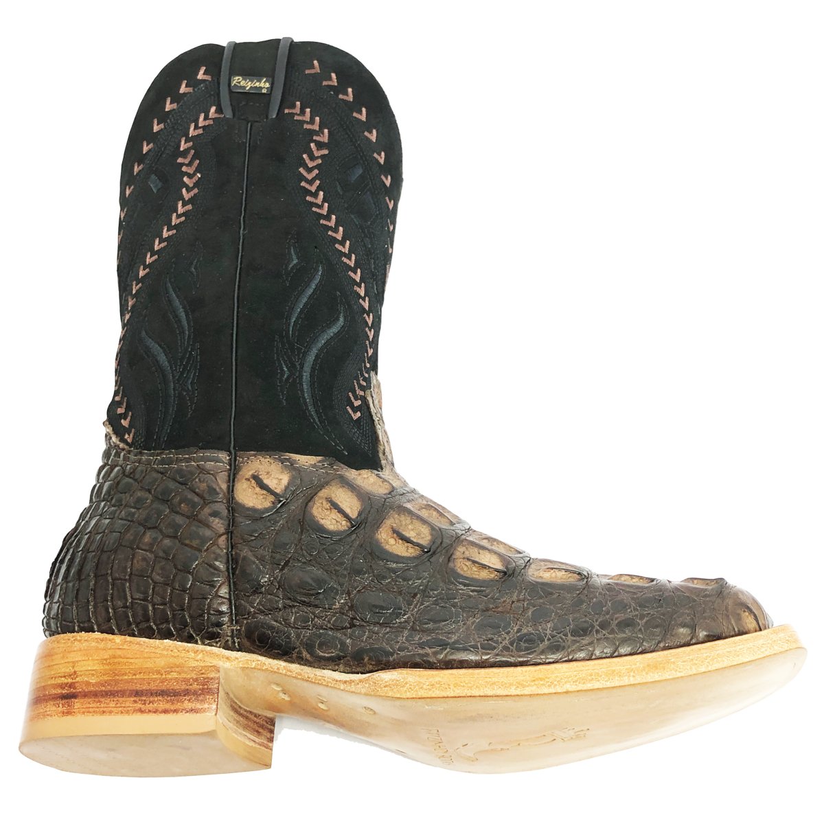 Bota Texana Reizinho Premium de Couro Legítimo de Jacaré Marrom LIMITED EDITION - Cano Alto, Bico Quadrado - Solado de Couro Artesanal