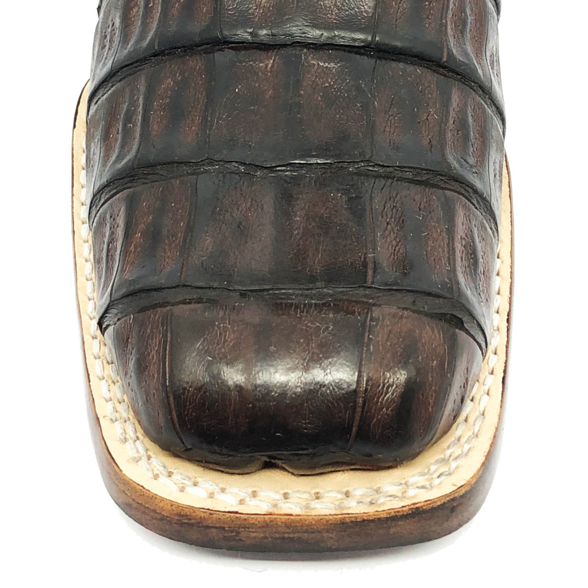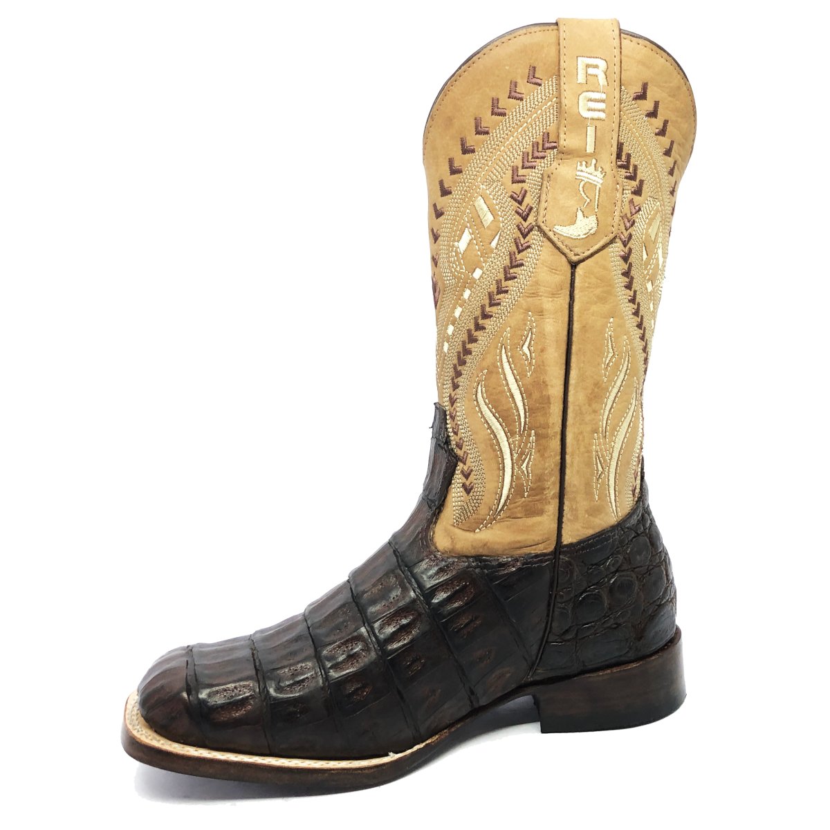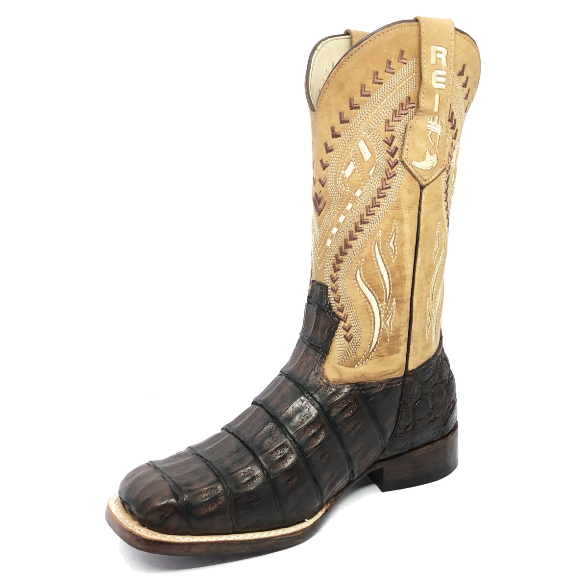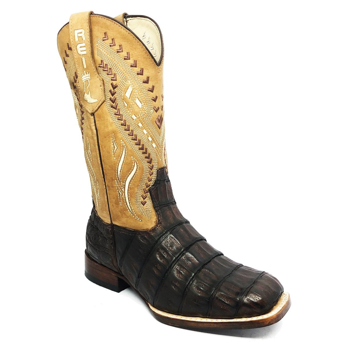 Bota Texana Reizinho Premium de Couro Legítimo de Jacaré Marrom LIMITED EDITION - Cano Alto, Bico Quadrado - Solado de Couro Artesanal