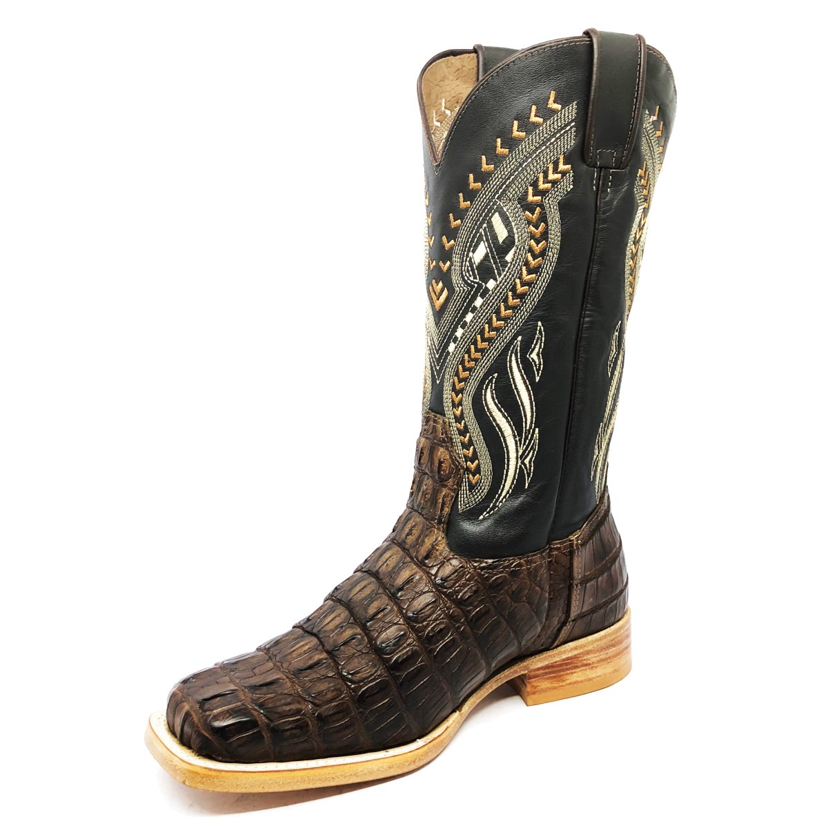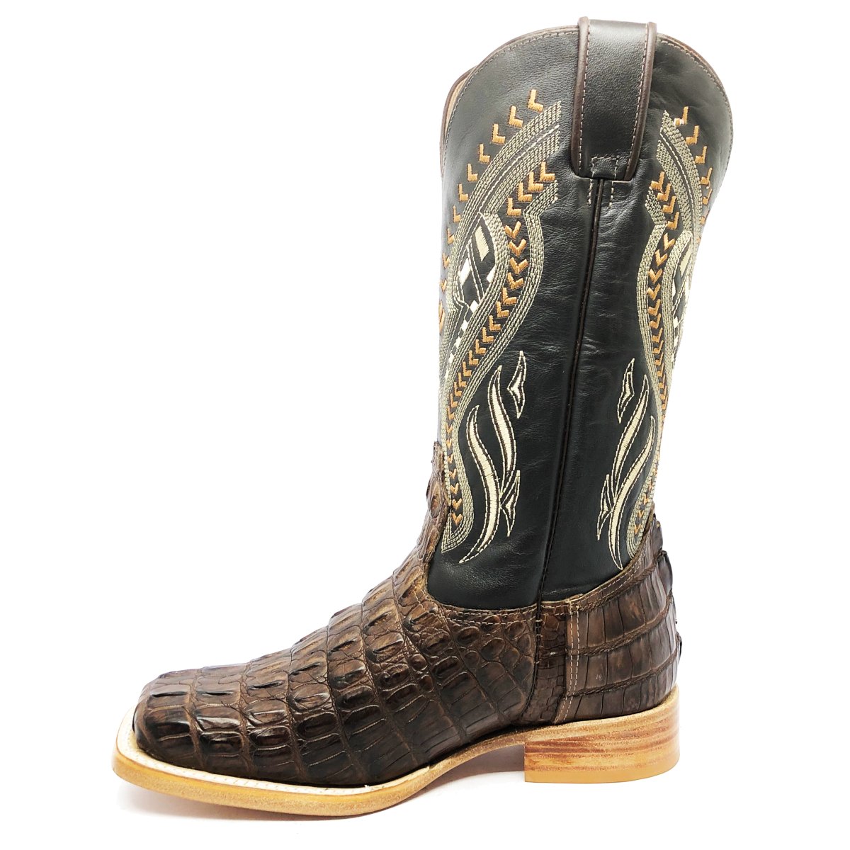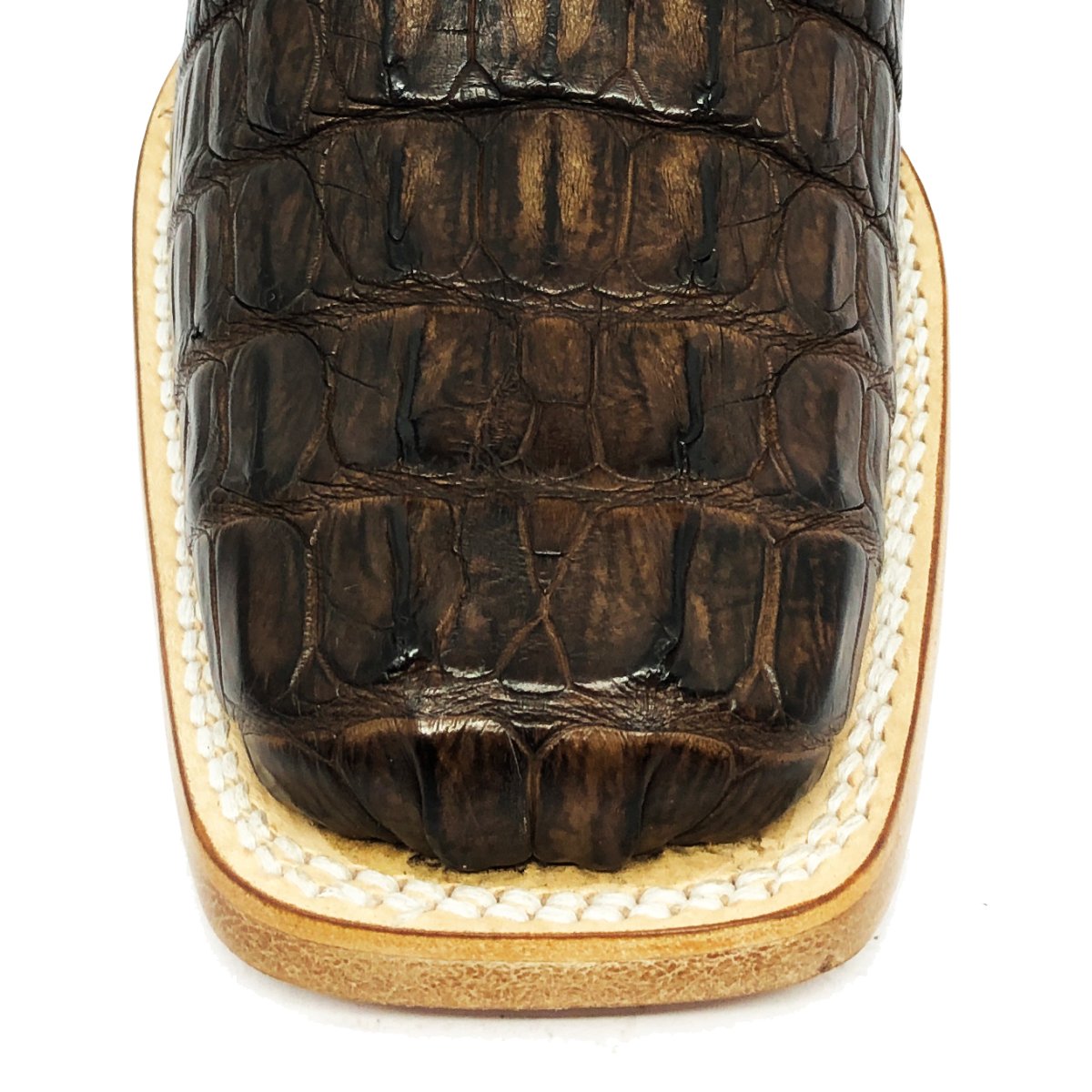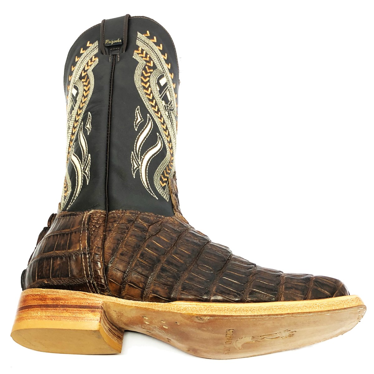 Bota Texana Reizinho Premium de Couro Legítimo de Jacaré Marrom Rabo LIMITED EDITION - Cano Alto, Bico Quadrado - Solado de Couro Artesanal