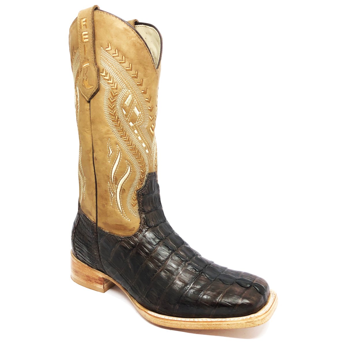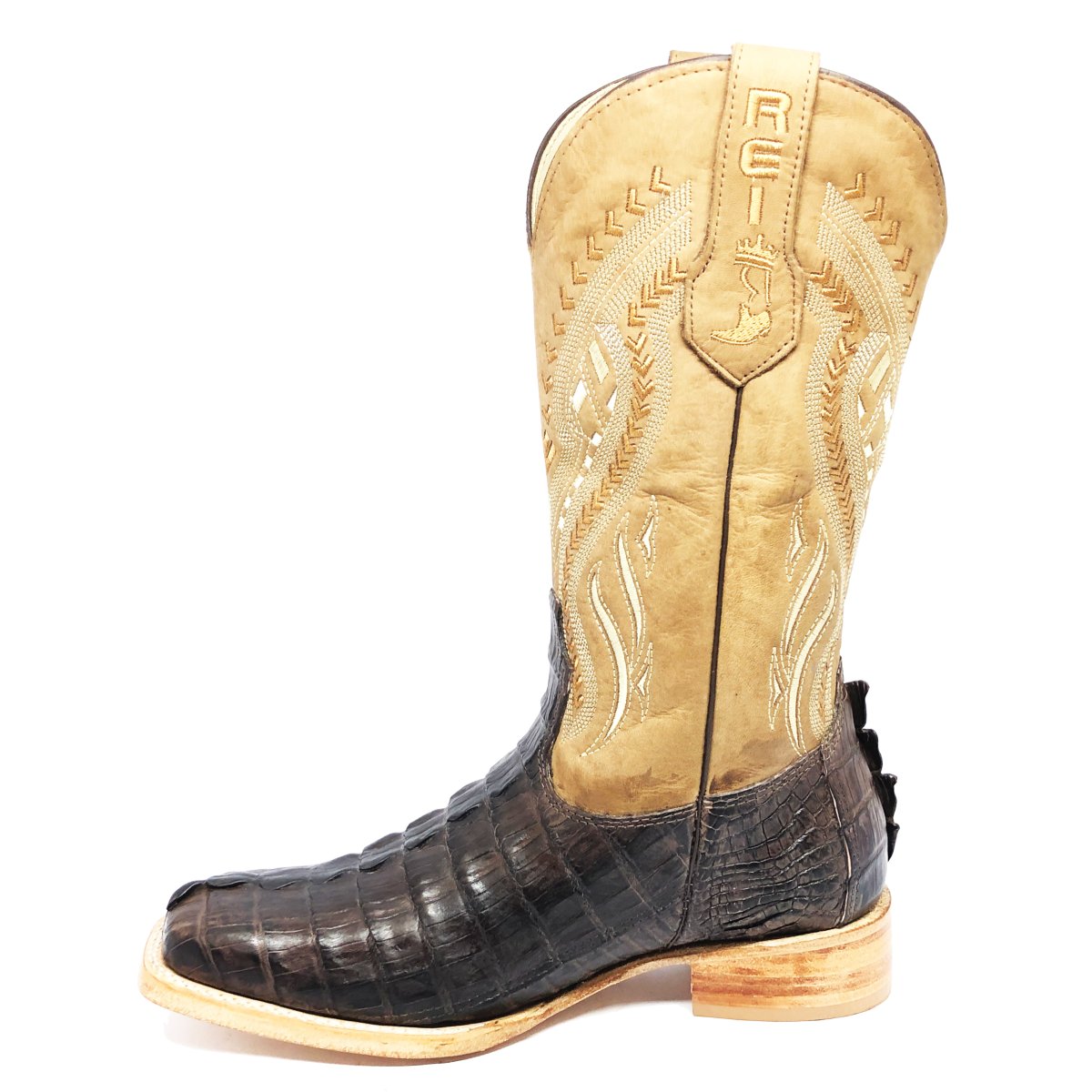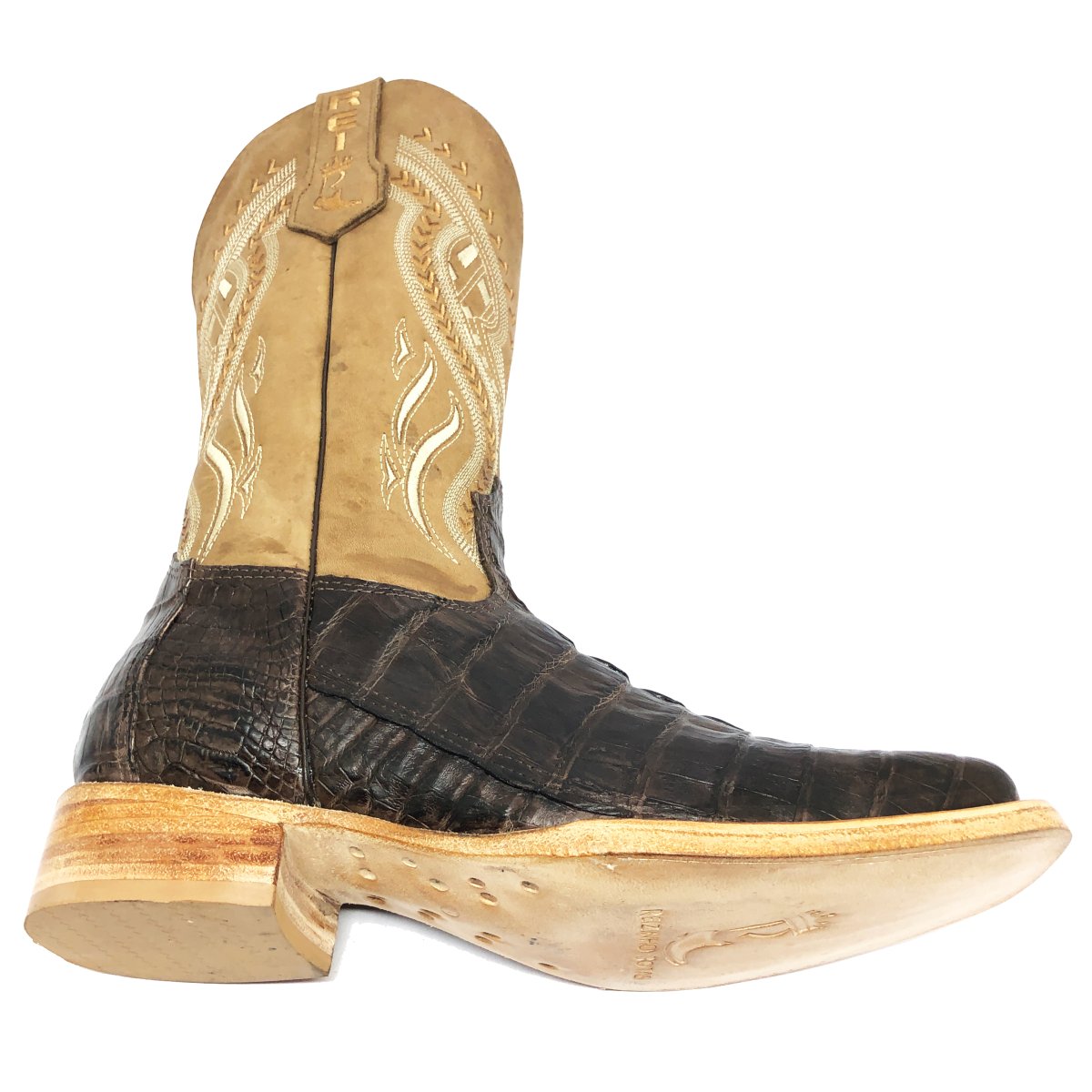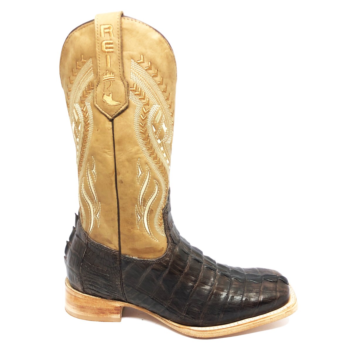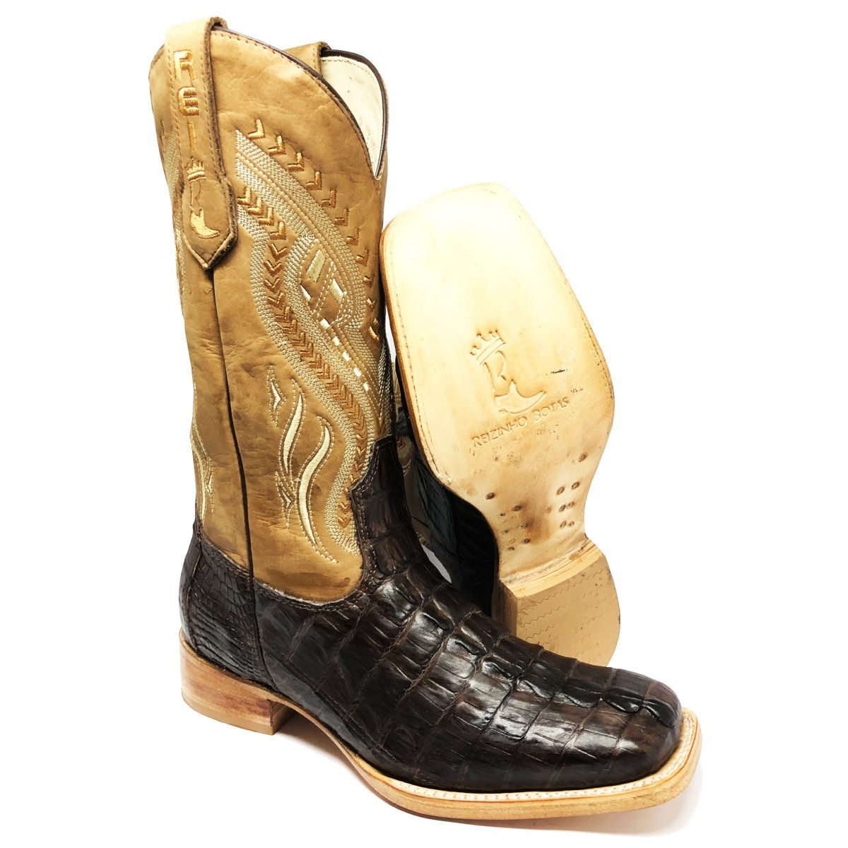Bota Texana Reizinho Premium de Couro Legítimo de Jacaré Marrom Rabo LIMITED EDITION - Cano Alto, Bico Quadrado - Solado de Couro Artesanal