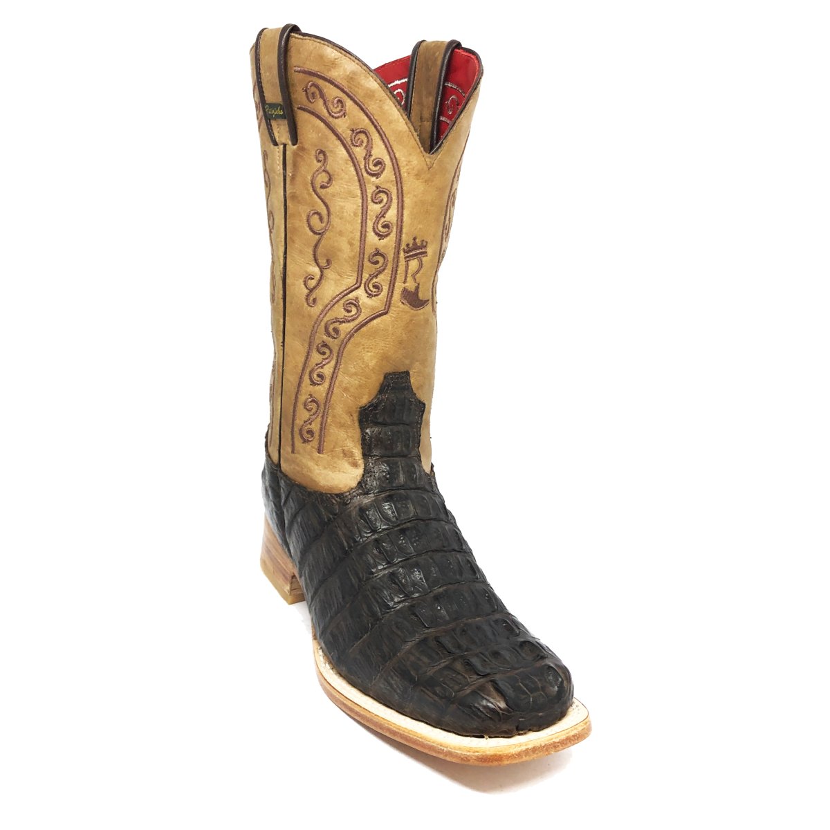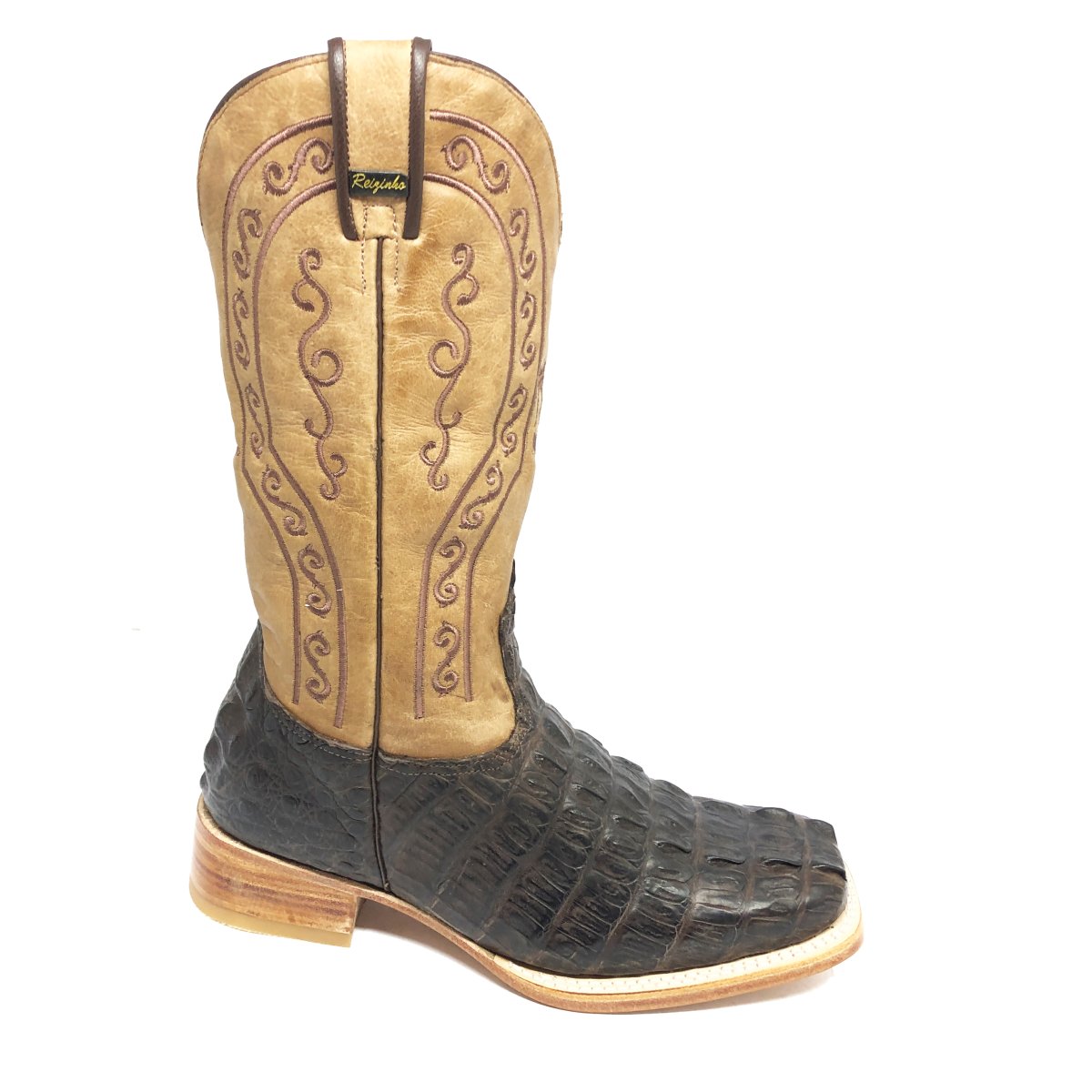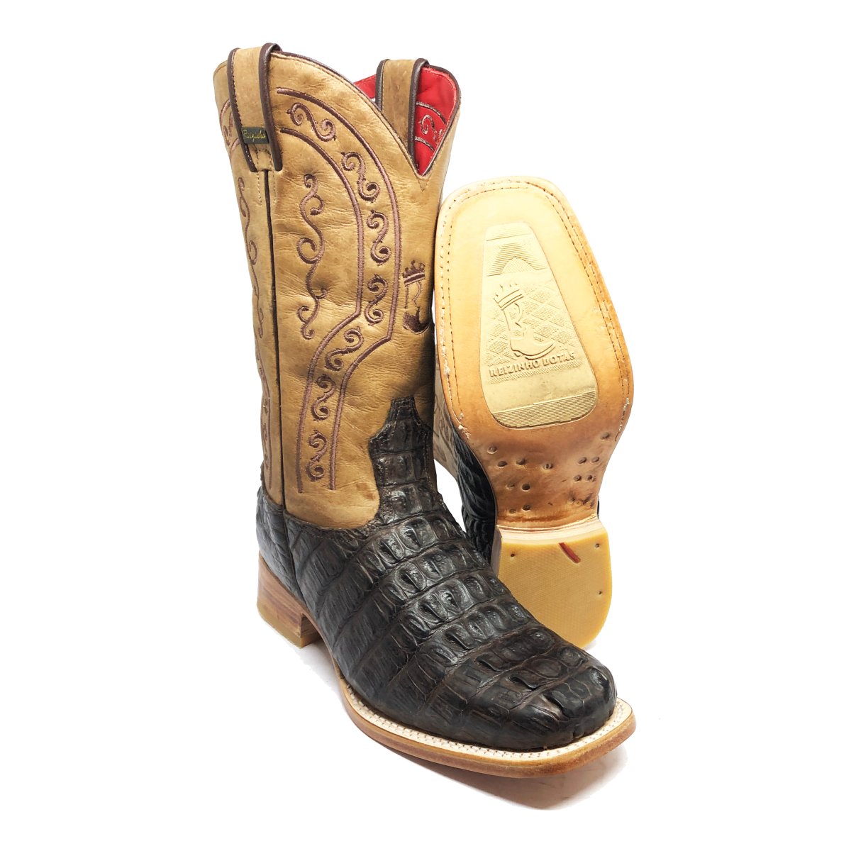 Bota Texana Reizinho Premium de Couro Legítimo de Jacaré Marrom Rabo LIMITED EDITION - Cano Alto, Bico Quadrado - Solado de Couro Artesanal Injetado | Reizinho Botas