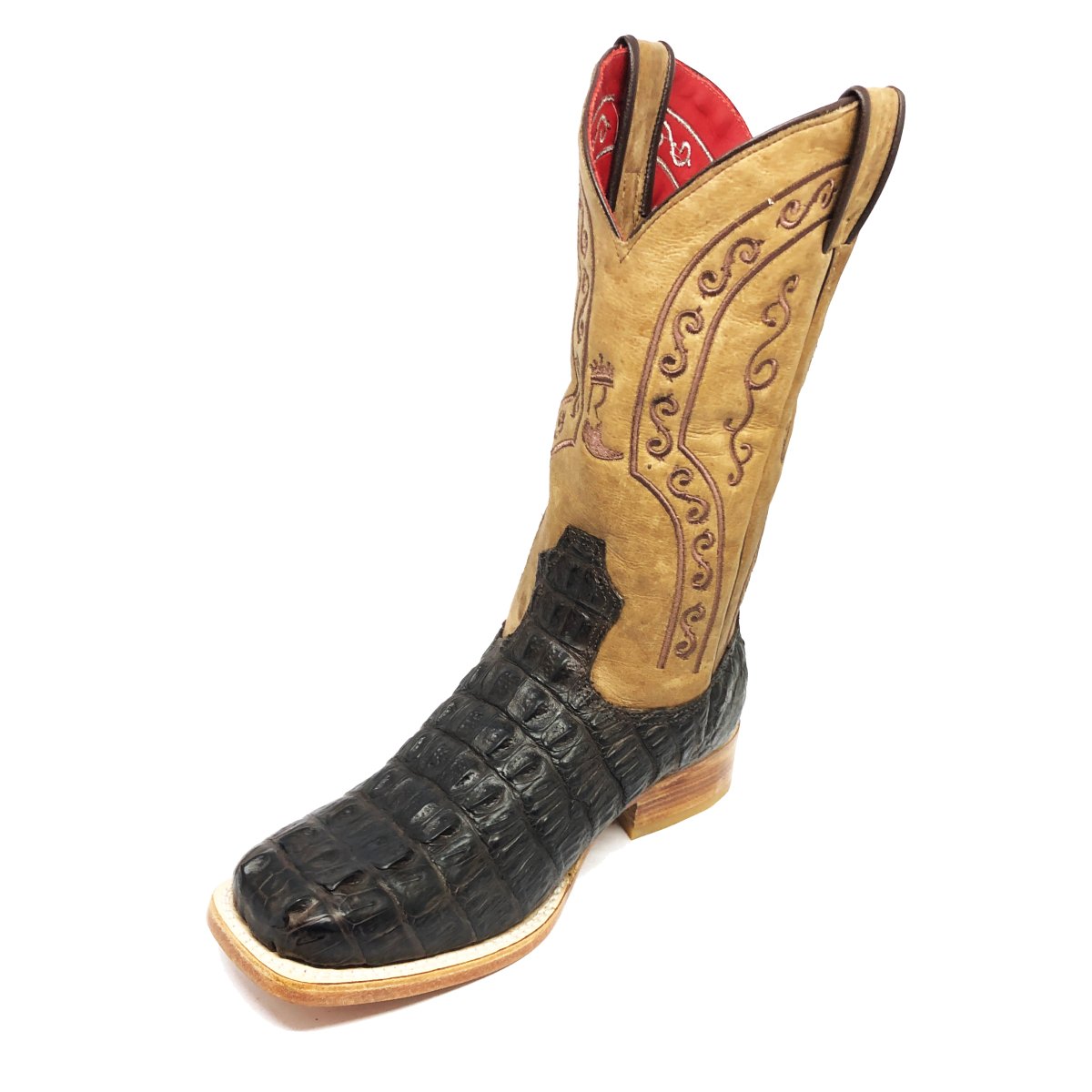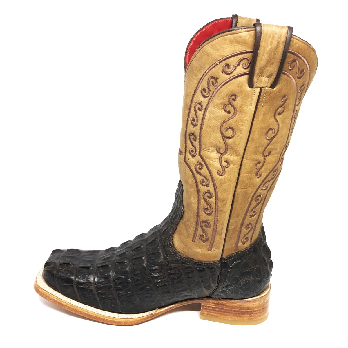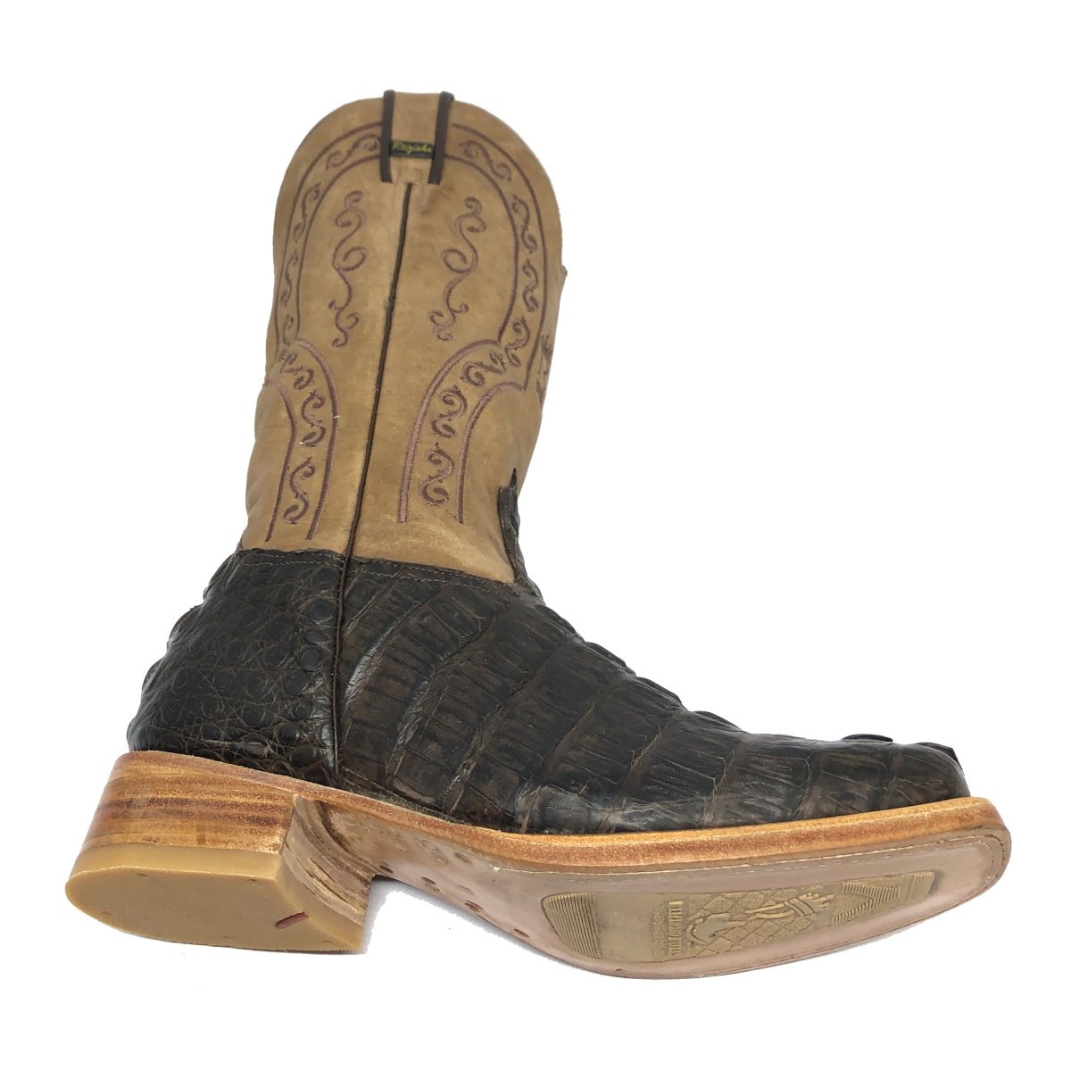 Bota Texana Reizinho Premium de Couro Legítimo de Jacaré Marrom Rabo LIMITED EDITION - Cano Alto, Bico Quadrado - Solado de Couro Artesanal Injetado | Reizinho Botas