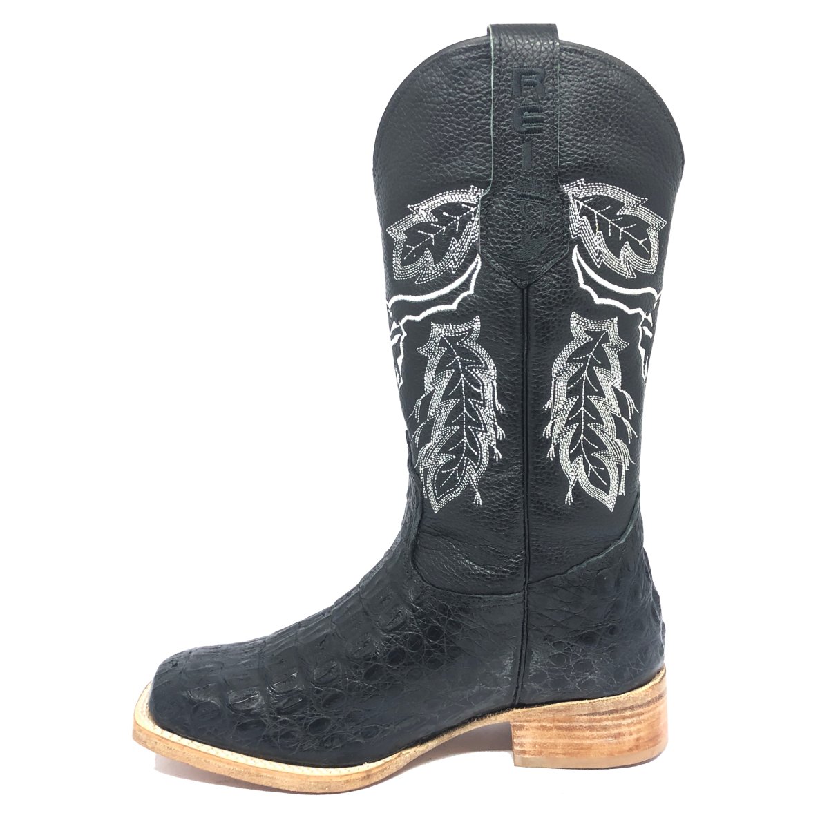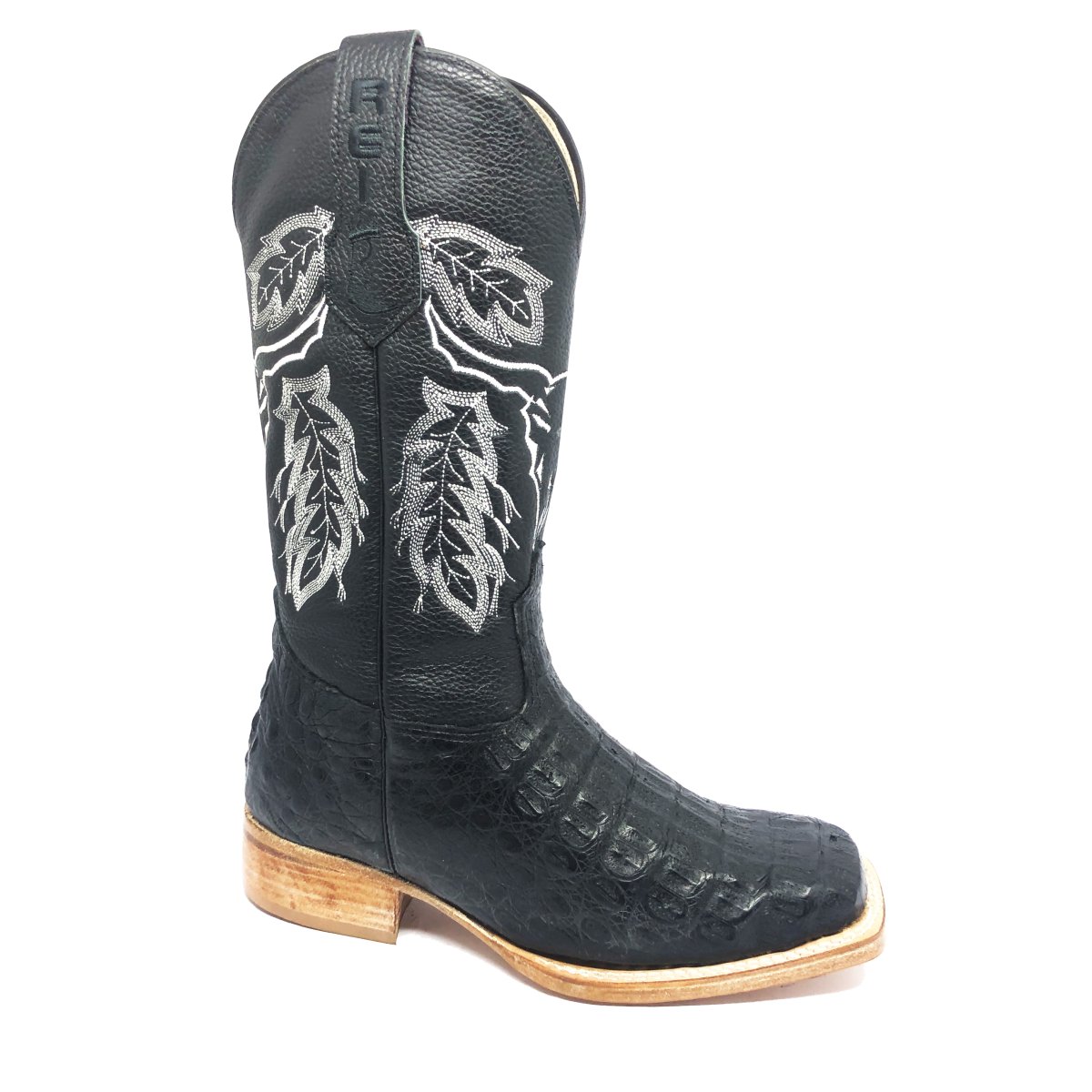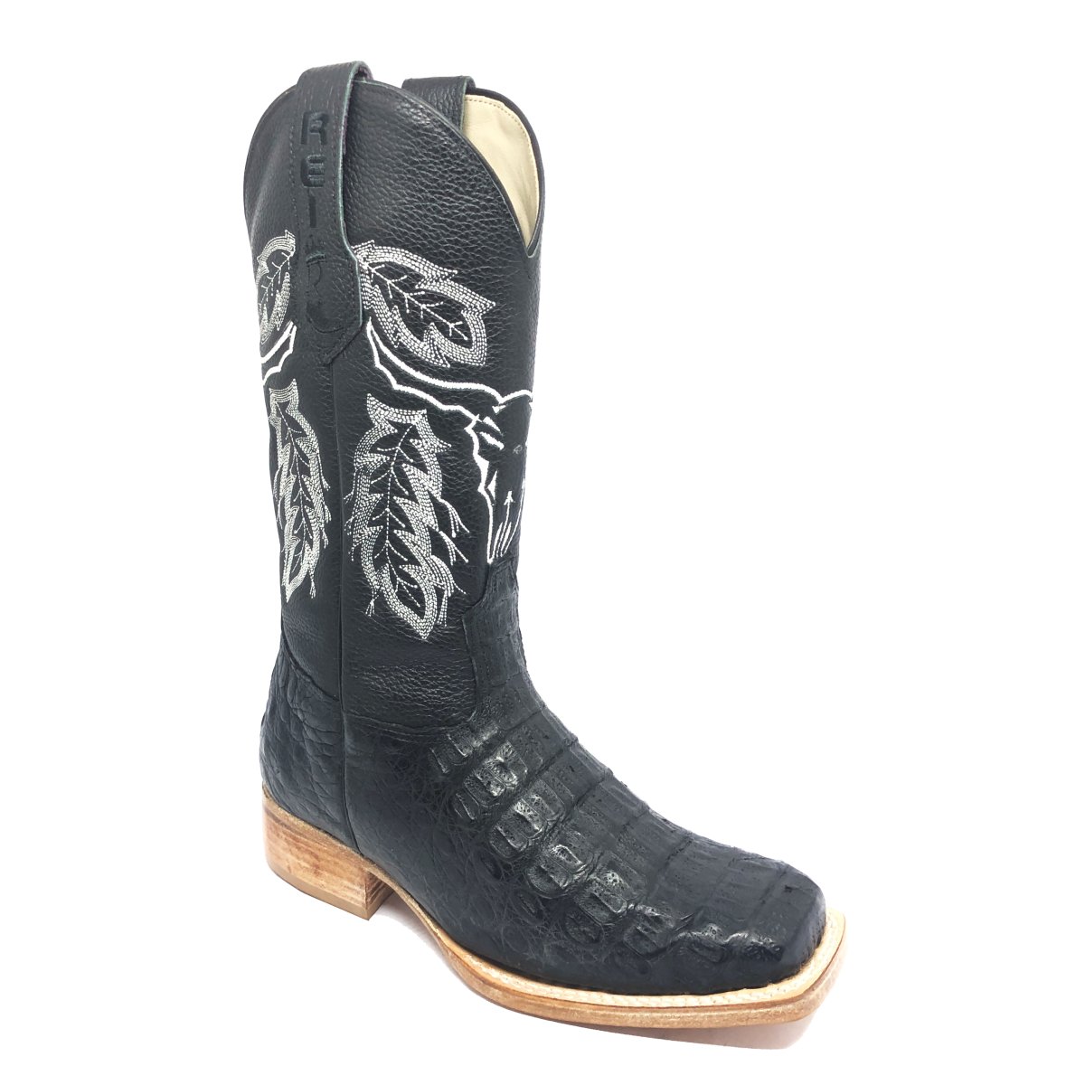 Bota Texana Reizinho Premium de Couro Legítimo de Jacaré Preto - Cano Alto, Bico Quadrado - Solado de Couro Artesanal