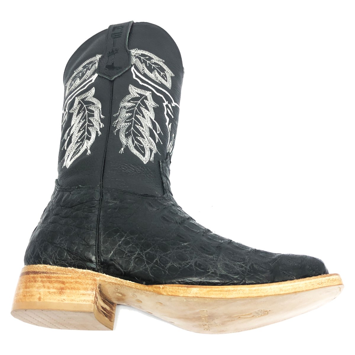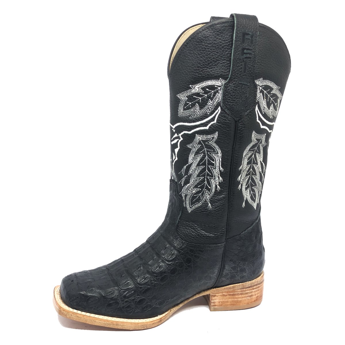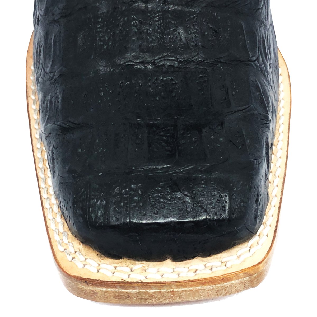Bota Texana Reizinho Premium de Couro Legítimo de Jacaré Preto - Cano Alto, Bico Quadrado - Solado de Couro Artesanal