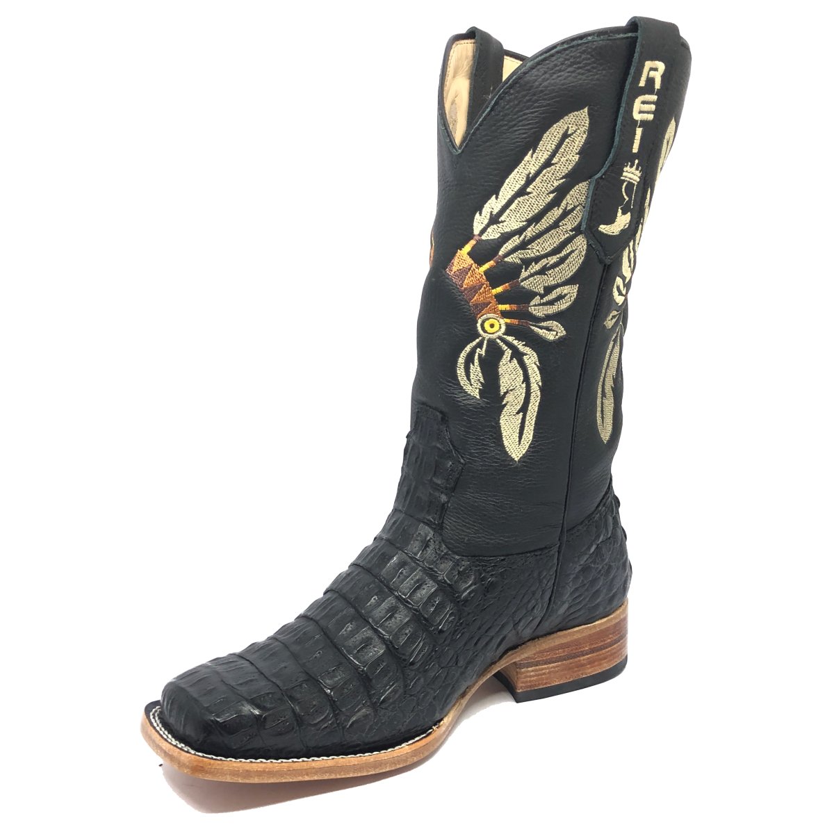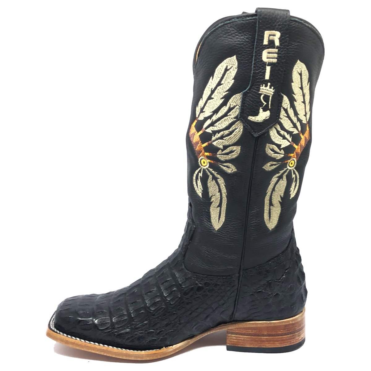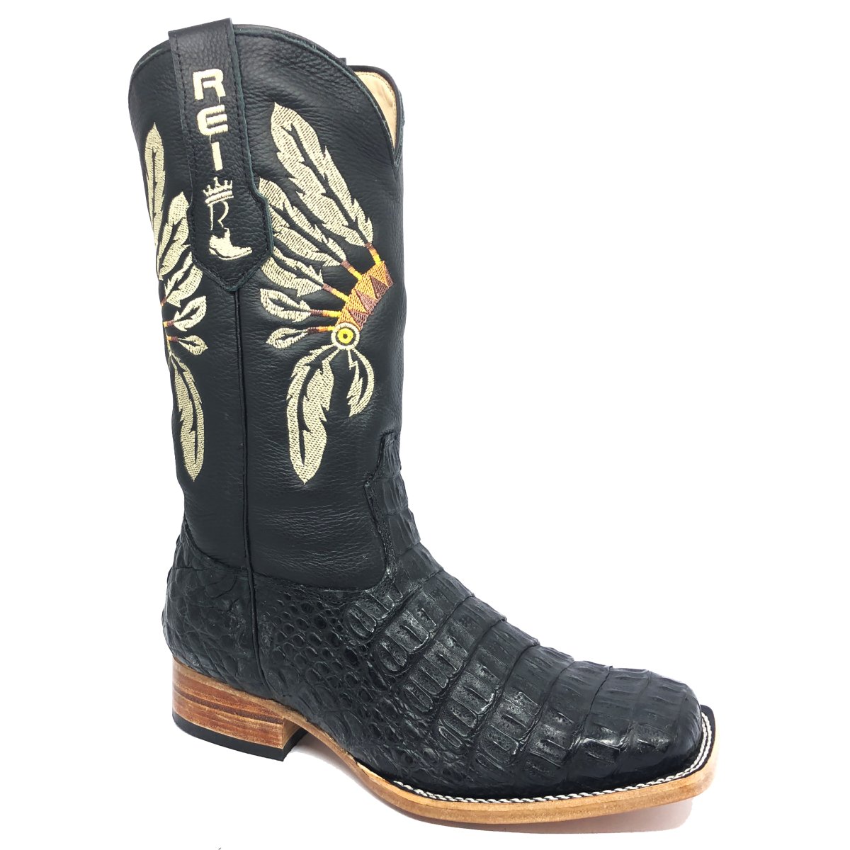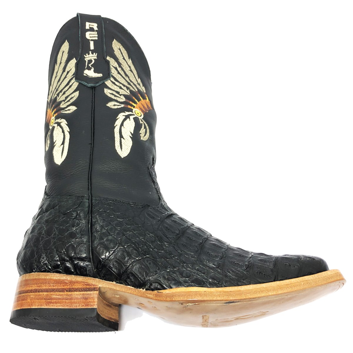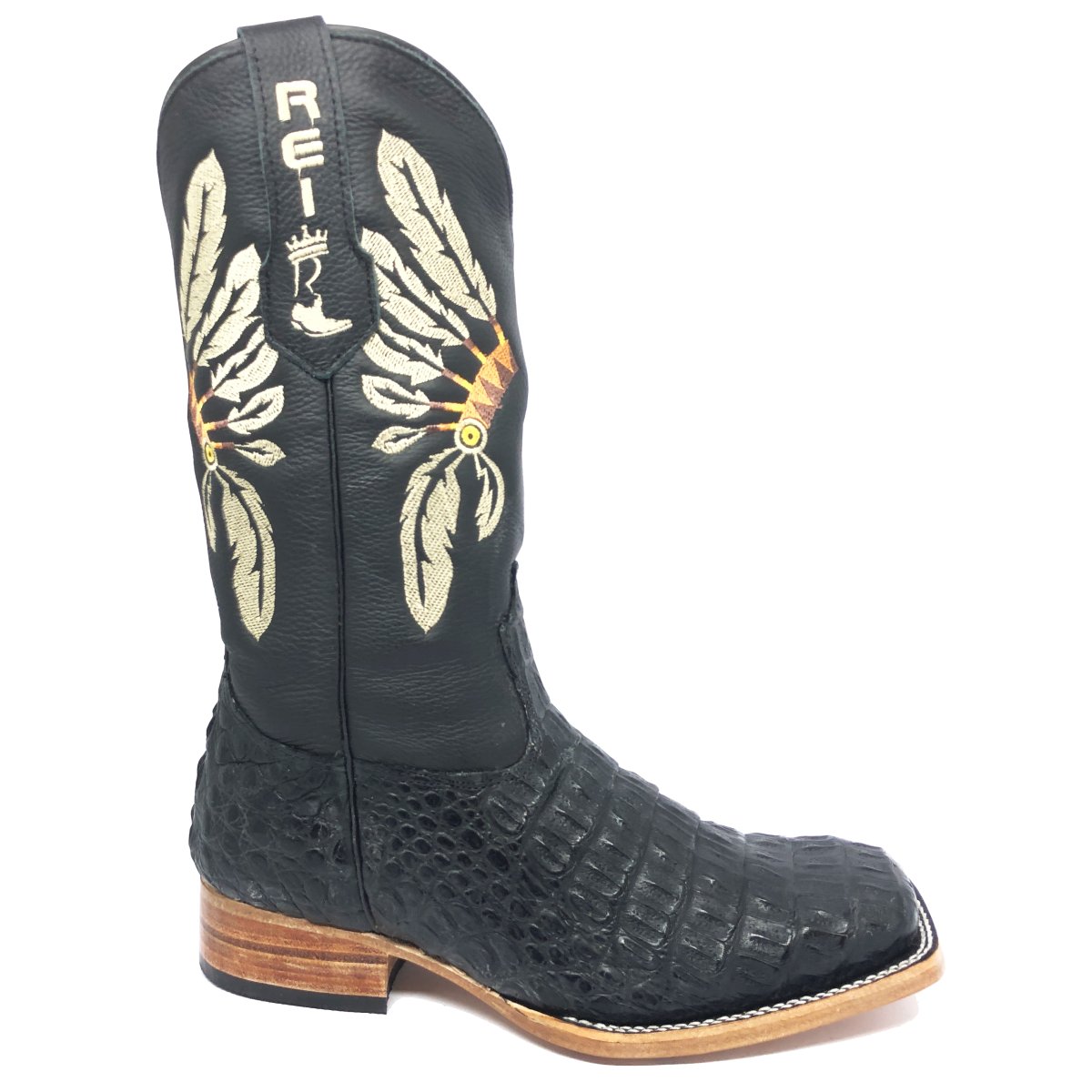 Bota Texana Reizinho Premium de Couro Legítimo de Jacaré Preto LIMITED EDITION - Cano Alto, Bico Quadrado - Solado de Couro Artesanal