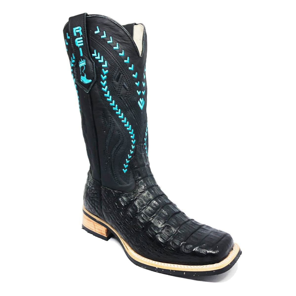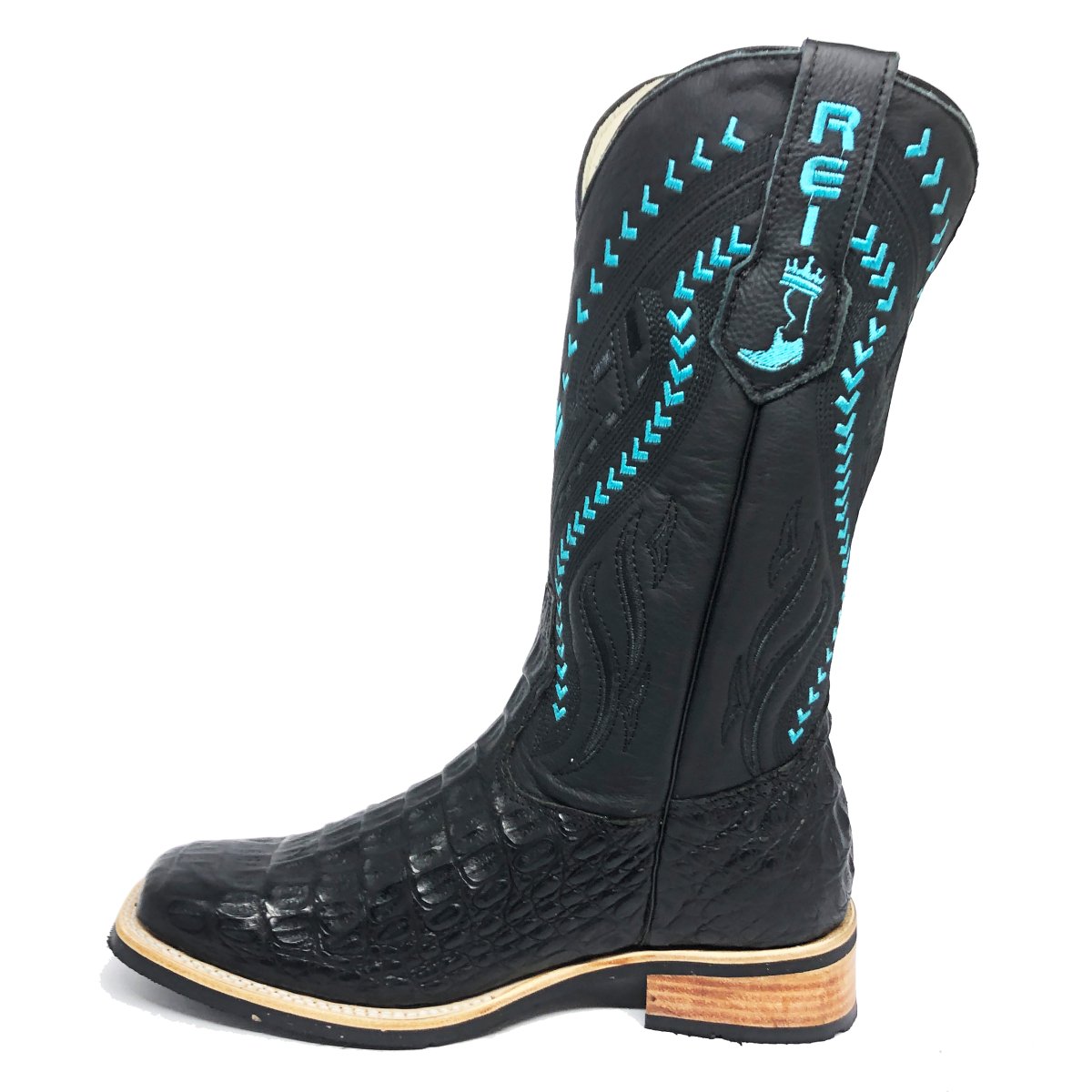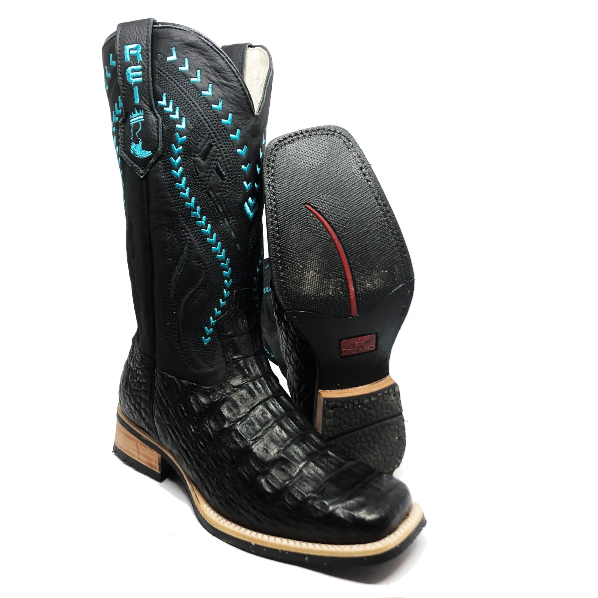 Bota Texana Reizinho Premium de Couro Legítimo de Jacaré Preto LIMITED EDITION - Cano Alto, Bico Quadrado - Solado X-Flex Artesanal | Reizinho Botas