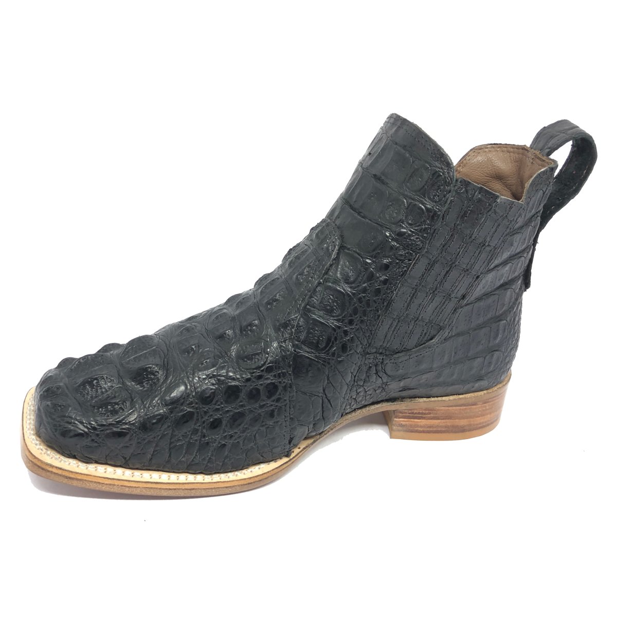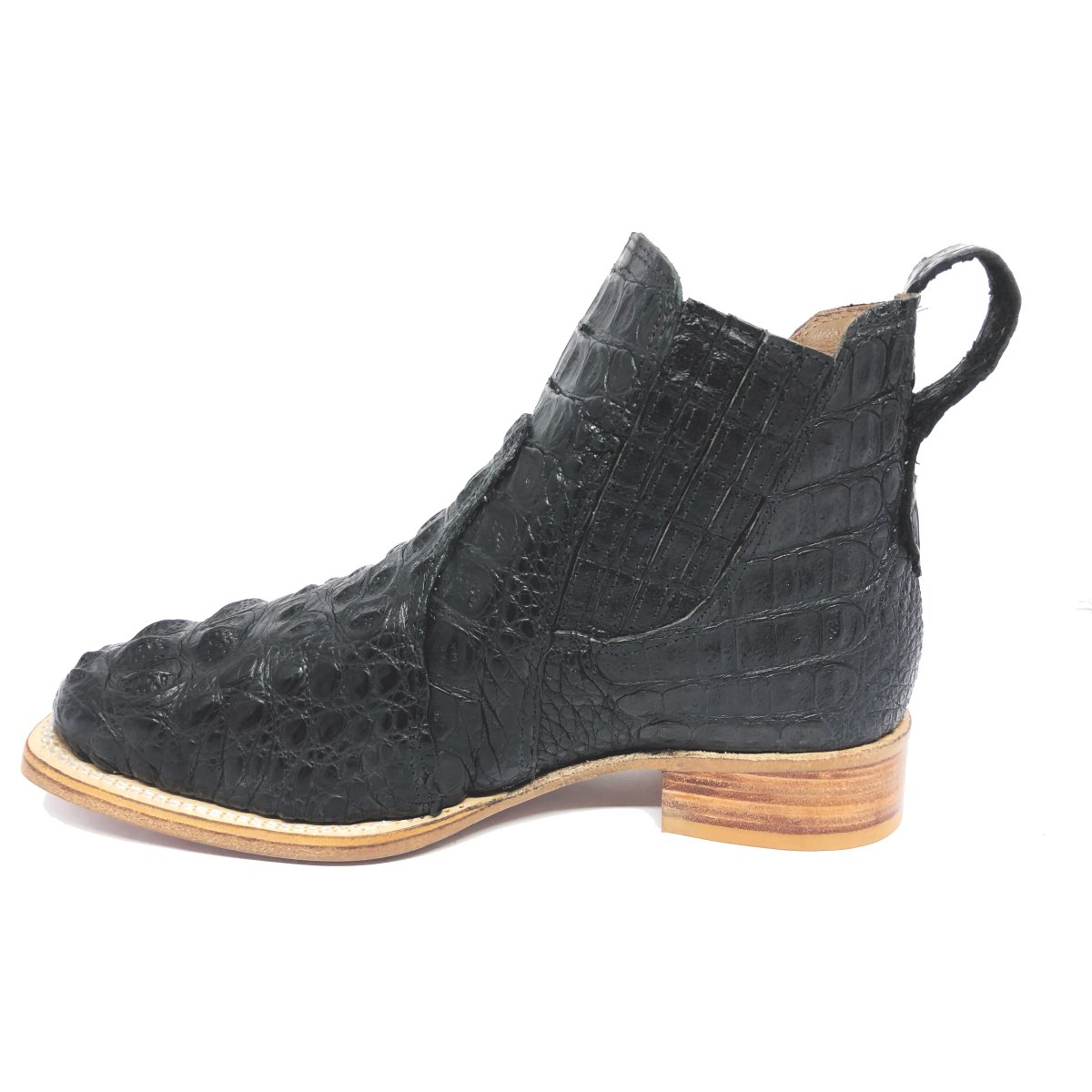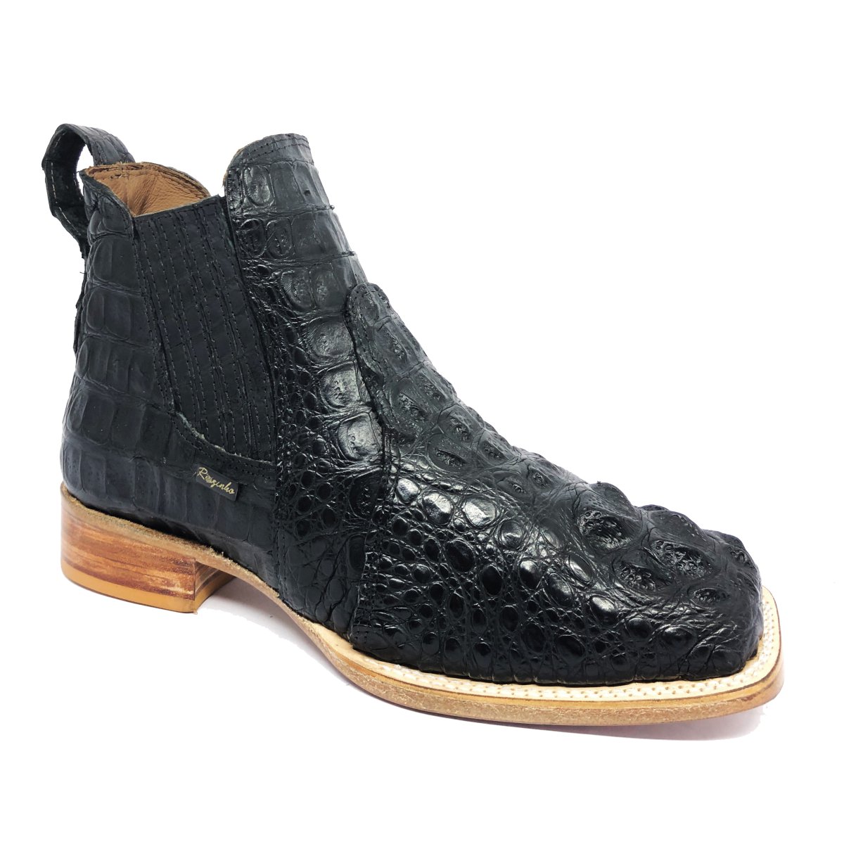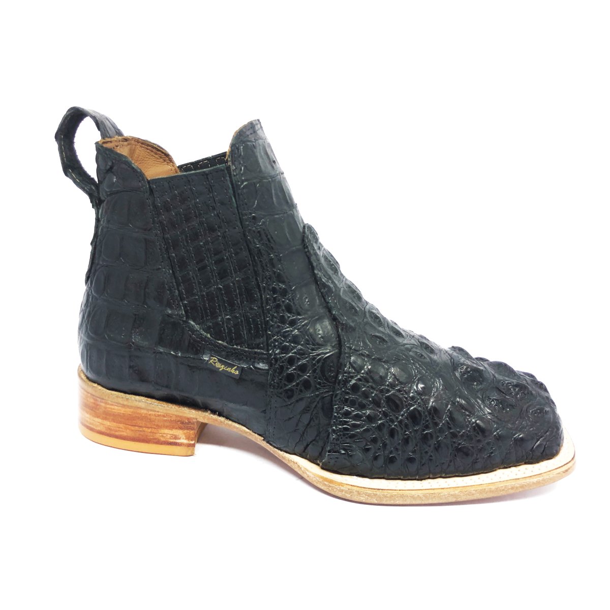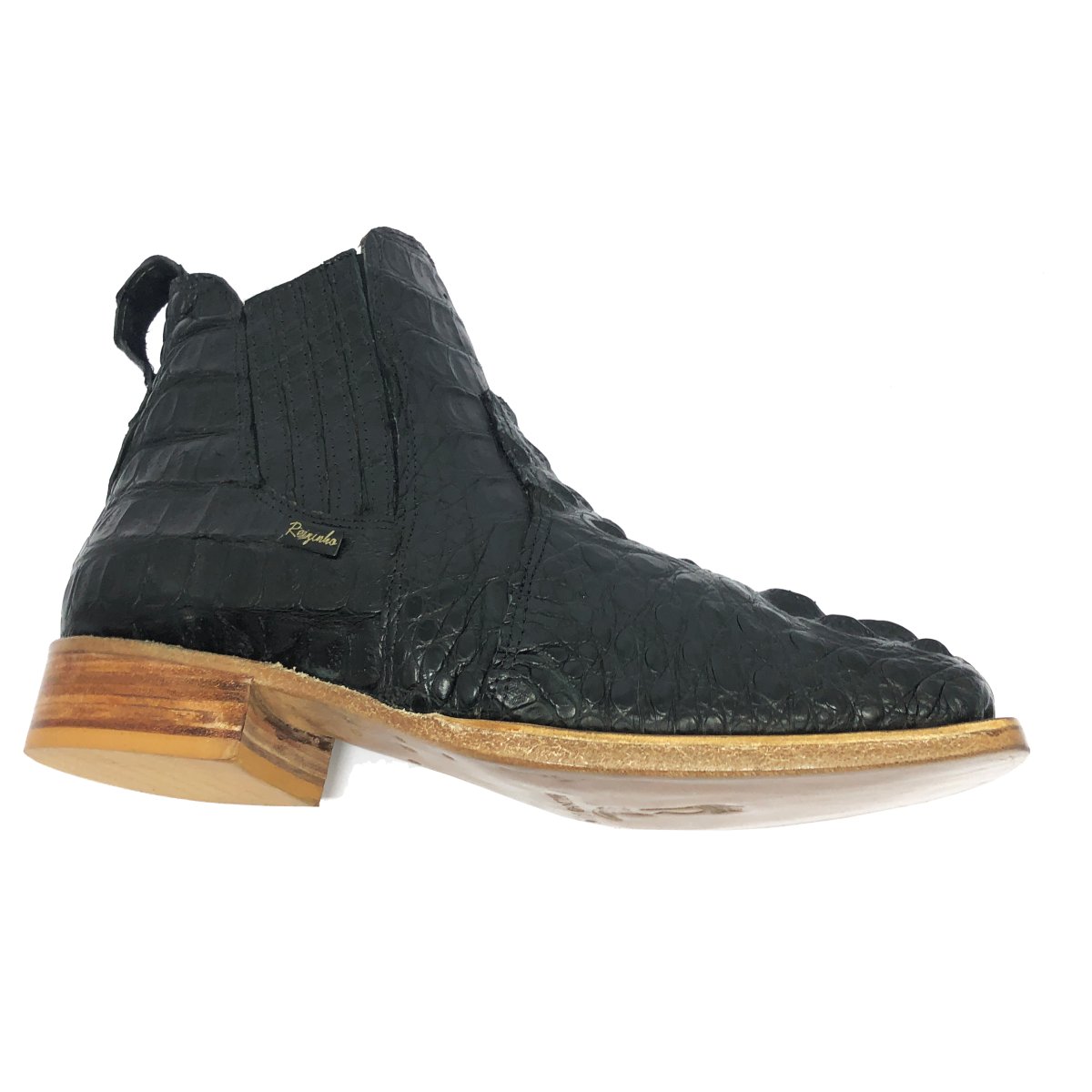 Bota Texana Reizinho Premium de Couro Legítimo de Jacaré Preto LIMITED EDITION - Cano Curto Elástico, Bico Quadrado - Solado de Couro Artesanal | Reizinho Botas