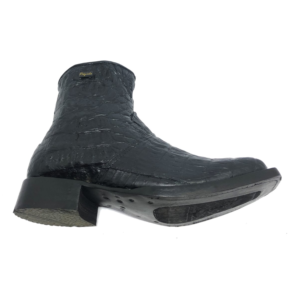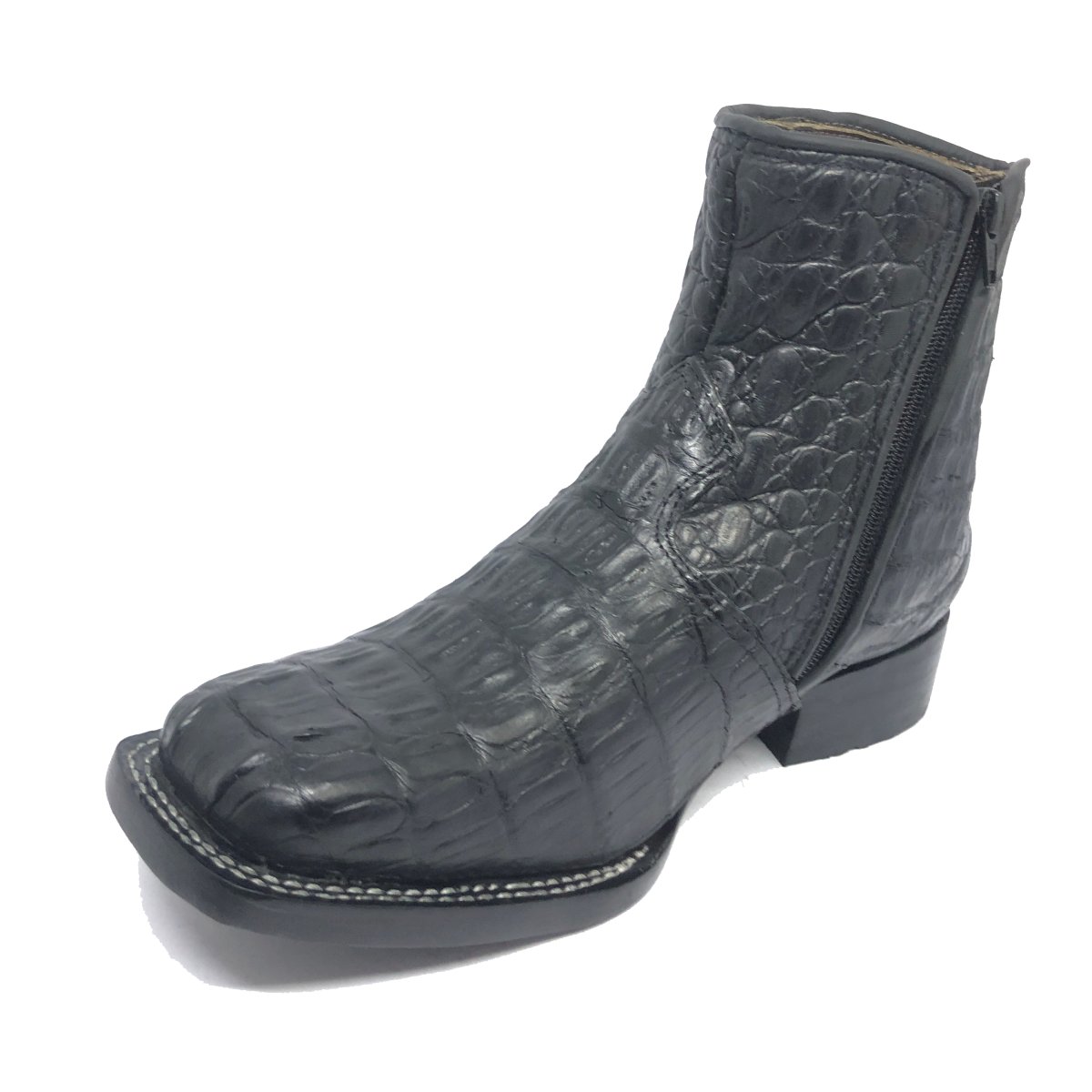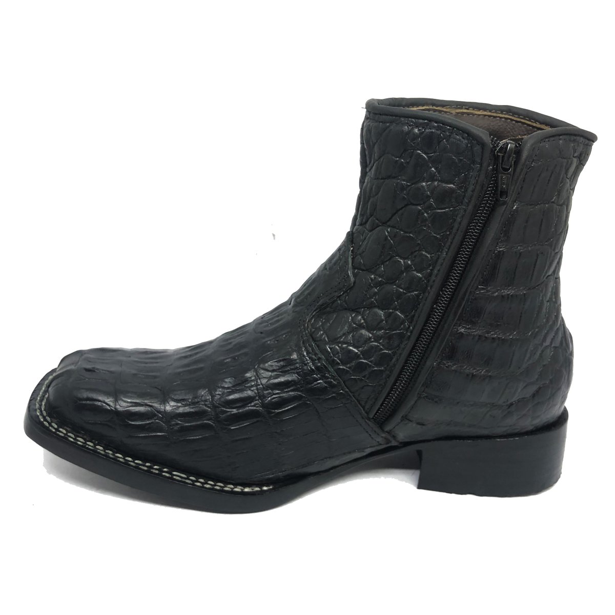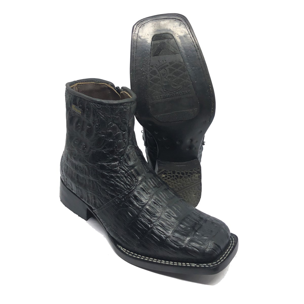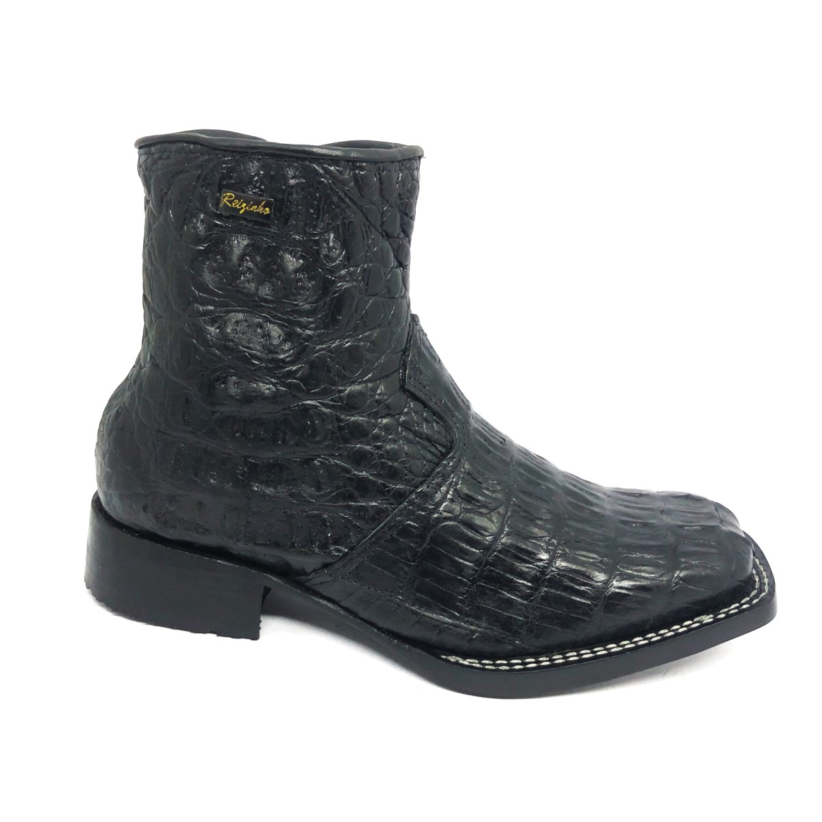 Bota Texana Reizinho Premium de Couro Legítimo de Jacaré Preto LIMITED EDITION - Cano Curto Zíper, Bico Quadrado - Solado de Couro Artesanal Injetado | Reizinho Botas