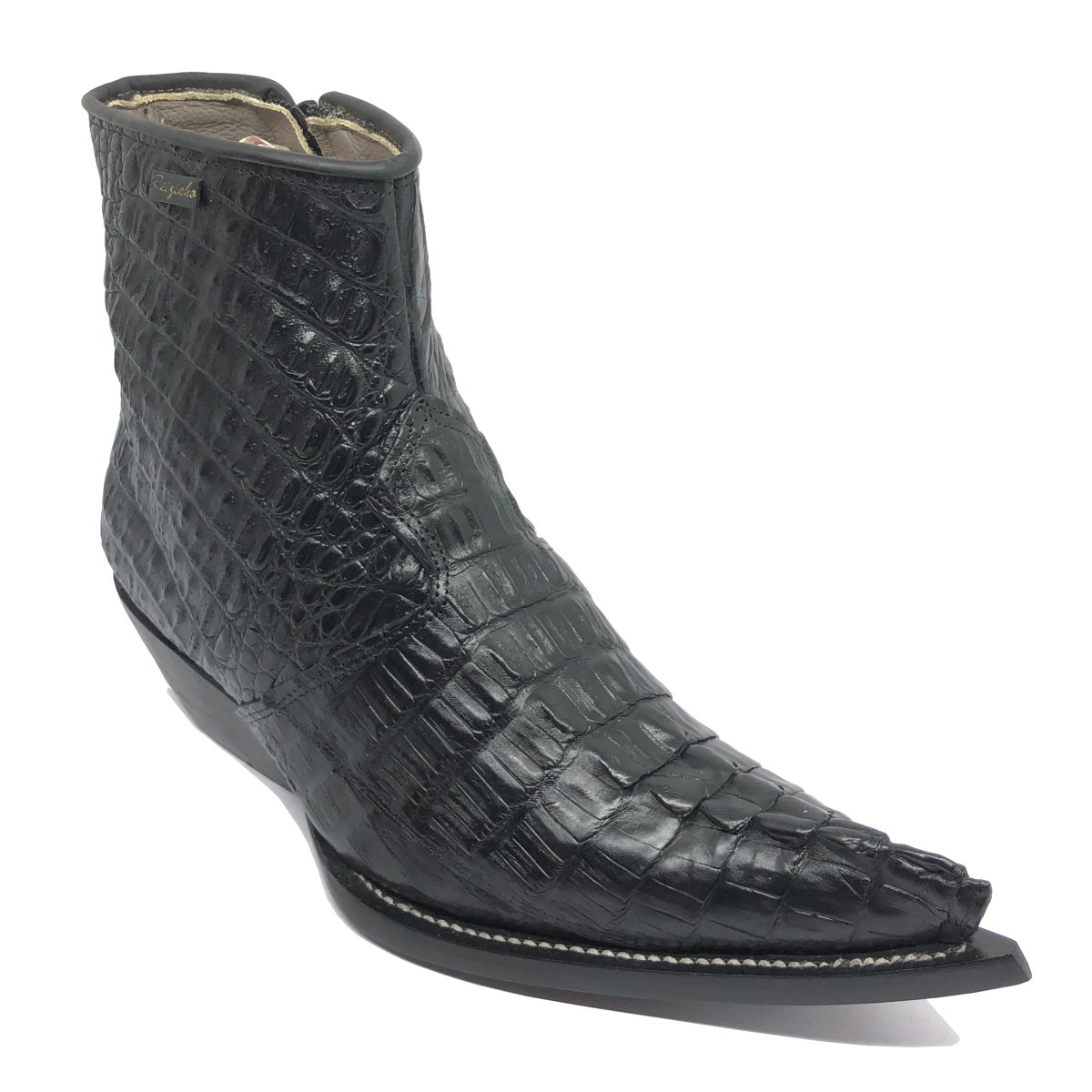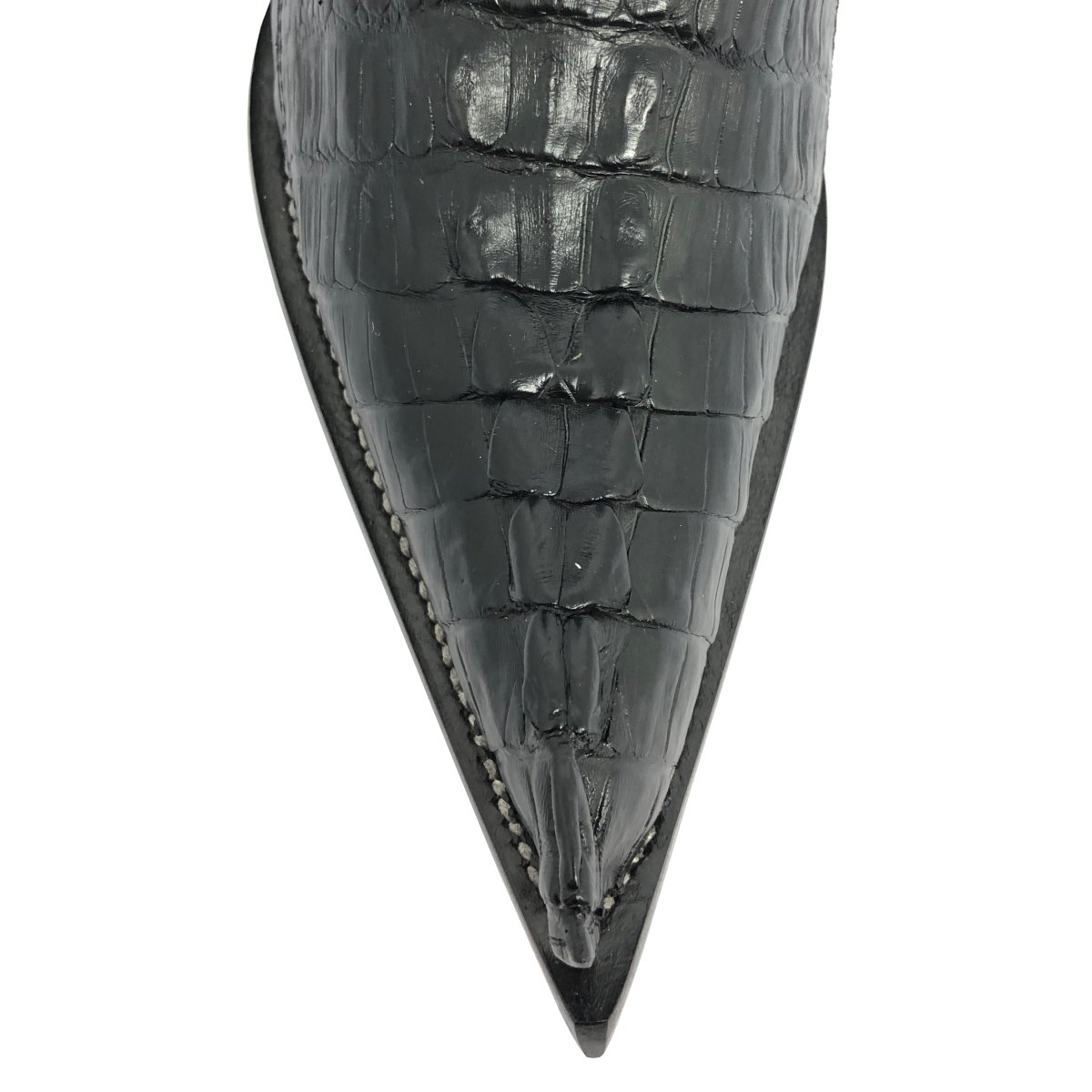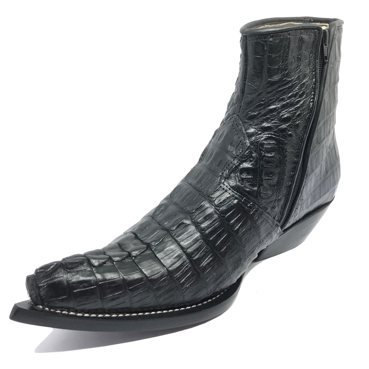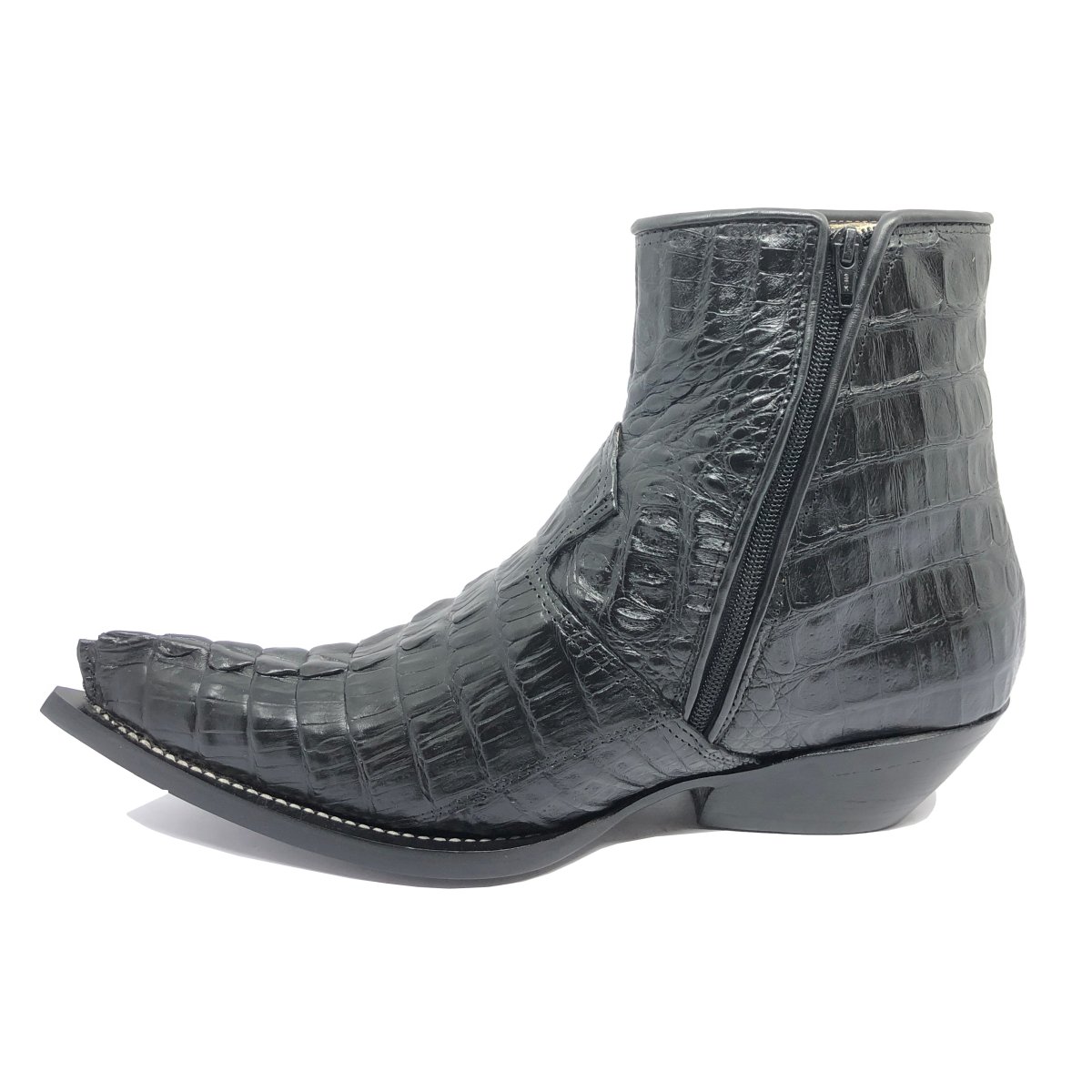 Bota Texana Reizinho Premium de Couro Legítimo de Jacaré Preto Rabo LIMITED EDITION - Cano Curto, Bico Fino - Solado de Couro Artesanal