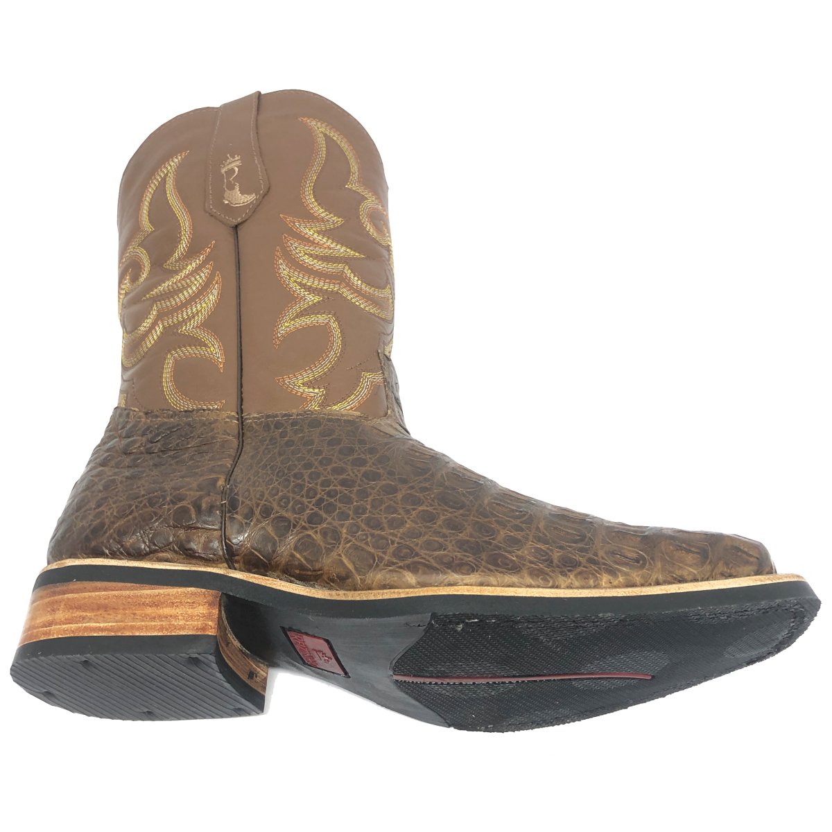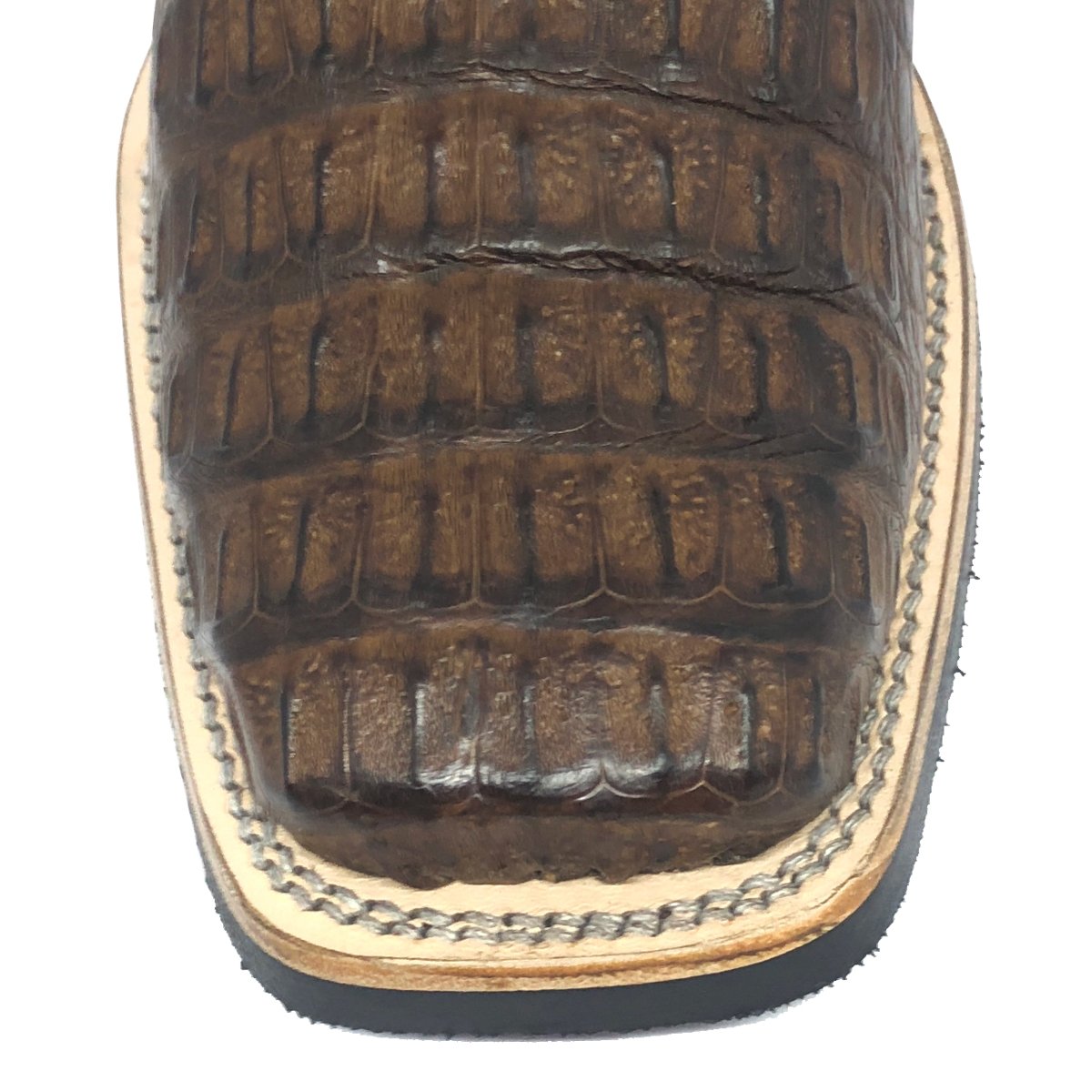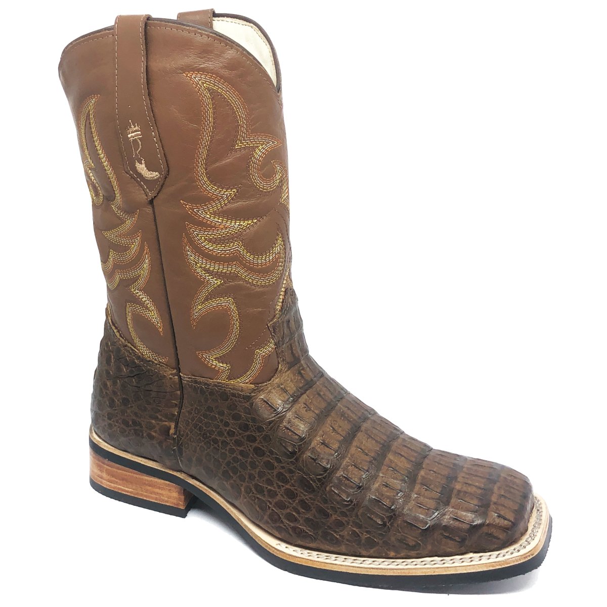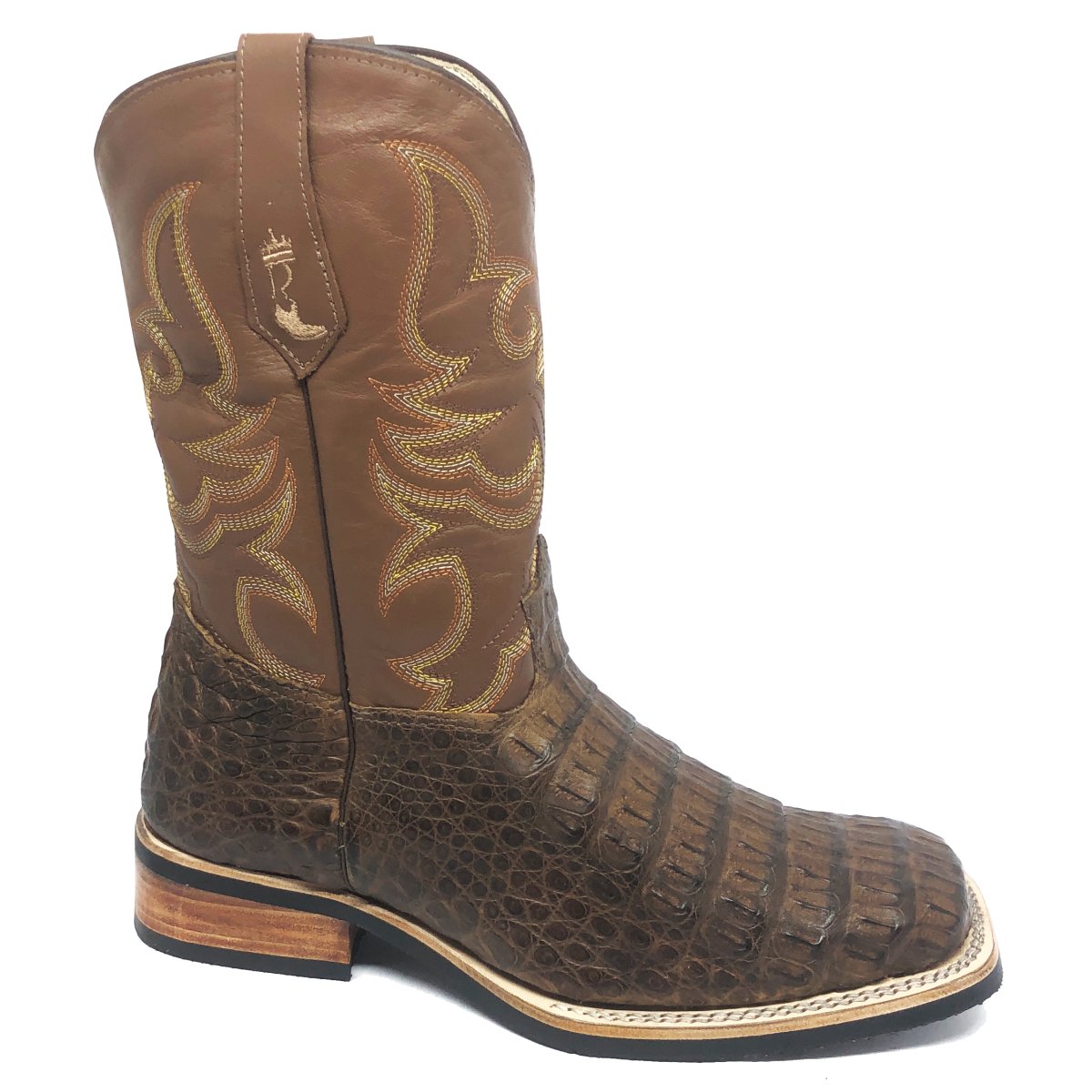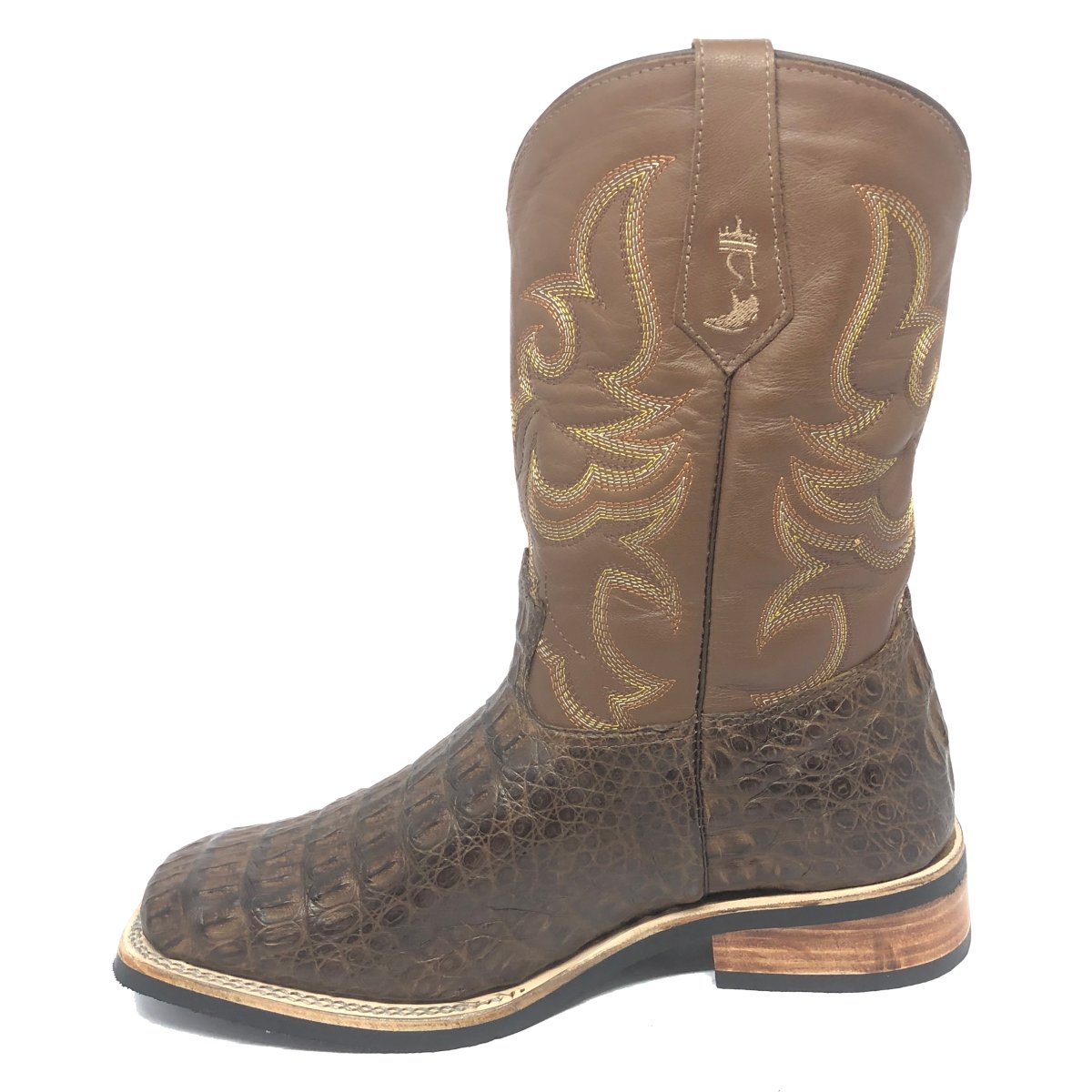 Bota Texana Reizinho Premium de Couro Legítimo de Jacaré Tabaco - Cano Médio, Bico Quadrado - Solado X-Flex Artesanal