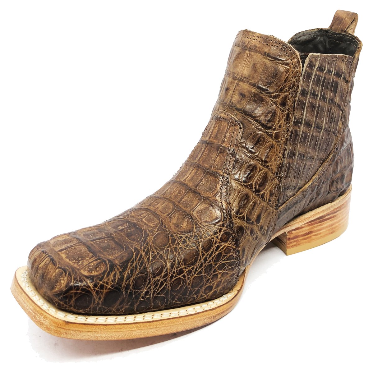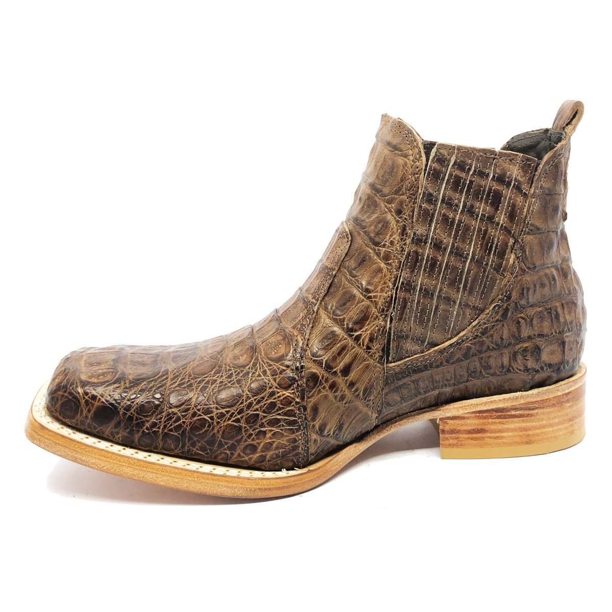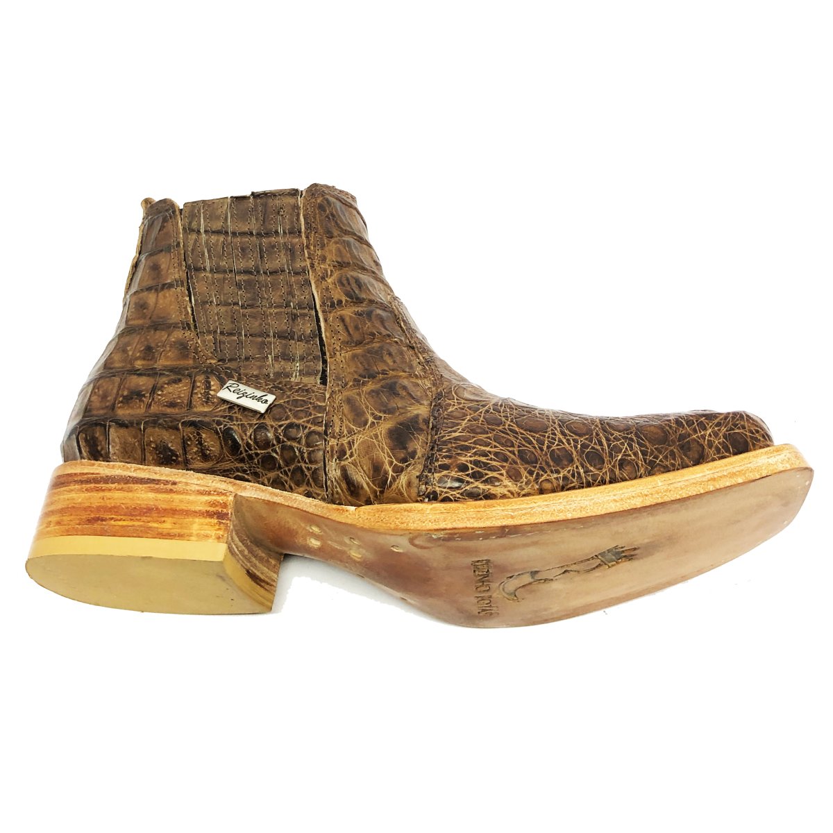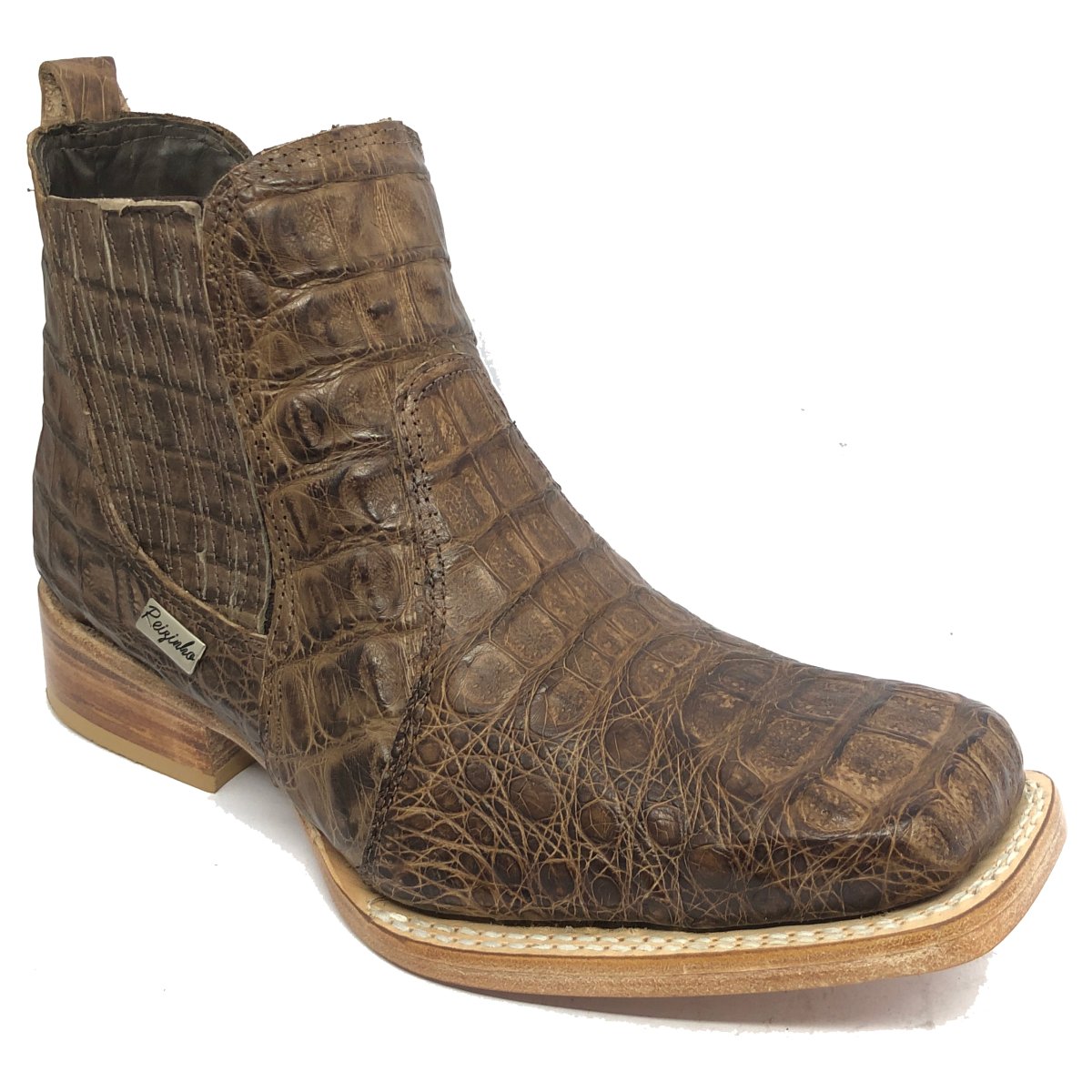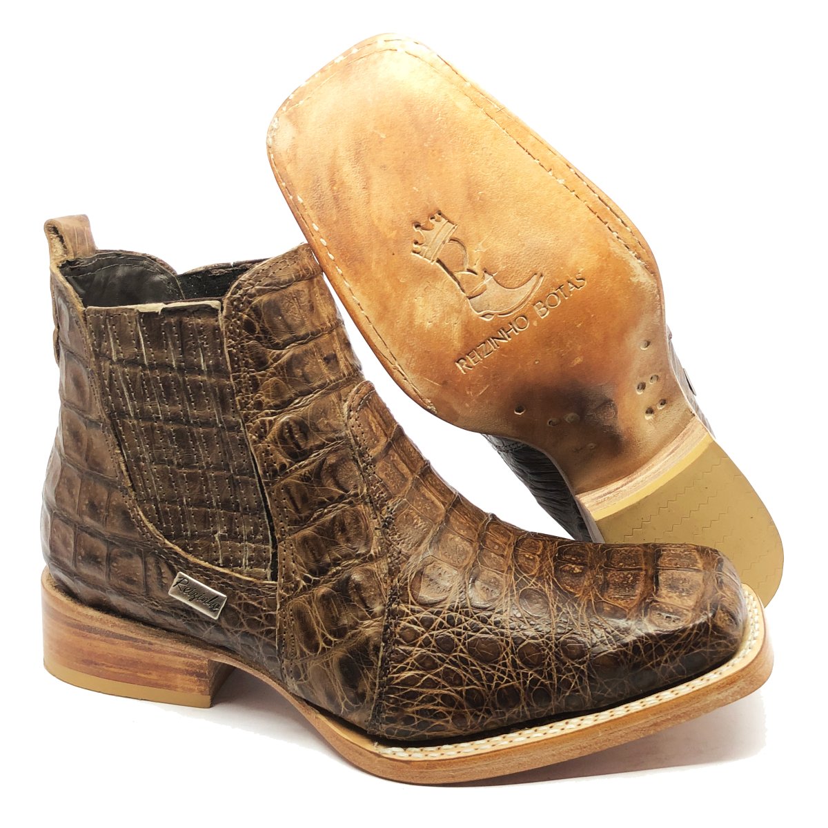 Bota Texana Reizinho Premium de Couro Legítimo de Jacaré Tabaco LIMITED EDITION - Cano Curto, Bico Quadrado - Solado de Couro Artesanal