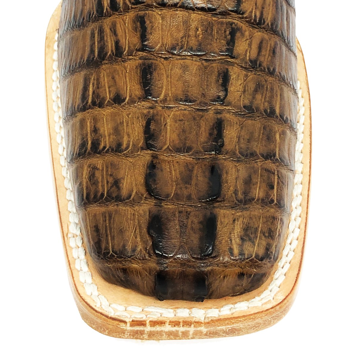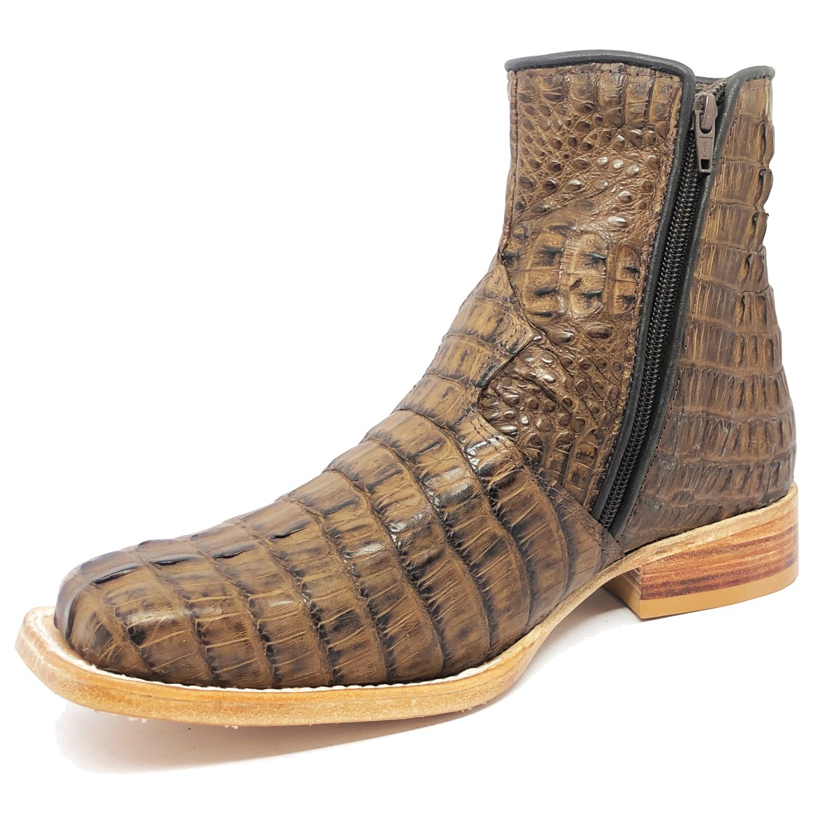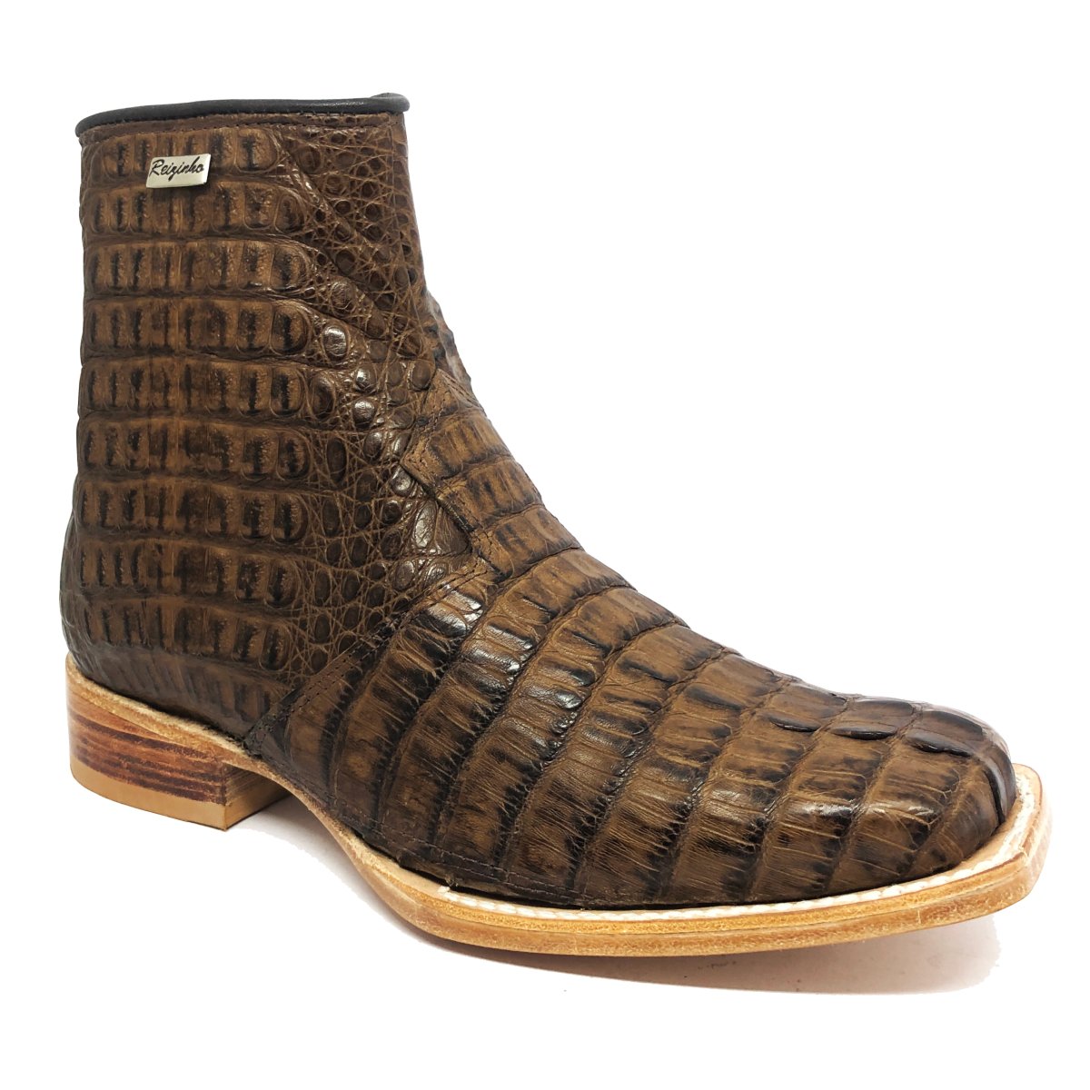 Bota Texana Reizinho Premium de Couro Legítimo de Jacaré Tabaco Rabo LIMITED EDITION - Cano Curto, Bico Quadrado - Solado de Couro Artesanal