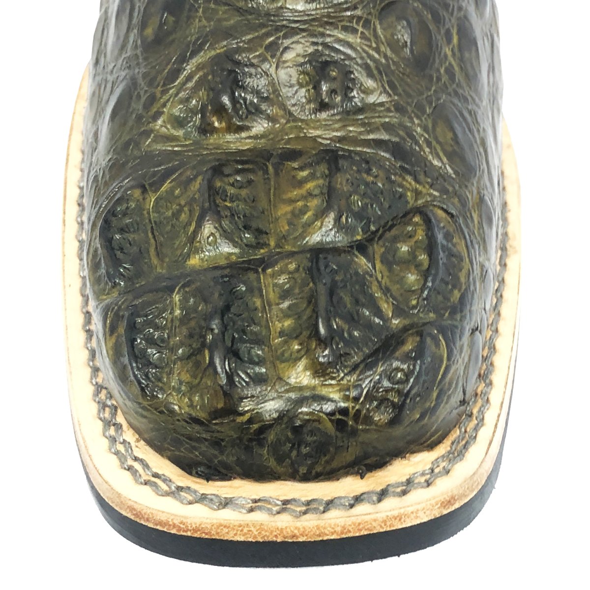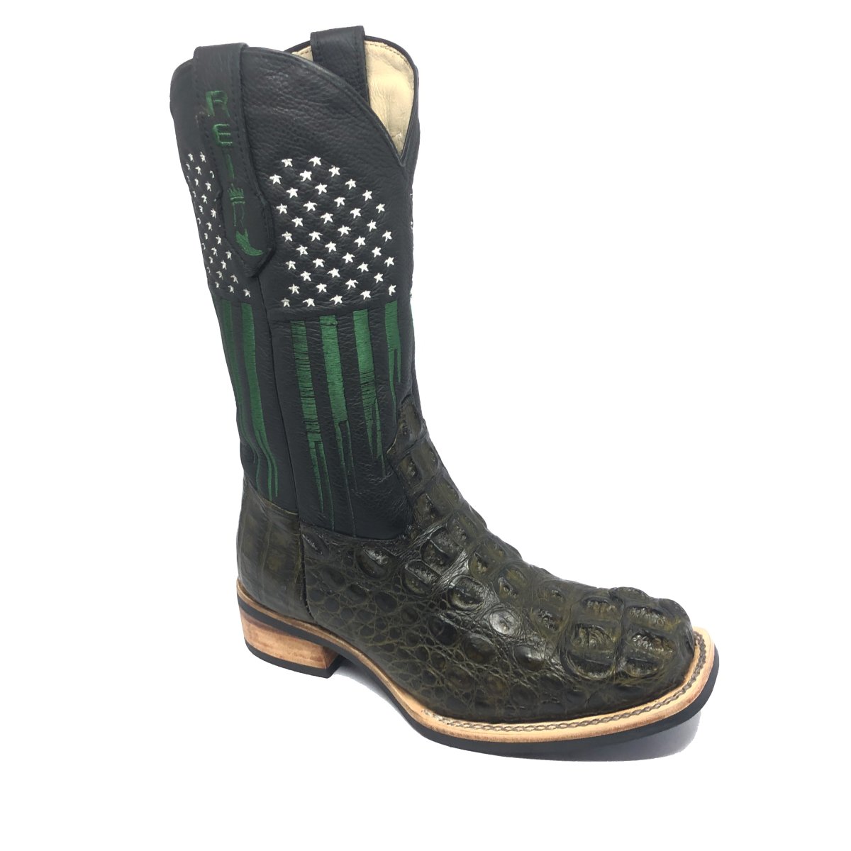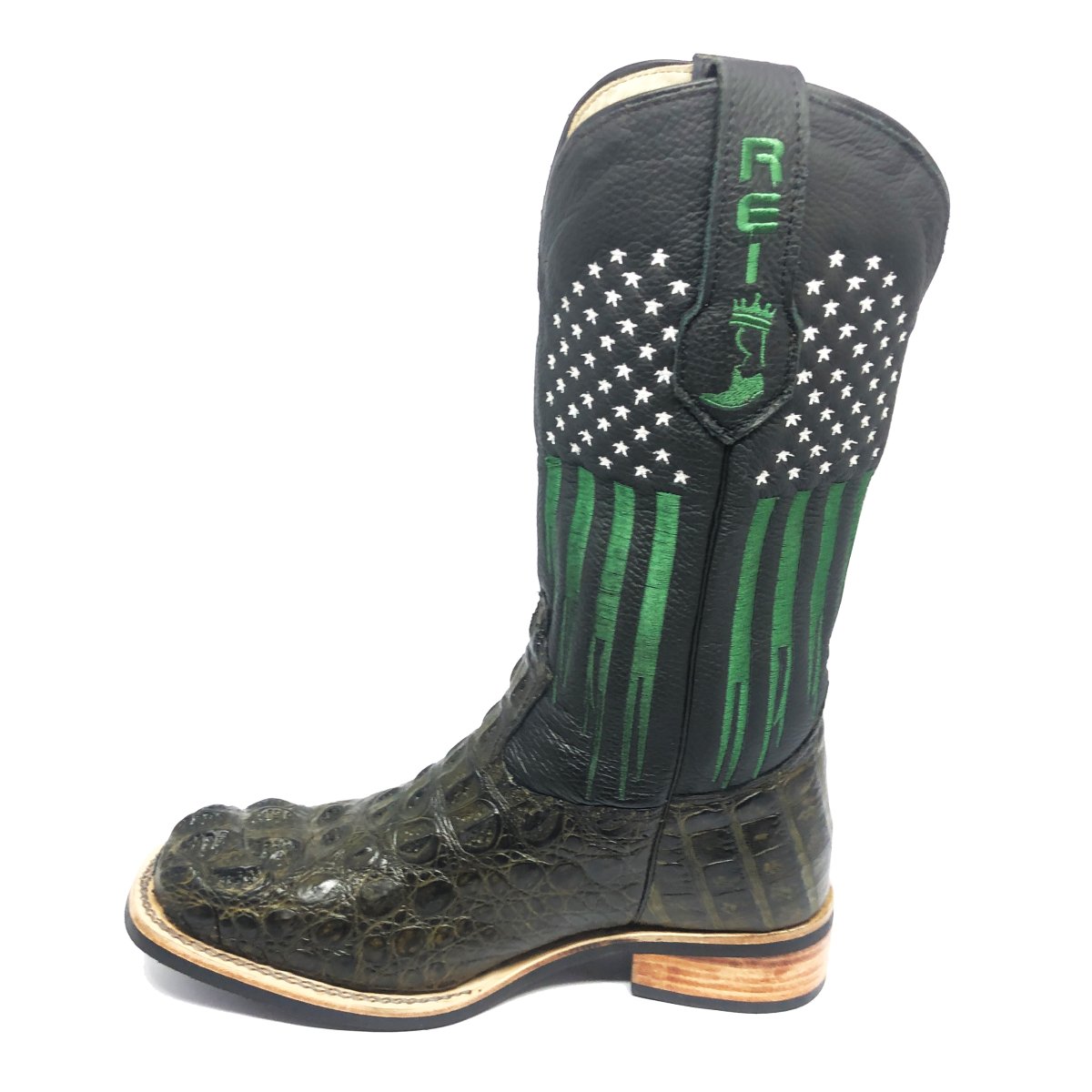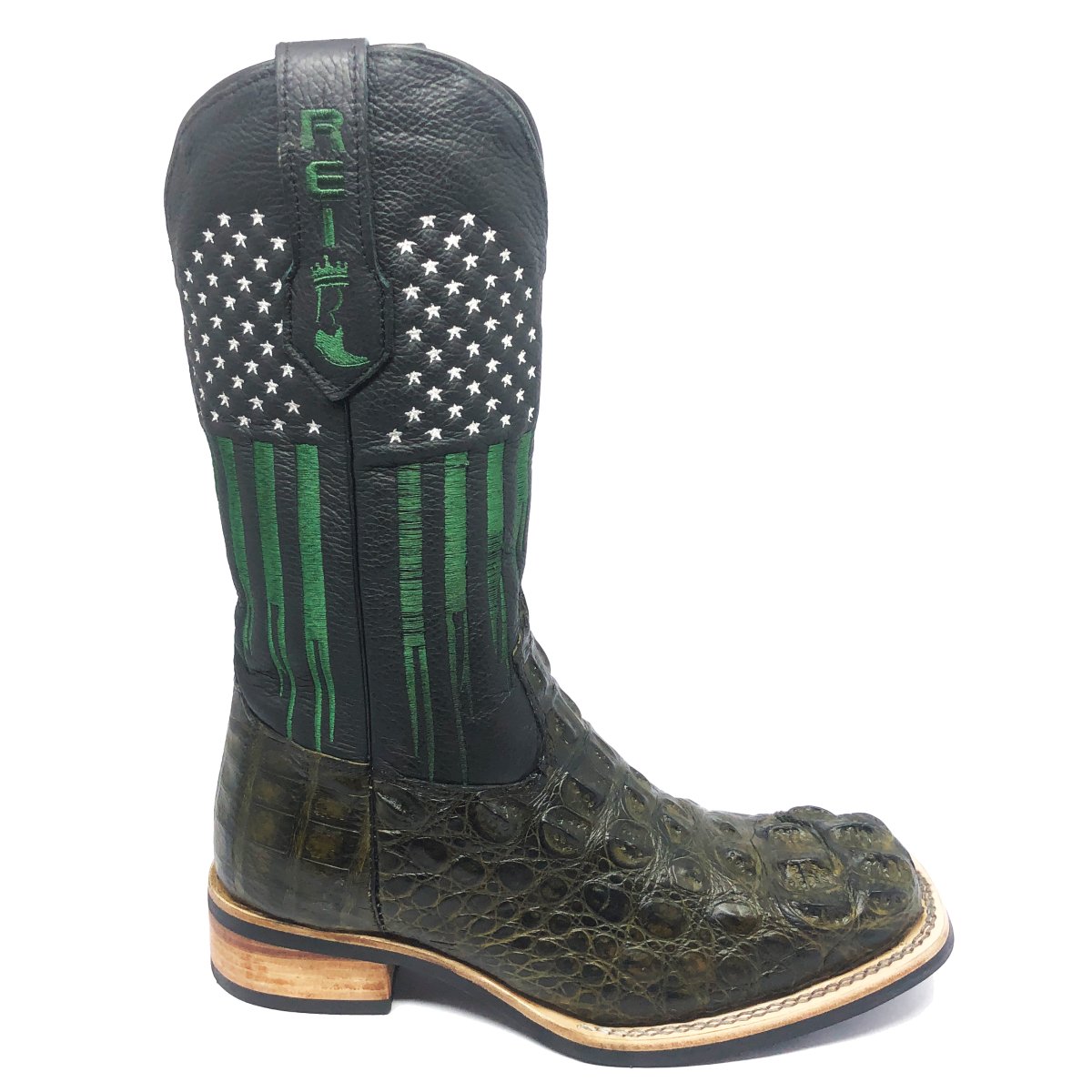 Bota Texana Reizinho Premium de Couro Legítimo de Jacaré Verde Musgo LIMITED EDITION - Cano Alto, Bico Quadrado - Solado X-Flex Artesanal