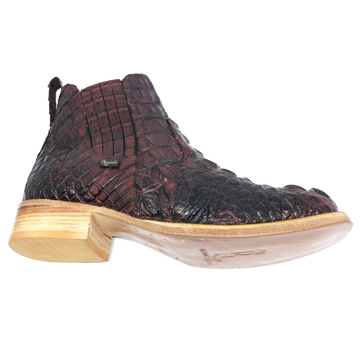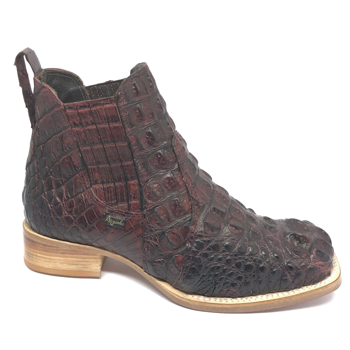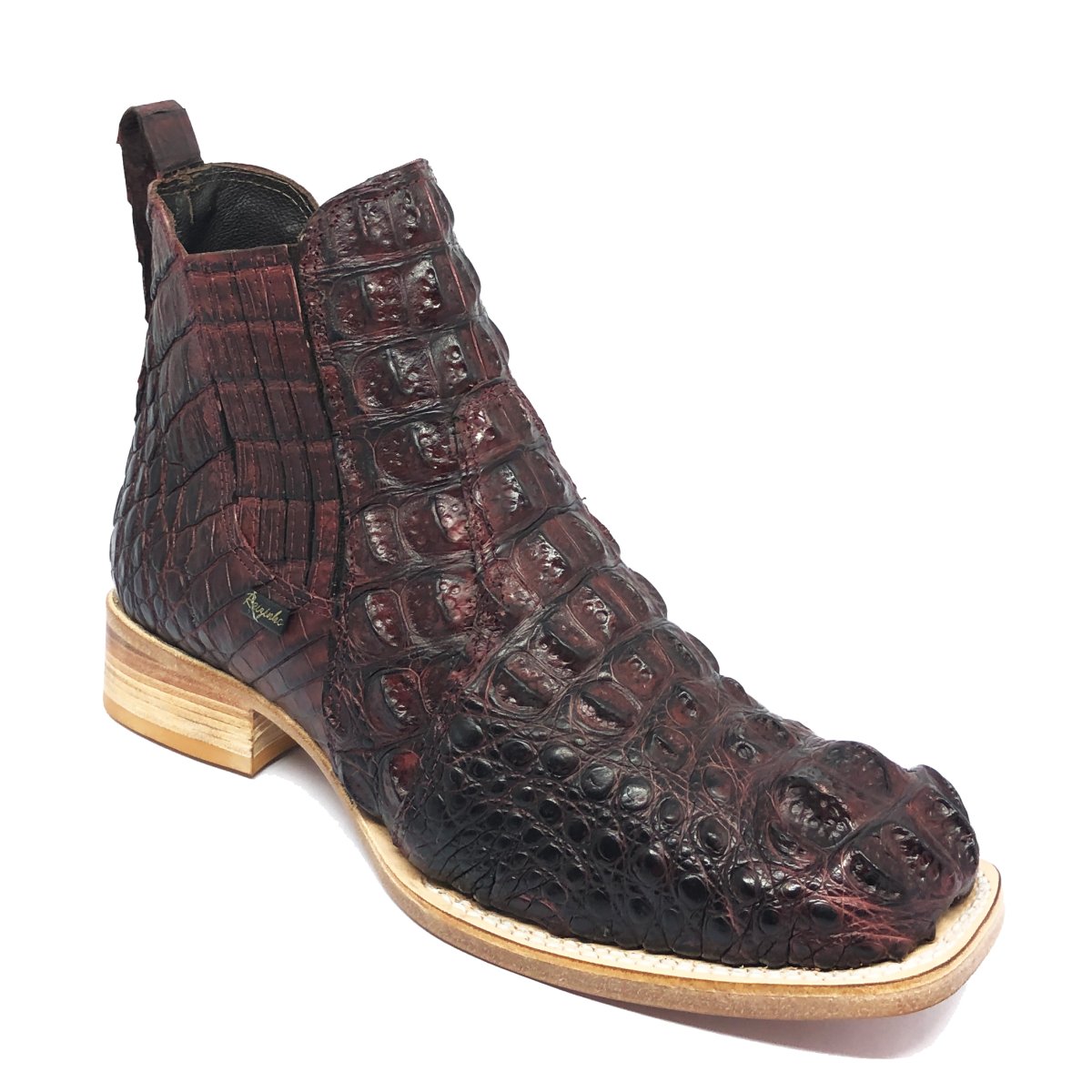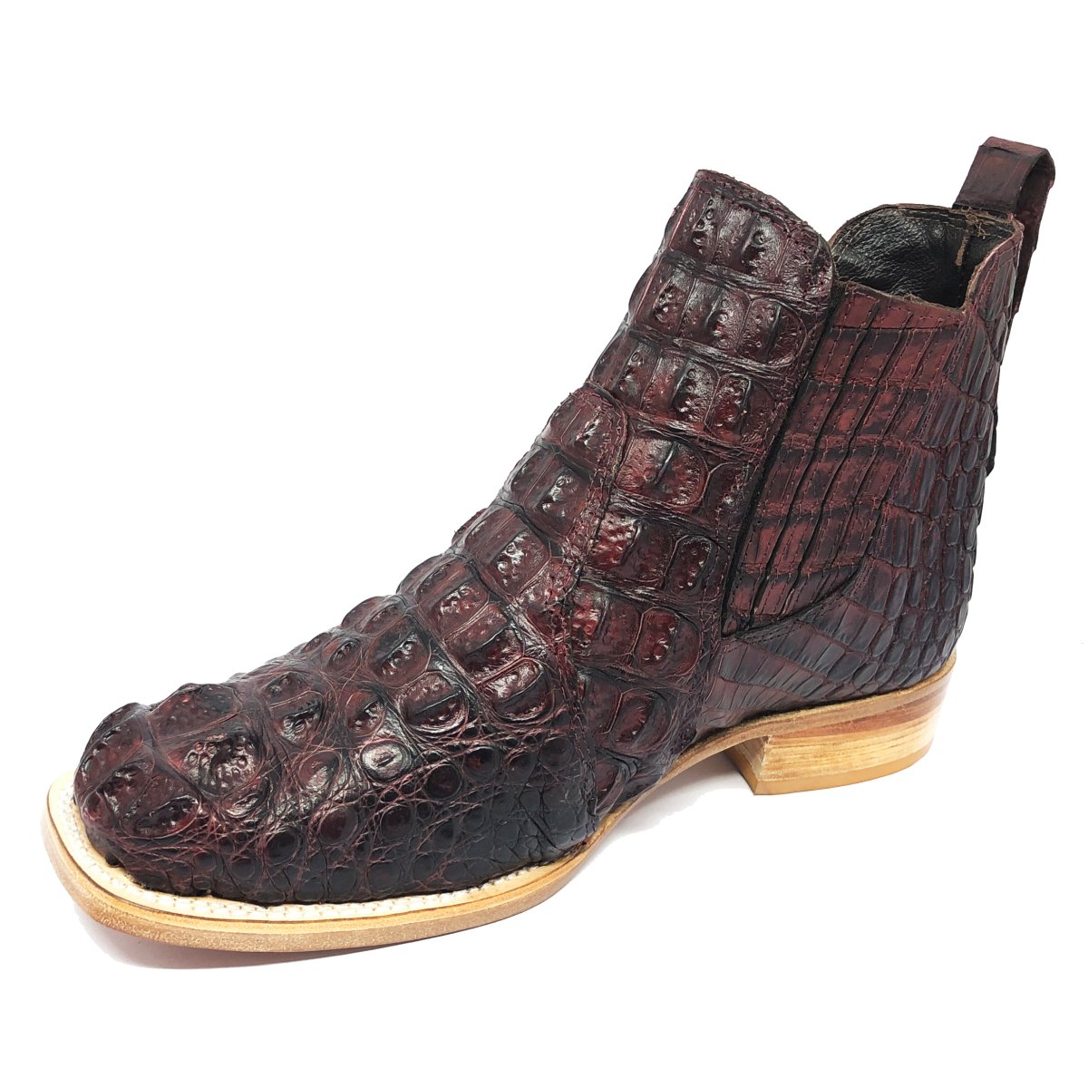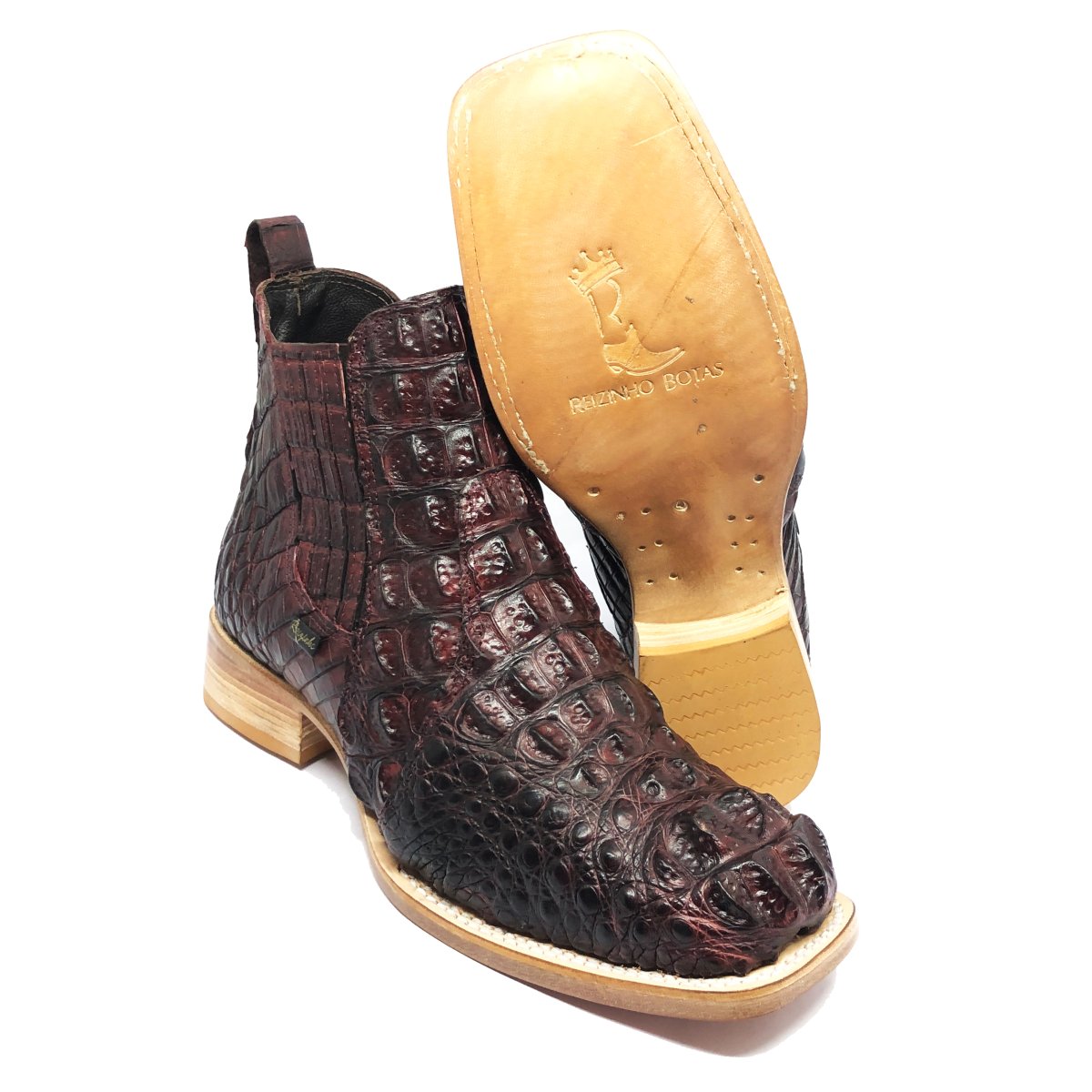 Bota Texana Reizinho Premium de Couro Legítimo de Jacaré Vinho LIMITED EDITION - Cano Curto, Bico Fino - Solado de Couro Artesanal