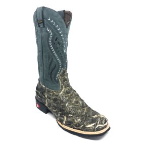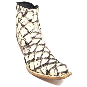 Bota de Couro de Pirarucu Dry Leaf - Cano Curto, Bico Quadrado, SOLADO X-FLEX ARTESANAL
