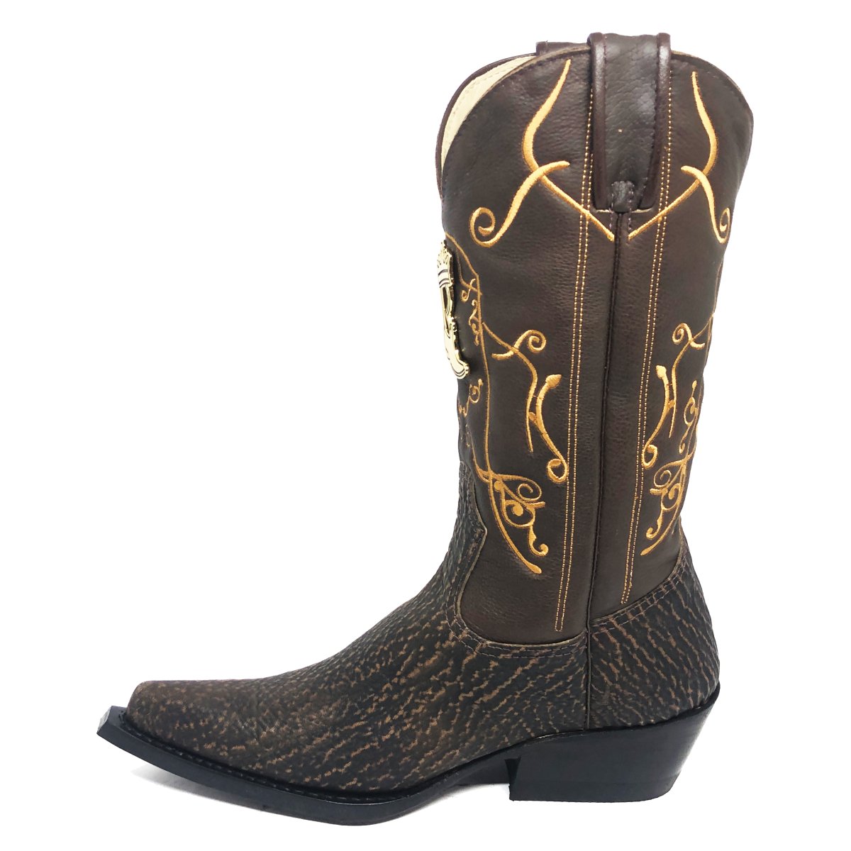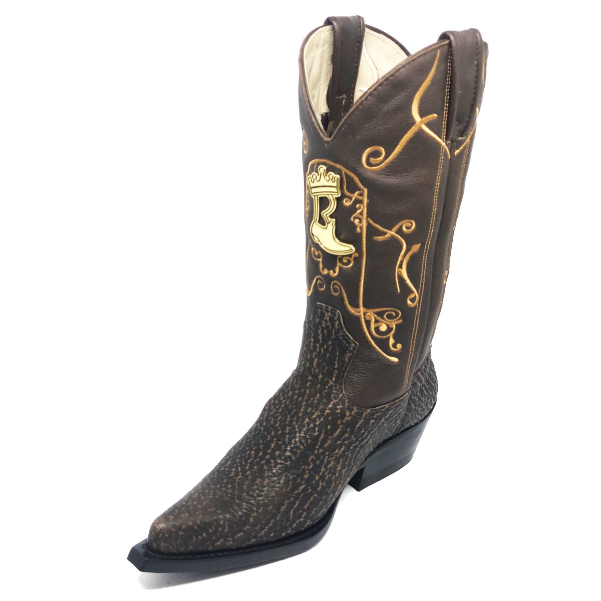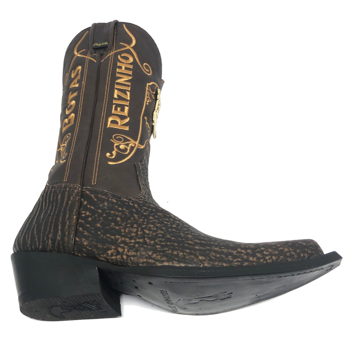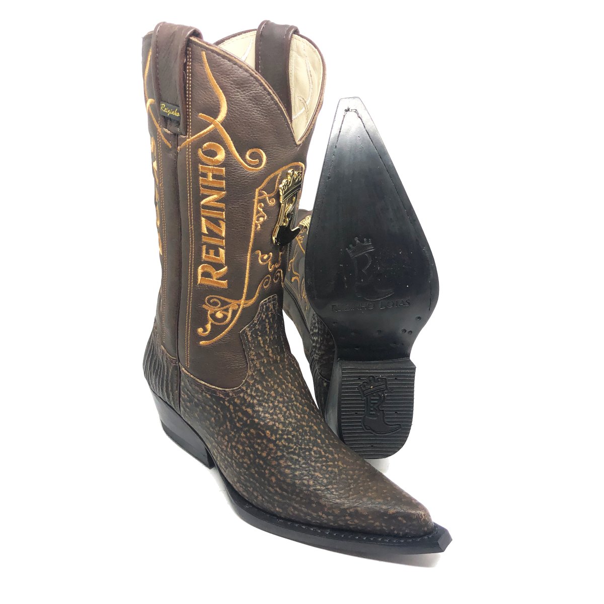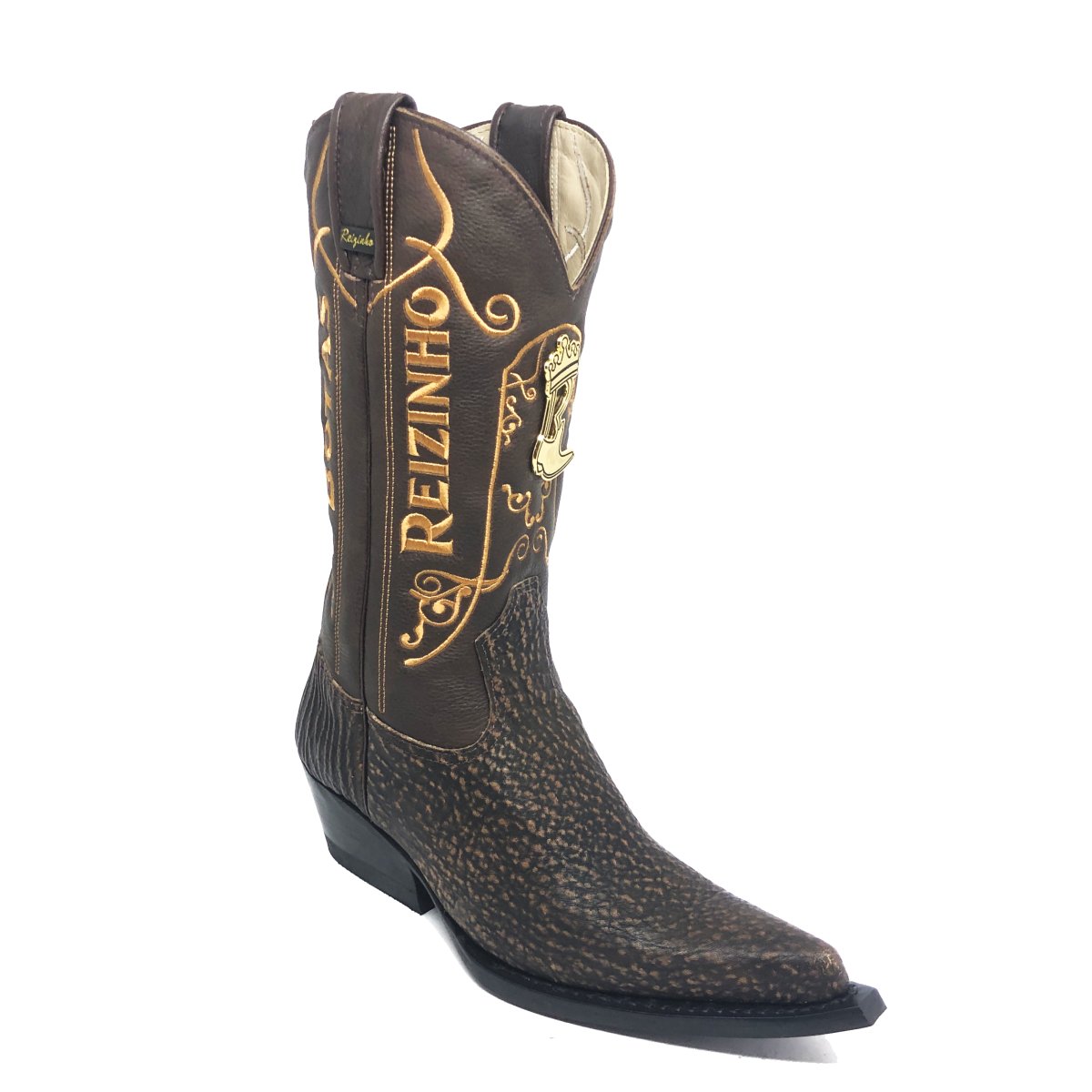 Bota Texana Reizinho Premium de Couro Legítimo de Tubarão Brown Matte LIMITED EDITION - Cano Alto, Bico Fino - Solado de Couro Artesanal | Reizinho Botas