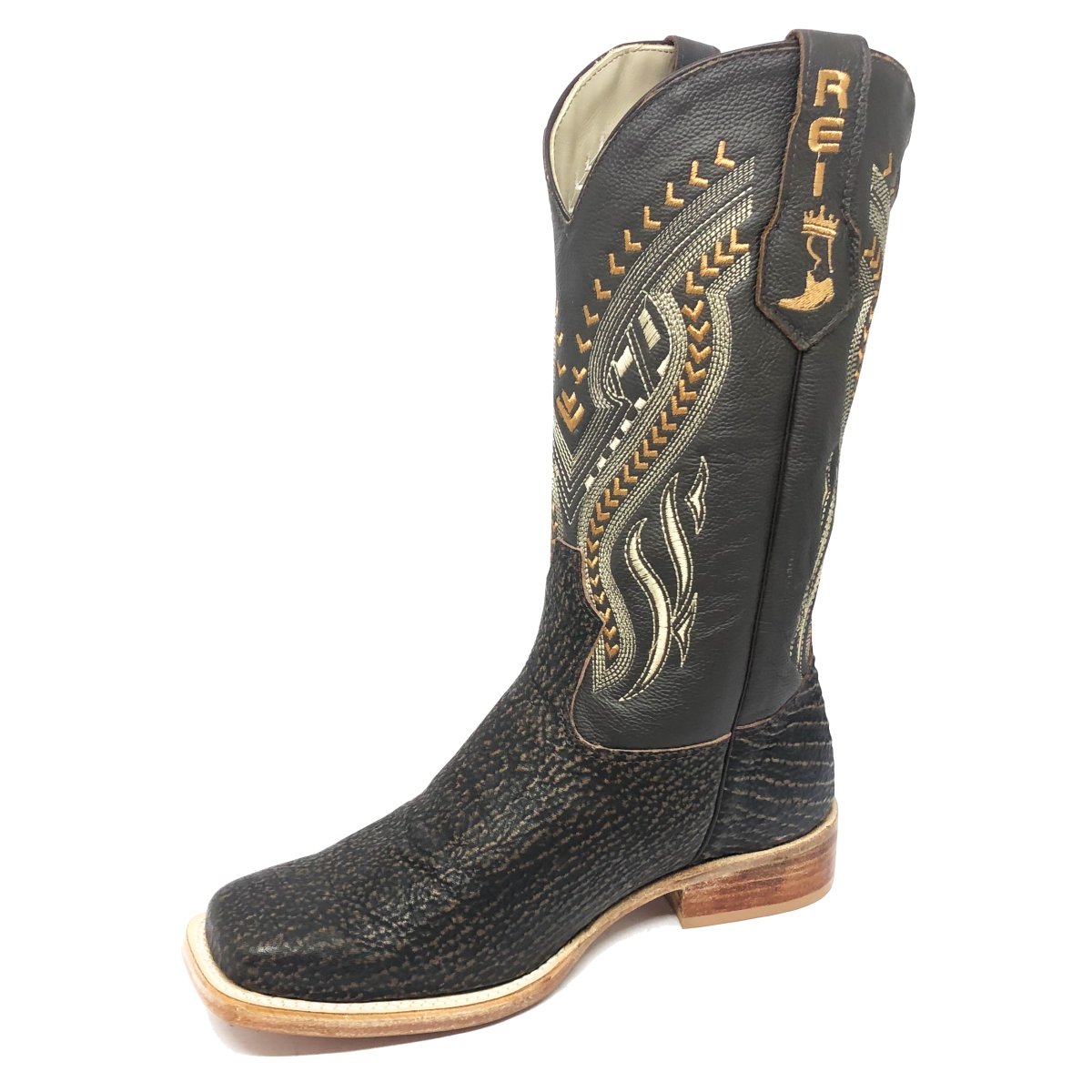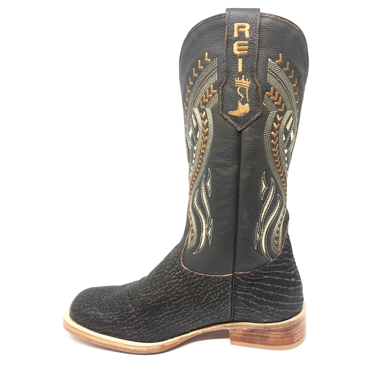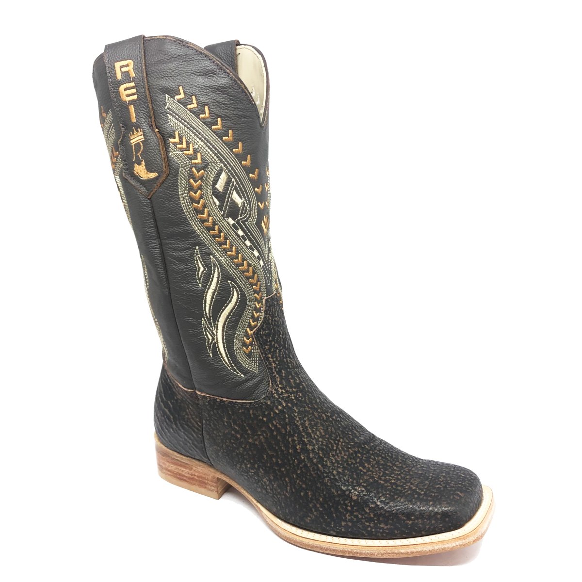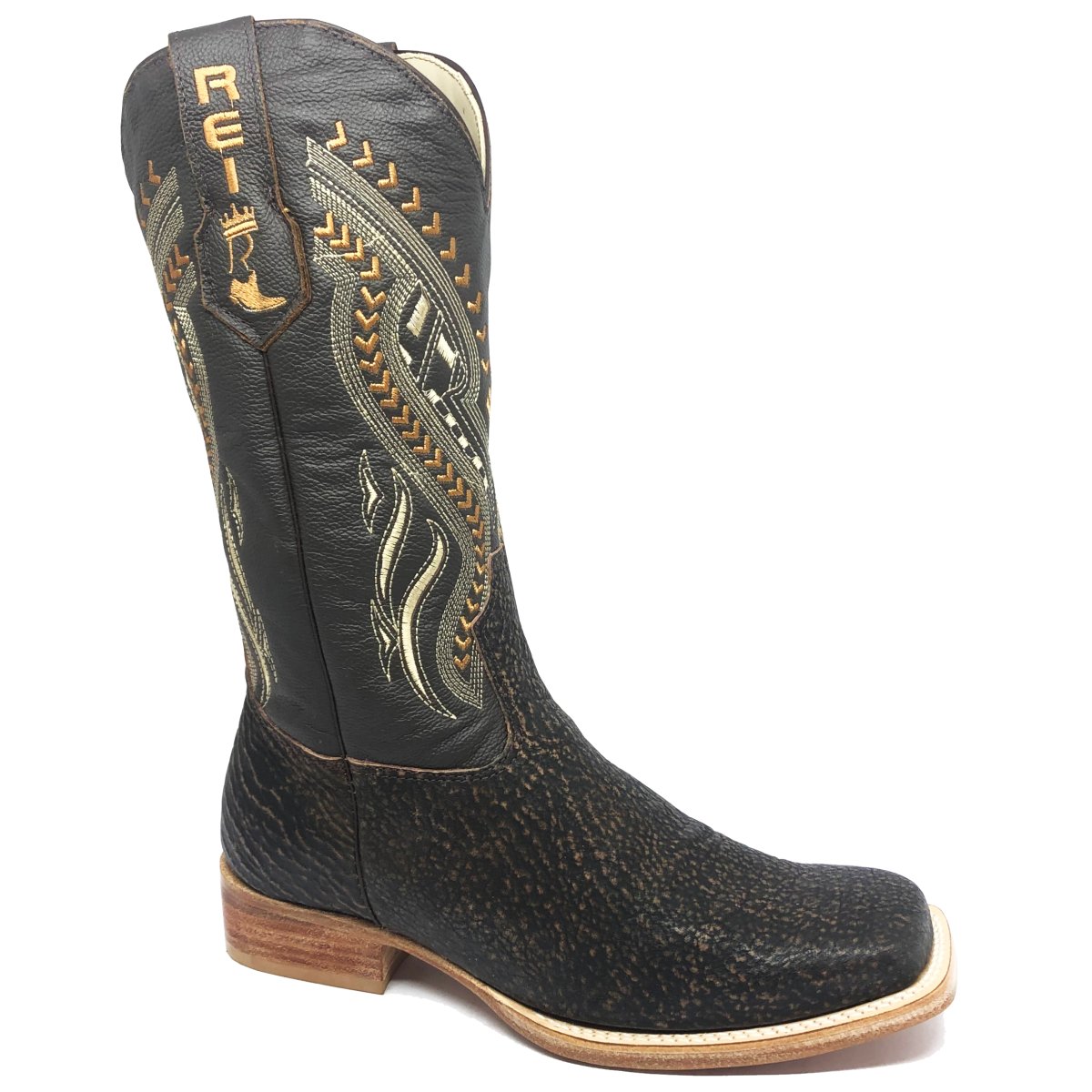 Bota Texana Reizinho Premium de Couro Legítimo de Tubarão Brown Matte LIMITED EDITION - Cano Alto, Bico Quadrado - Solado de Couro Artesanal | Reizinho Botas
